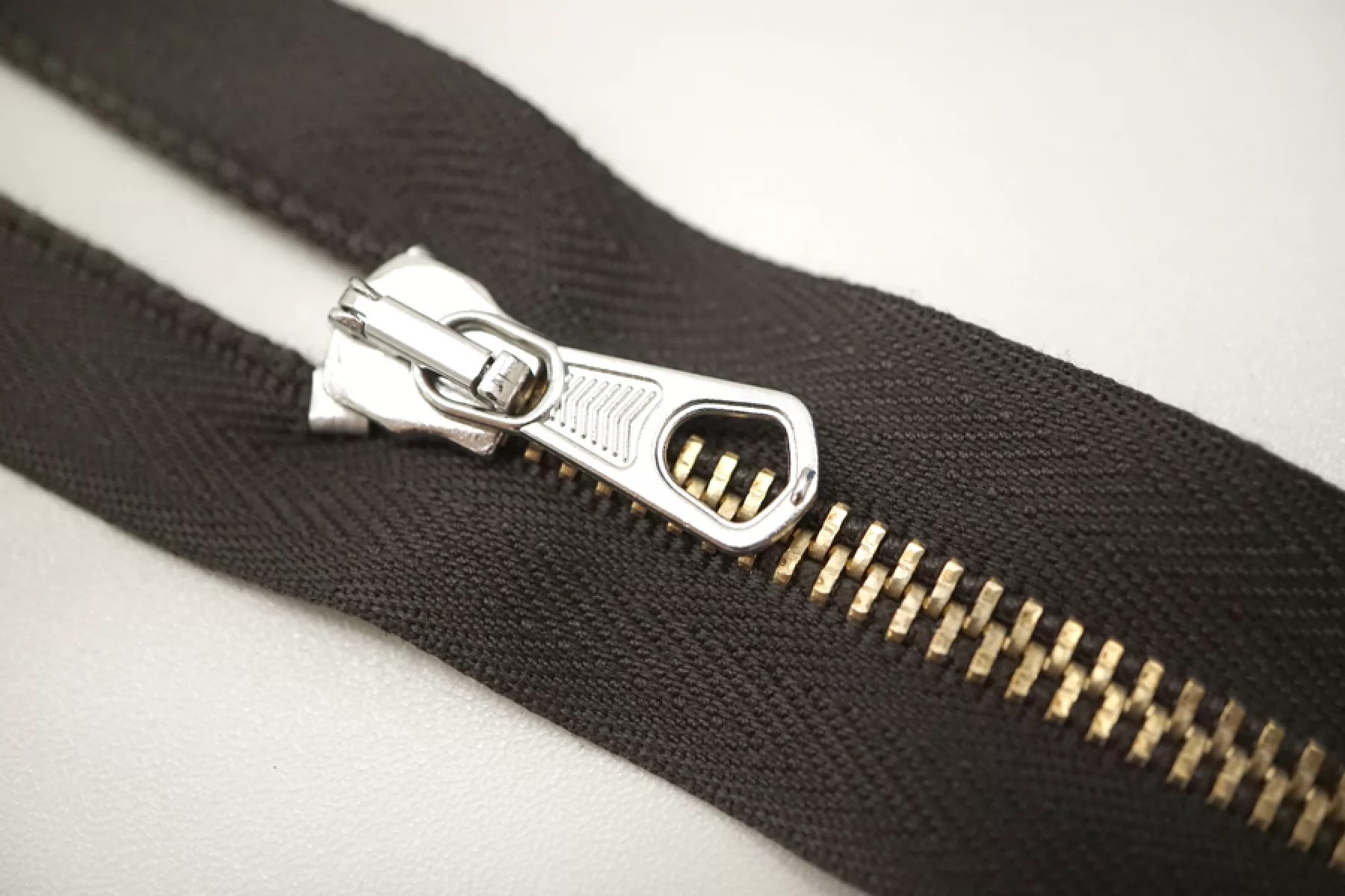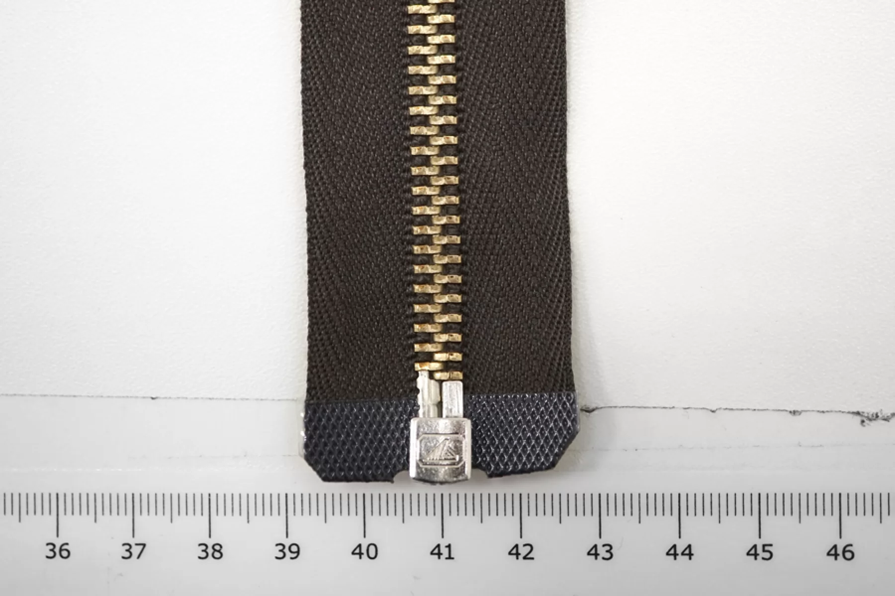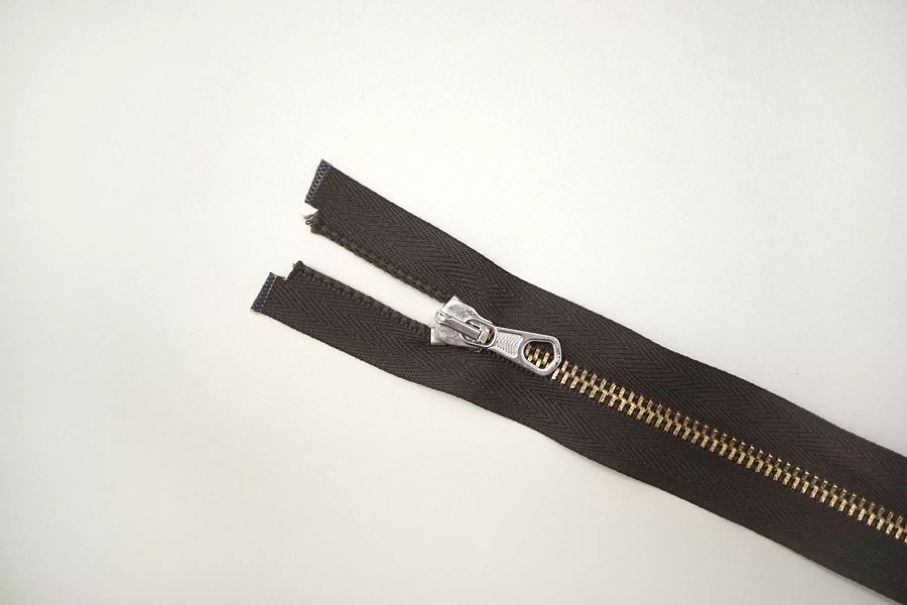 Молния металлическая от "Lampo" разъёмная, темно-коричневая, цвет зубцов золотистый, слайдер и пуллер серебристый. Длина 51 см.