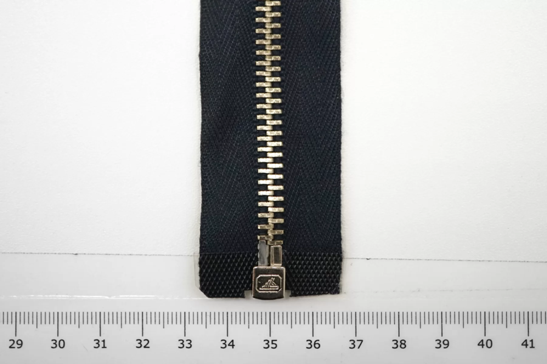 Молния металлическая от "Lampo" разъёмная, темно-синяя, цвет зубцов светло-золотистый. Длина 42 см.