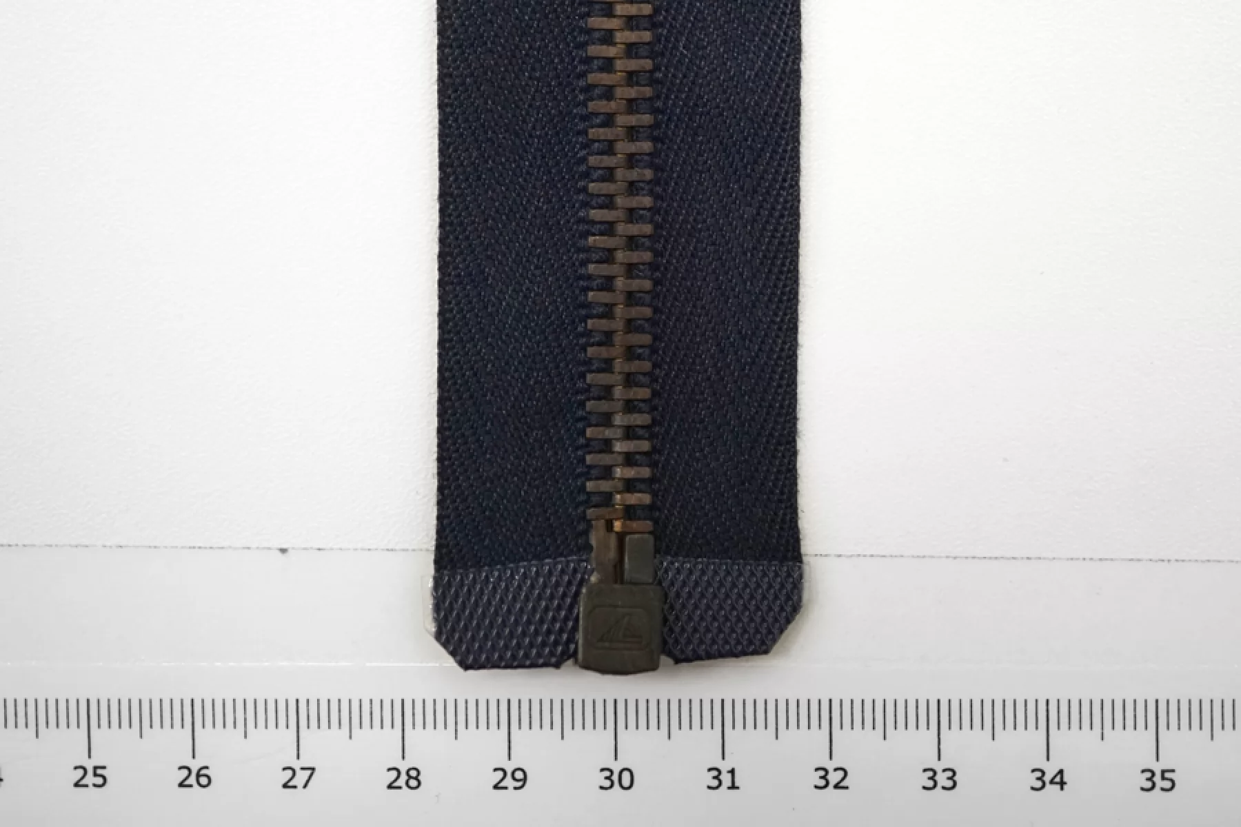 Молния металлическая от "Lampo" разъёмная, темно-синяя, цвет зубцов бронзовый. Длина 46 см.