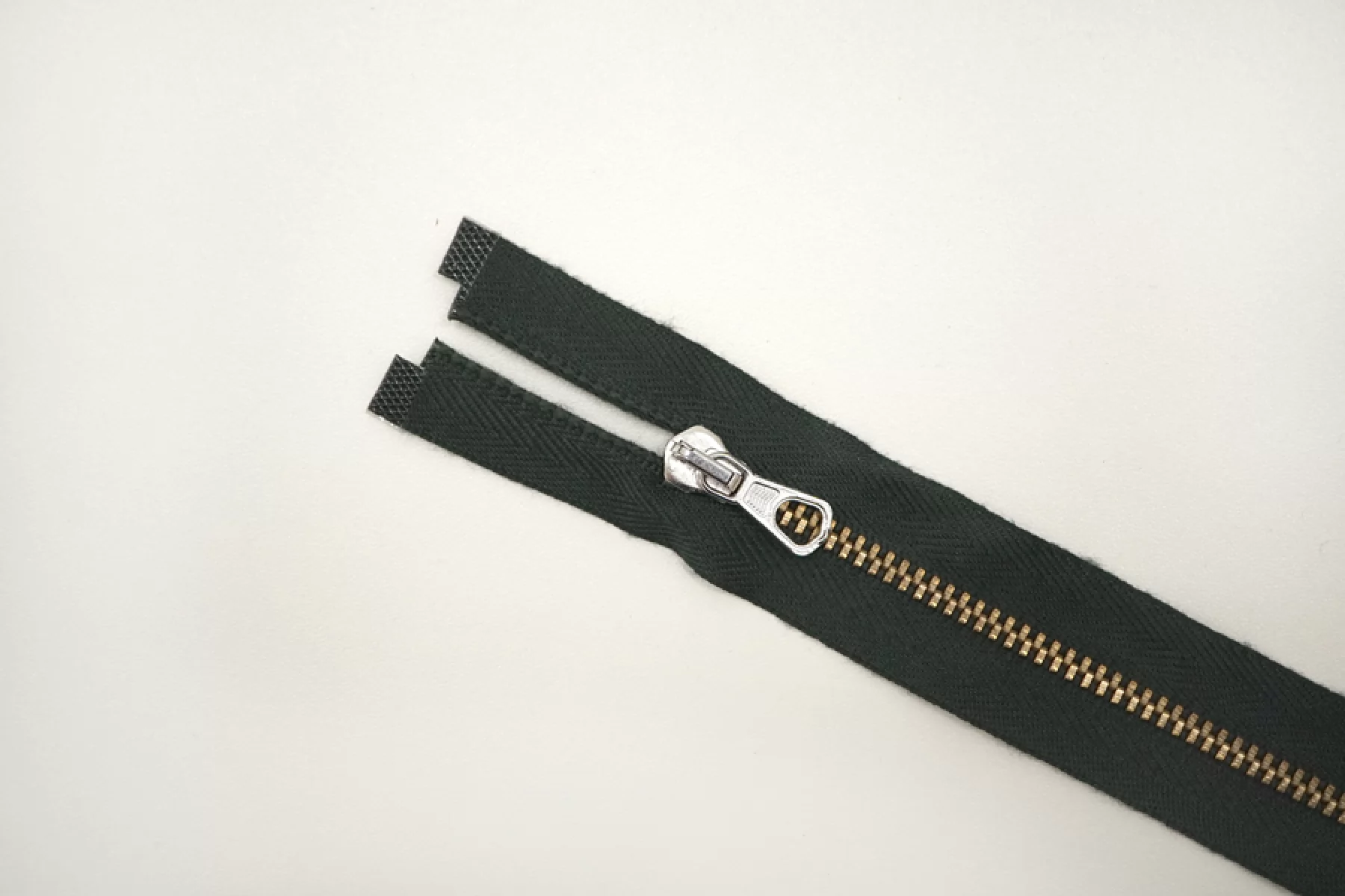 Молния металлическая от "Lampo" разъёмная, темно-зеленая, цвет зубцов золотистый, слайдер и пуллер серебристый. Длина 50 см.