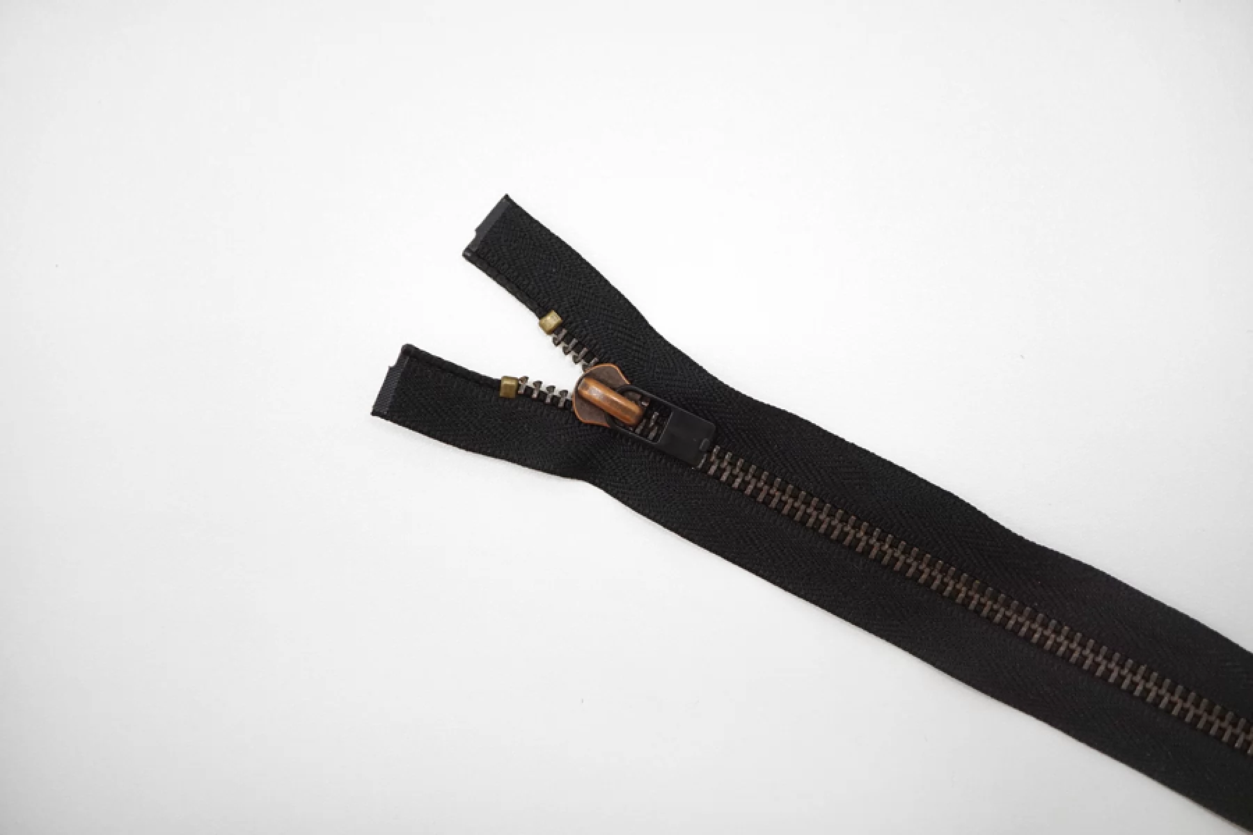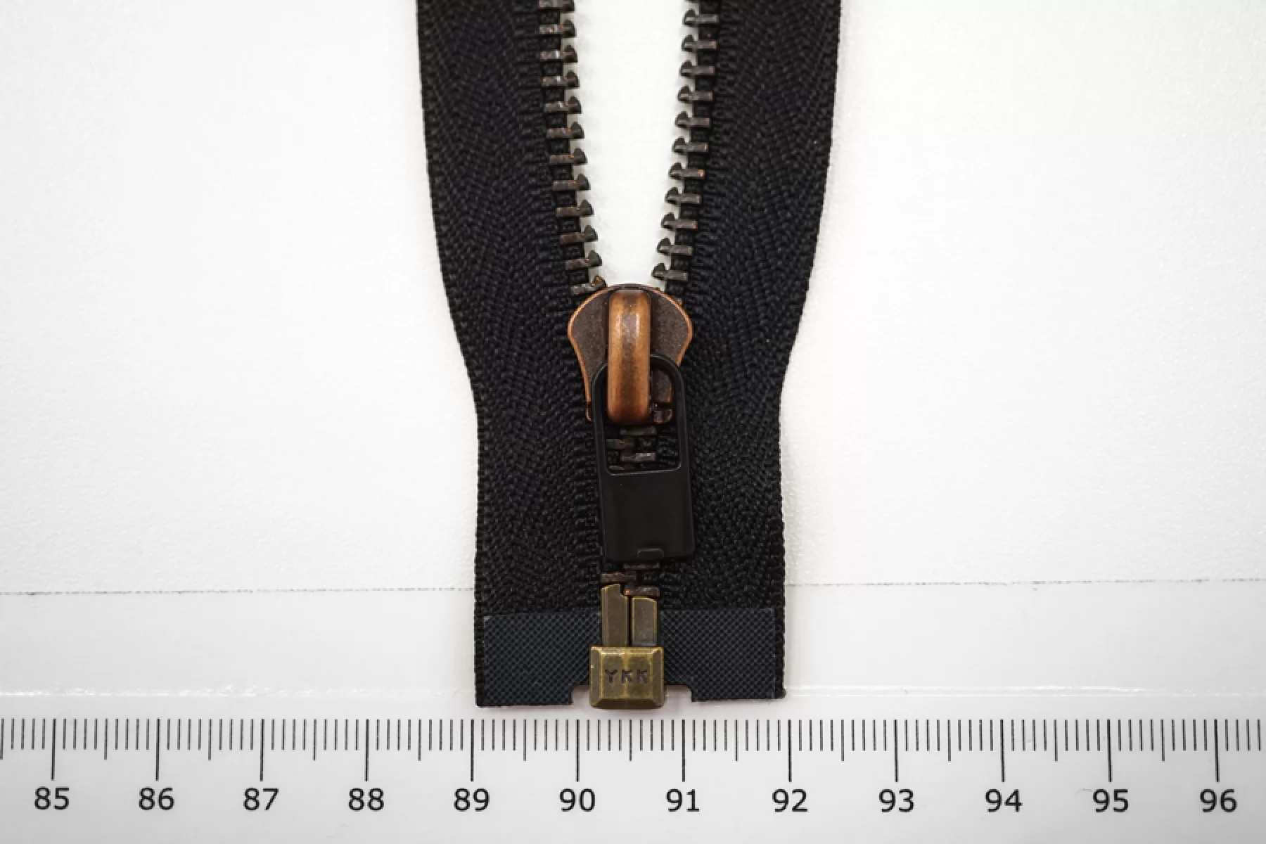 Молния металлическая от "YKK" разъёмная, черного цвета, цвет зубцов и слайдера бронзовый, пуллер пластиковый черного цвета. Длина 60 см.