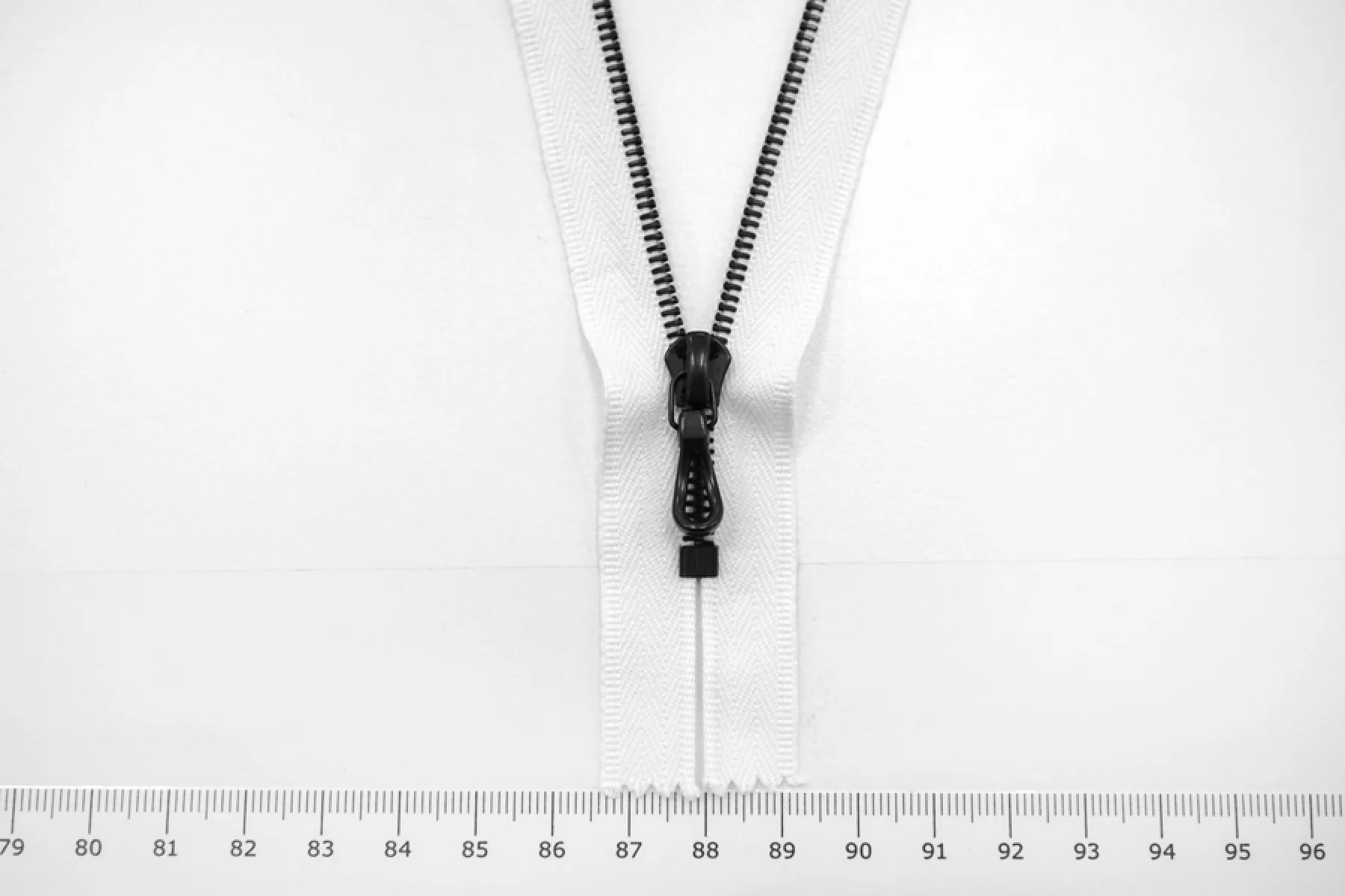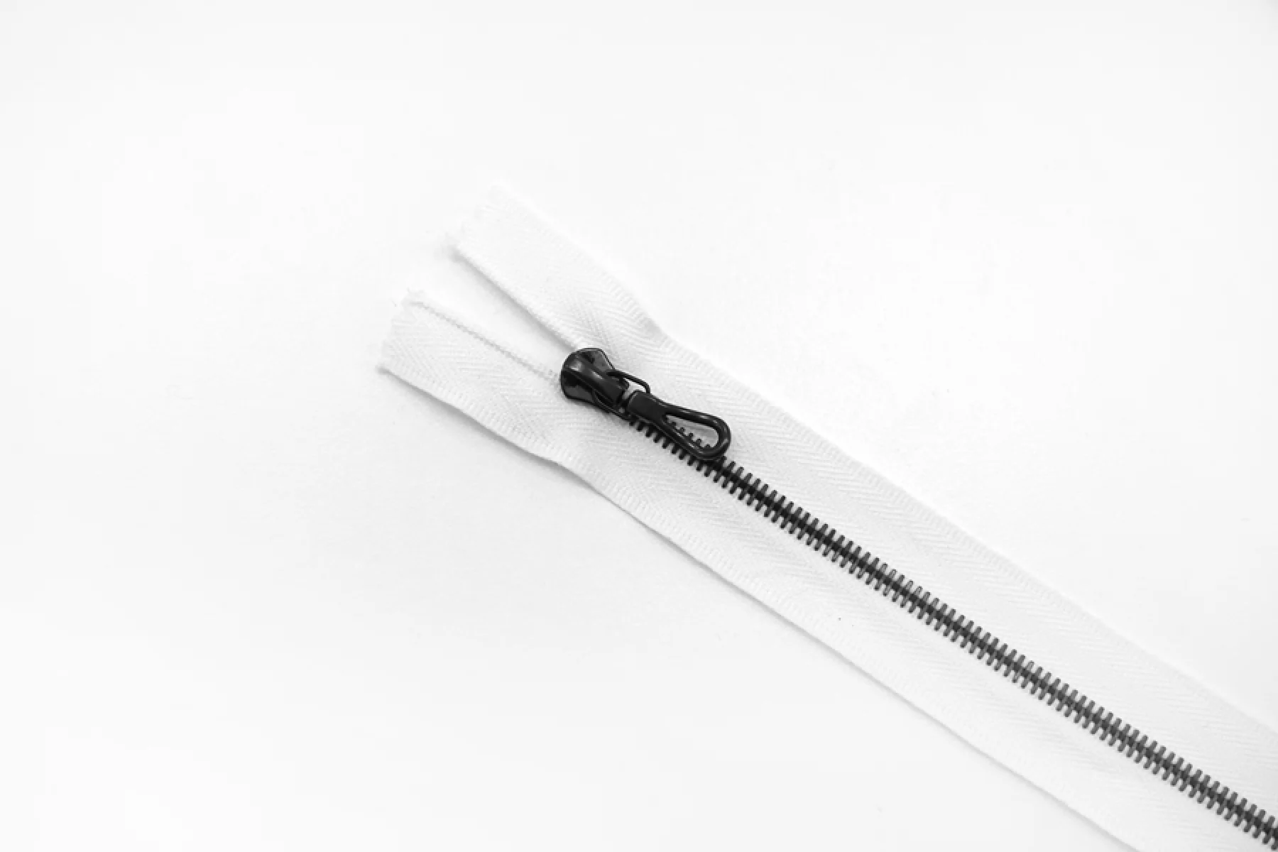 Молния от Riri неразъемная, однозамковая, белого цвета, цвет зубцов и пуллера темный никель. Длина 14 см.