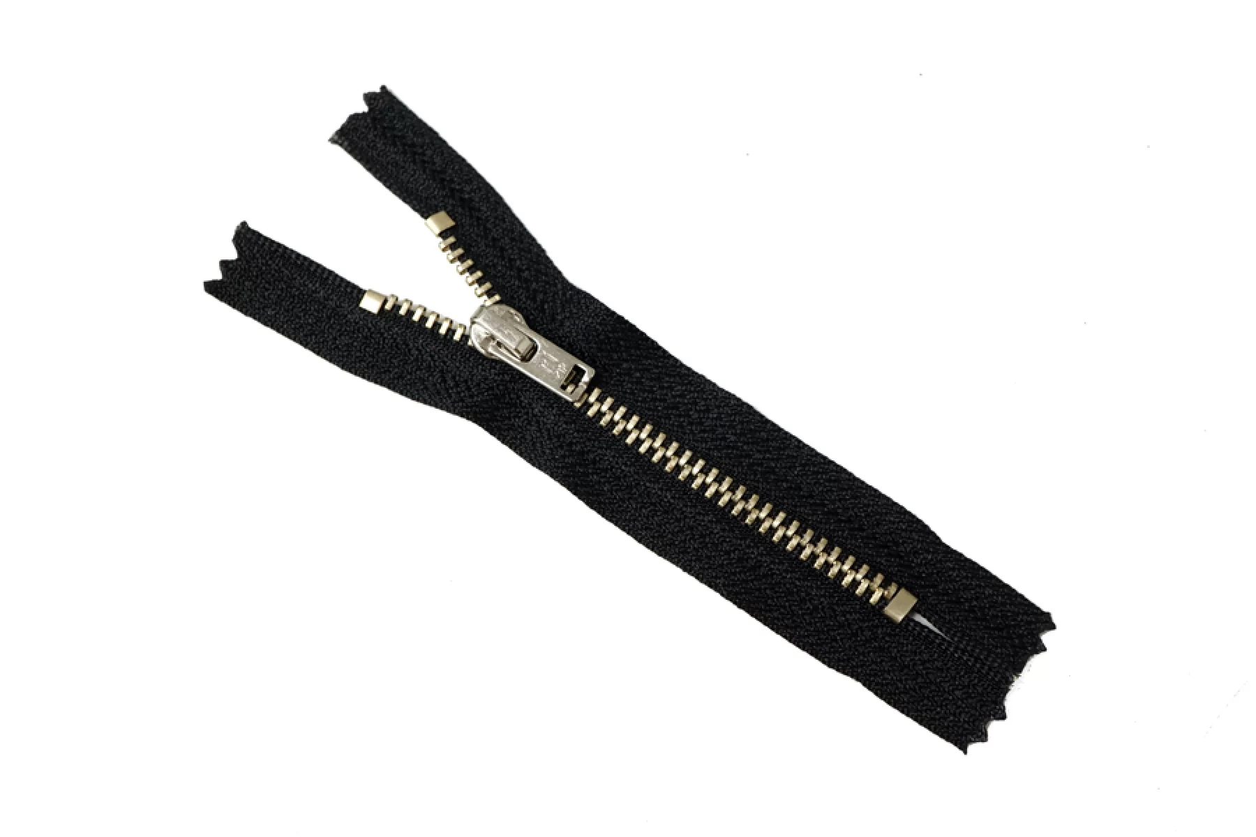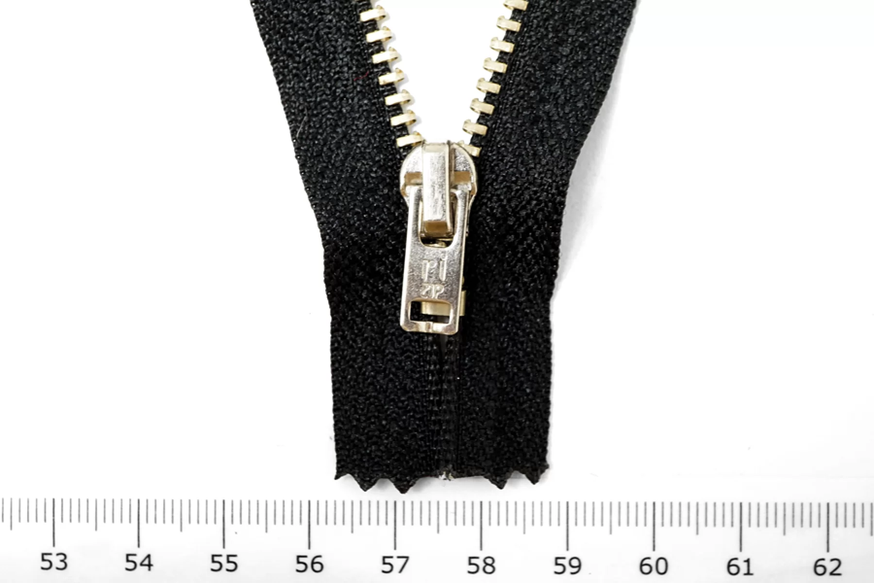 Маленькая металлическая молния "Riri" неразъёмная, черного цвета. Замок один. Цвет зубцов, слайдера и пулера металлический серебристый. Длина 10 см. Ширина молнии 2,8 см. Ширина зубцов 5 мм.