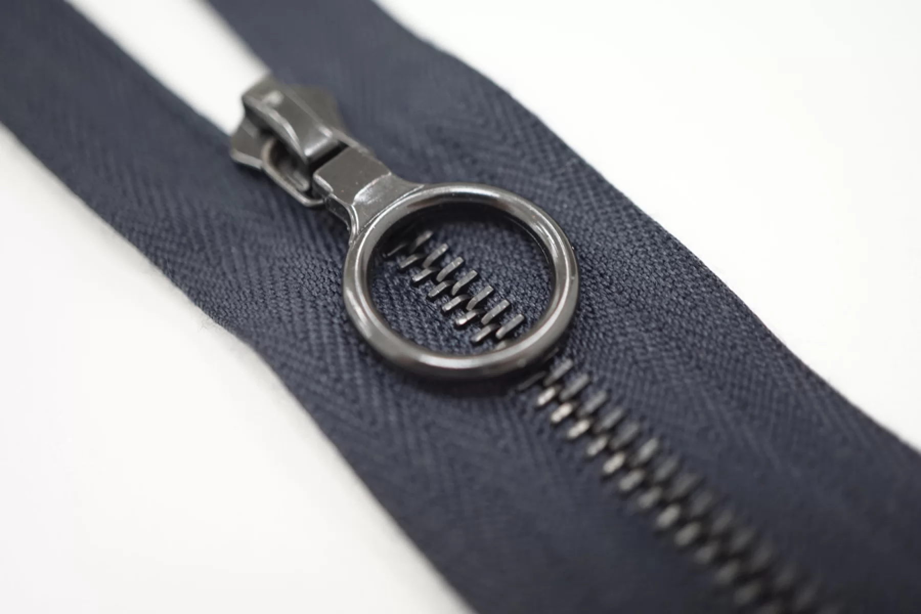 Молния от Riri неразъемная, темно-синяя, цвет зубцов и крупного слайдера - никель. Длина 16 см.