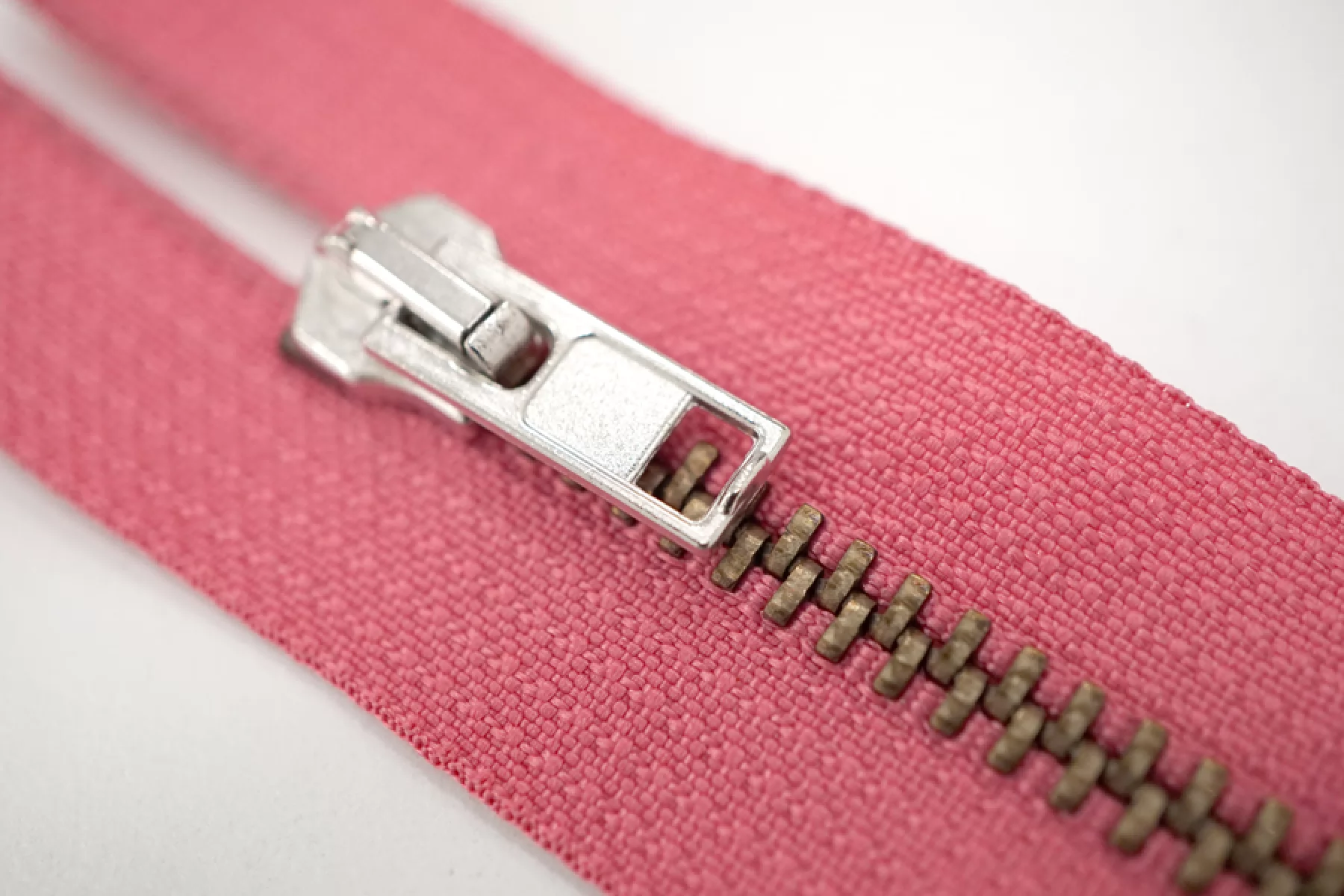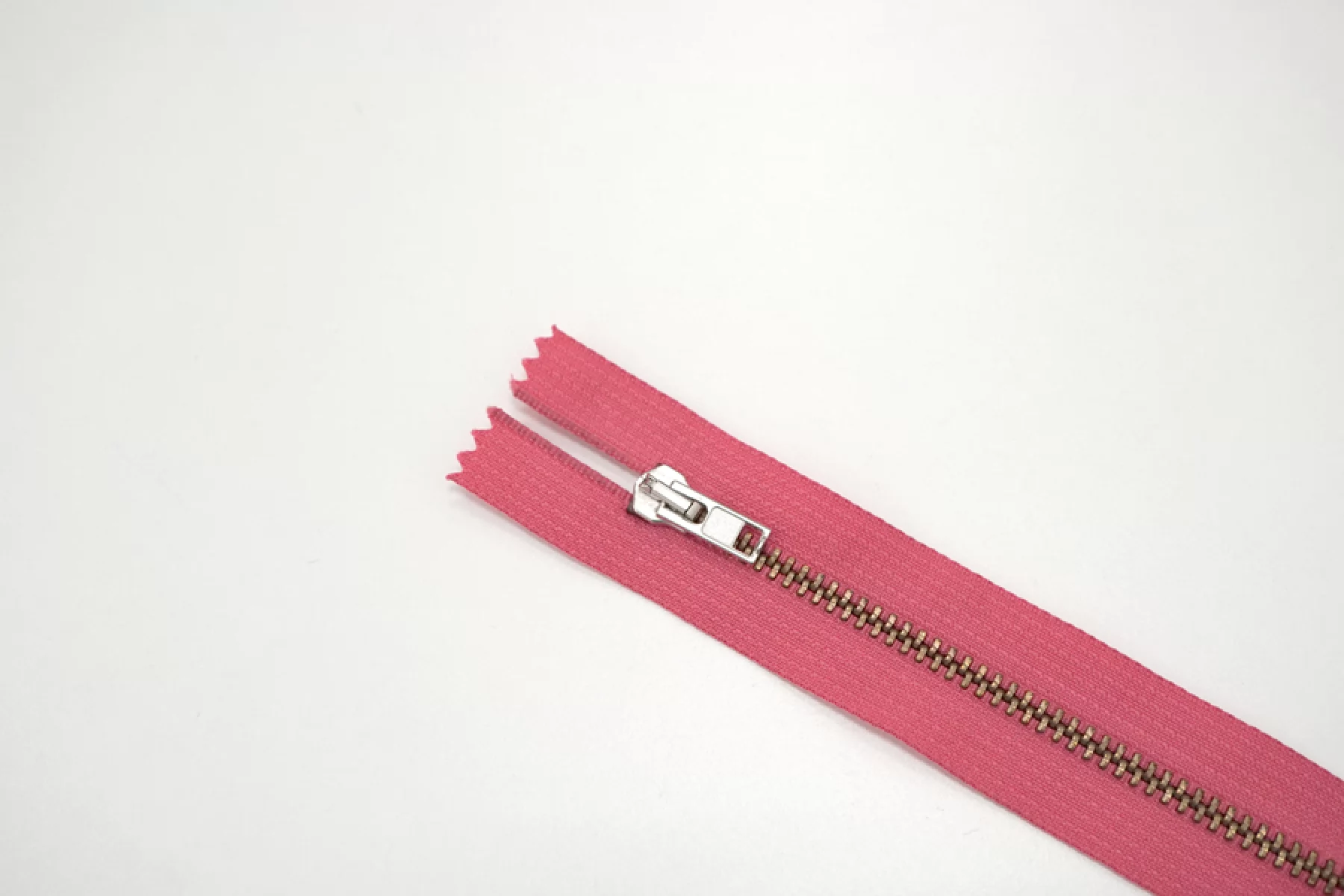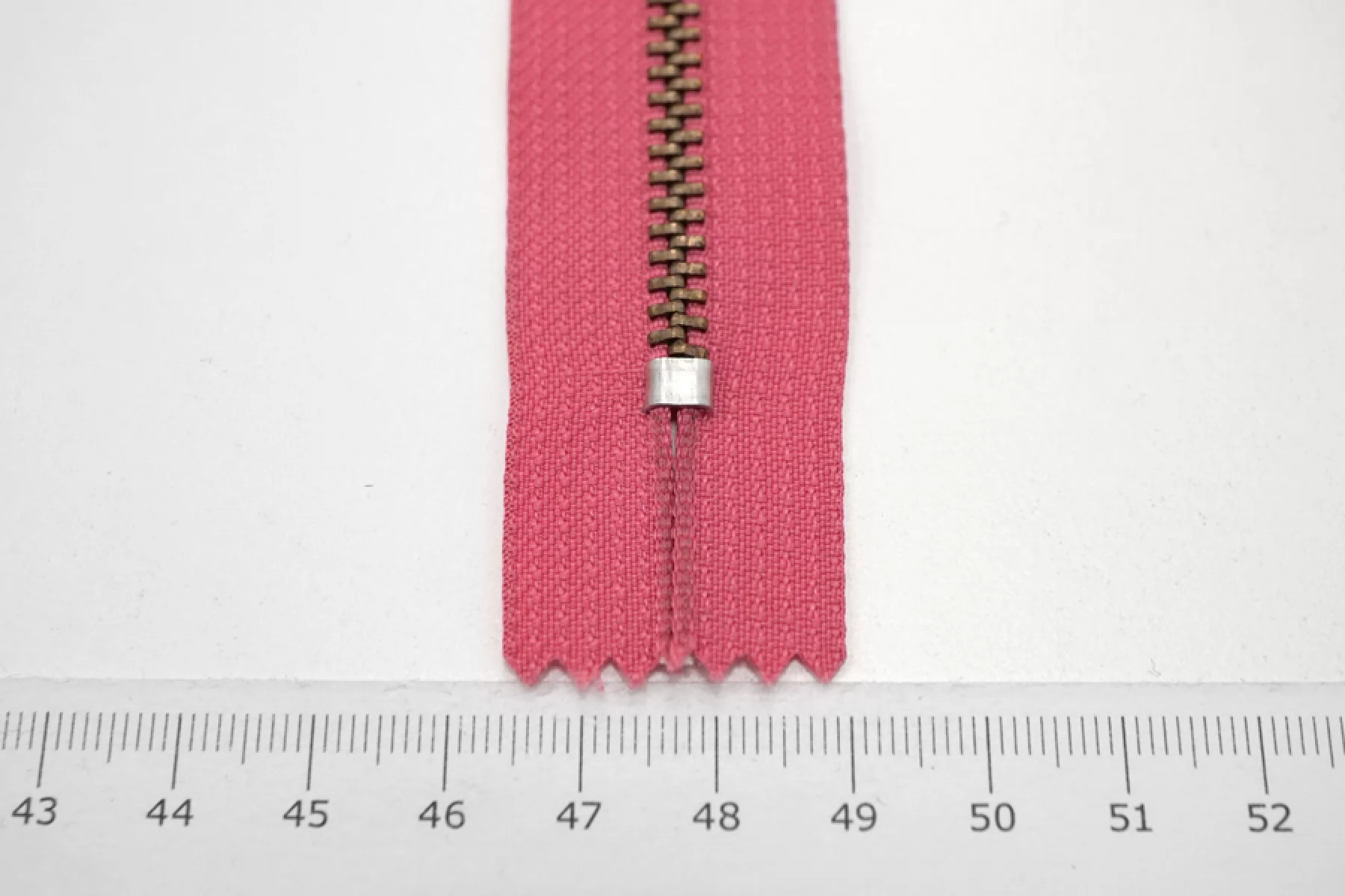 Молния неразъемная, розовая, цвет зубцов - золотистый, слайдер и пулер - серебристые. Длина 12 см.