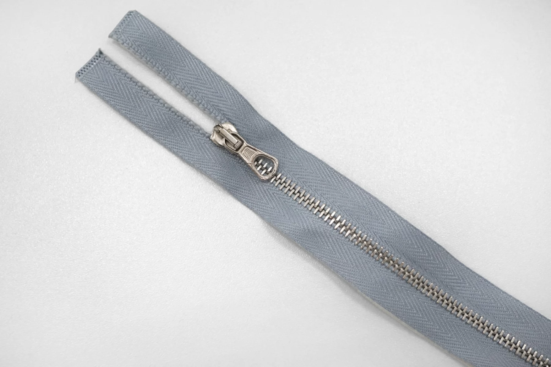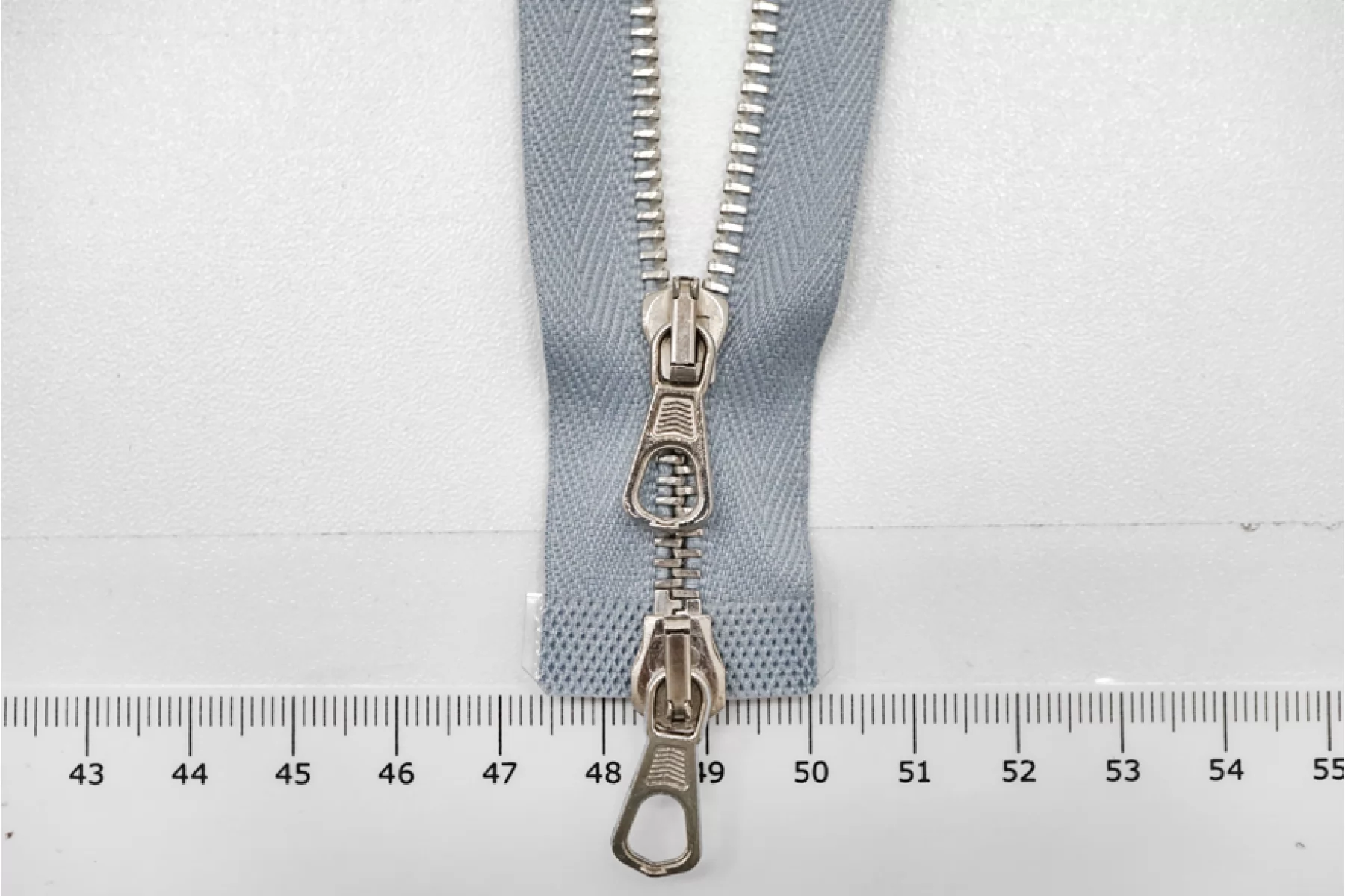 Молния серо-голубая двухзамковая тракторная от "Lampo " неразъемная, цвет зубцов серебристый. Длина 50 см.