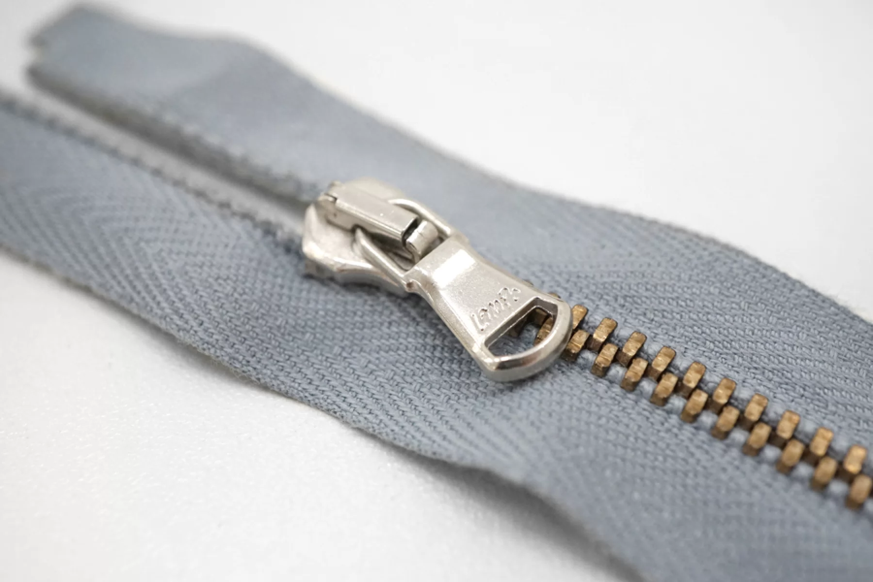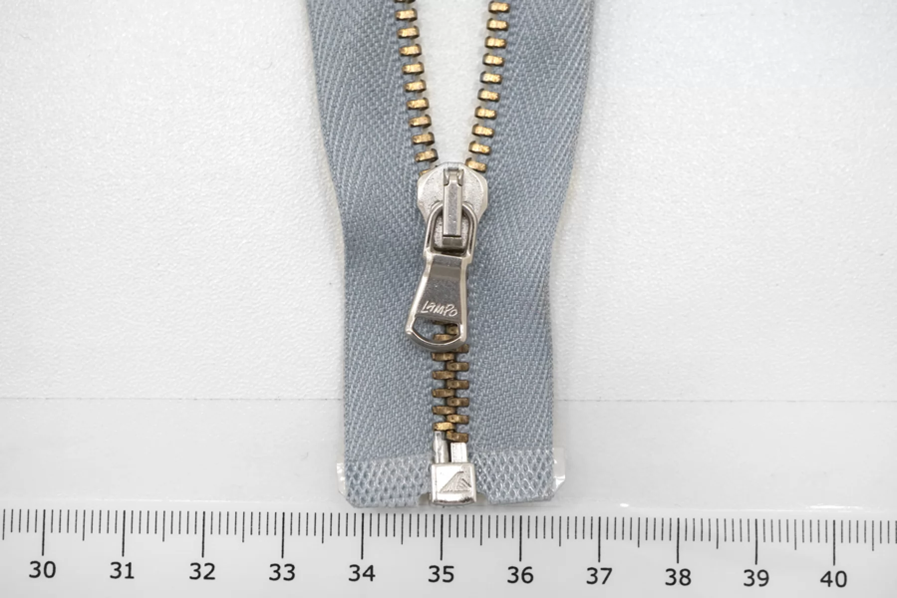 Молния серо-голубая тракторная от "Lampo " неразъемная, цвет пулера серебристый, цвет зубцов золотистый. Длина 53 см.