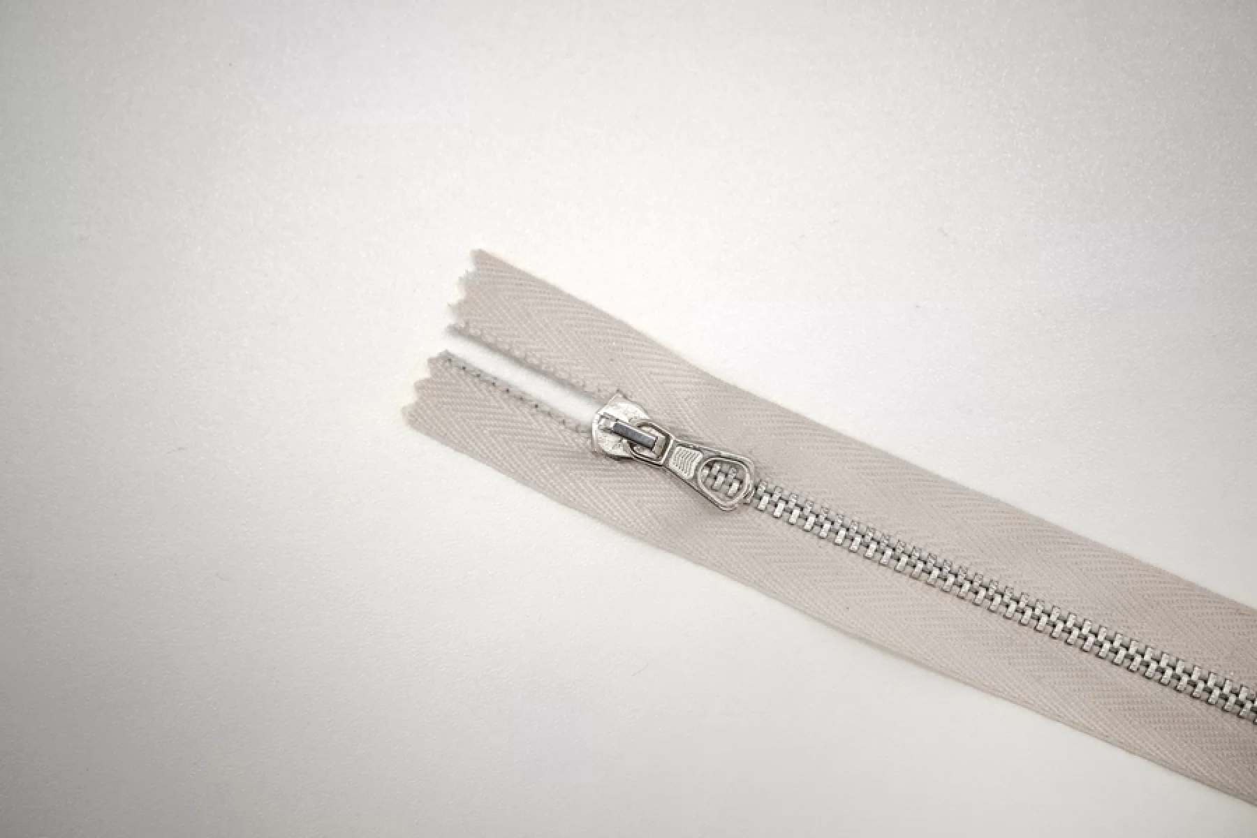 Молния металлическая от "Lampo" неразъемная, светло-серая, цвет зубцов серебристый. Длина 12 см.