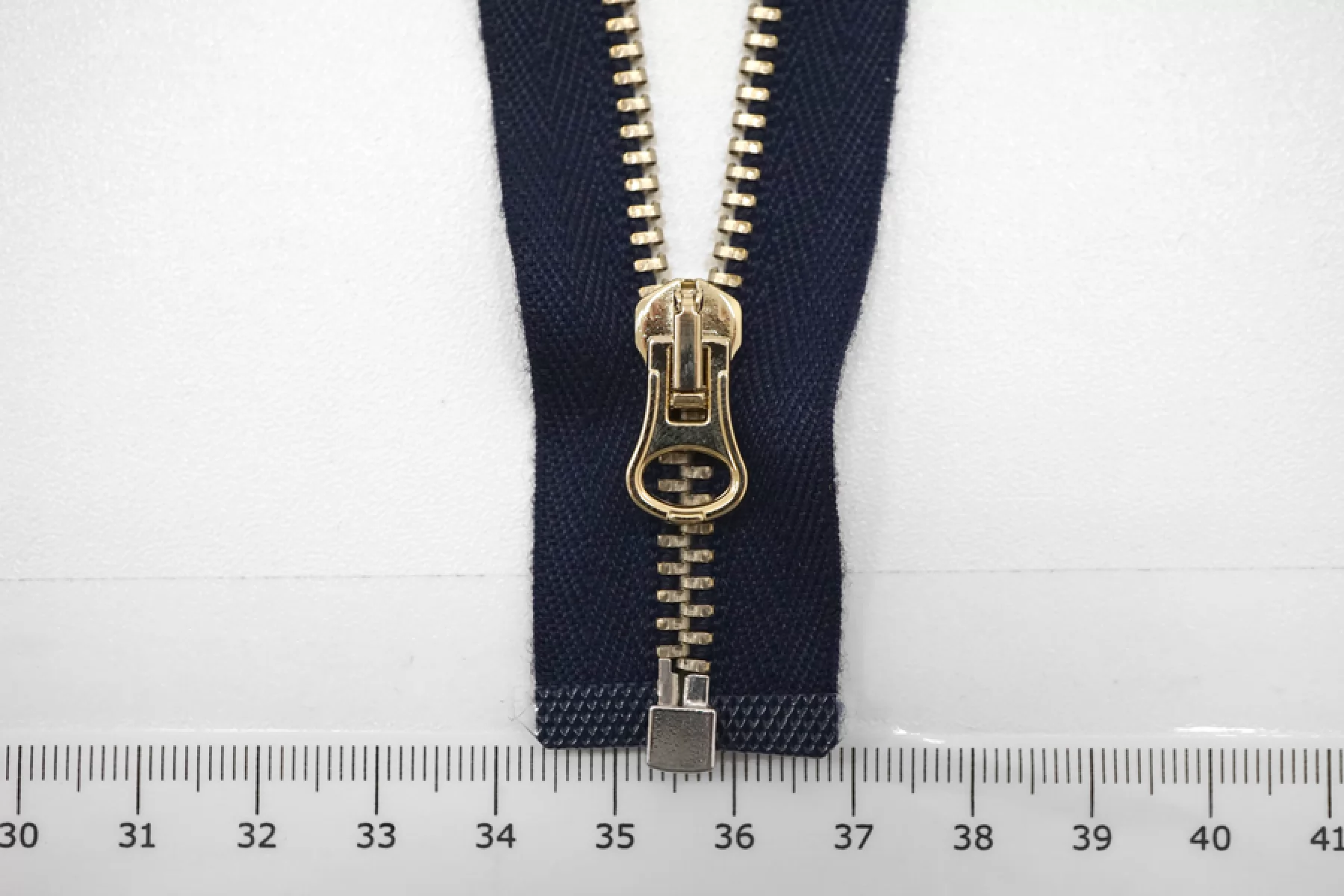 Молния тёмно-синяя тракторная от "Lampo " неразъемная, цвет зубцов золотистый. Длина 35 см.