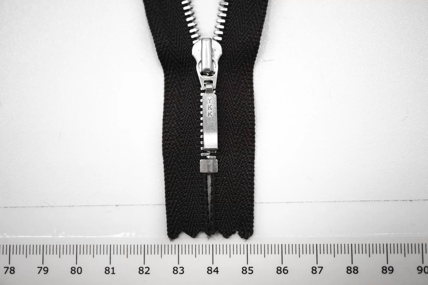 Молния металлическая от YKK неразъемная, черная, цвет зубцов серебристый. Длина 10 см.