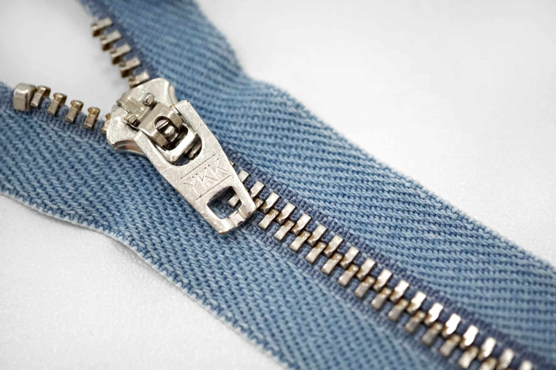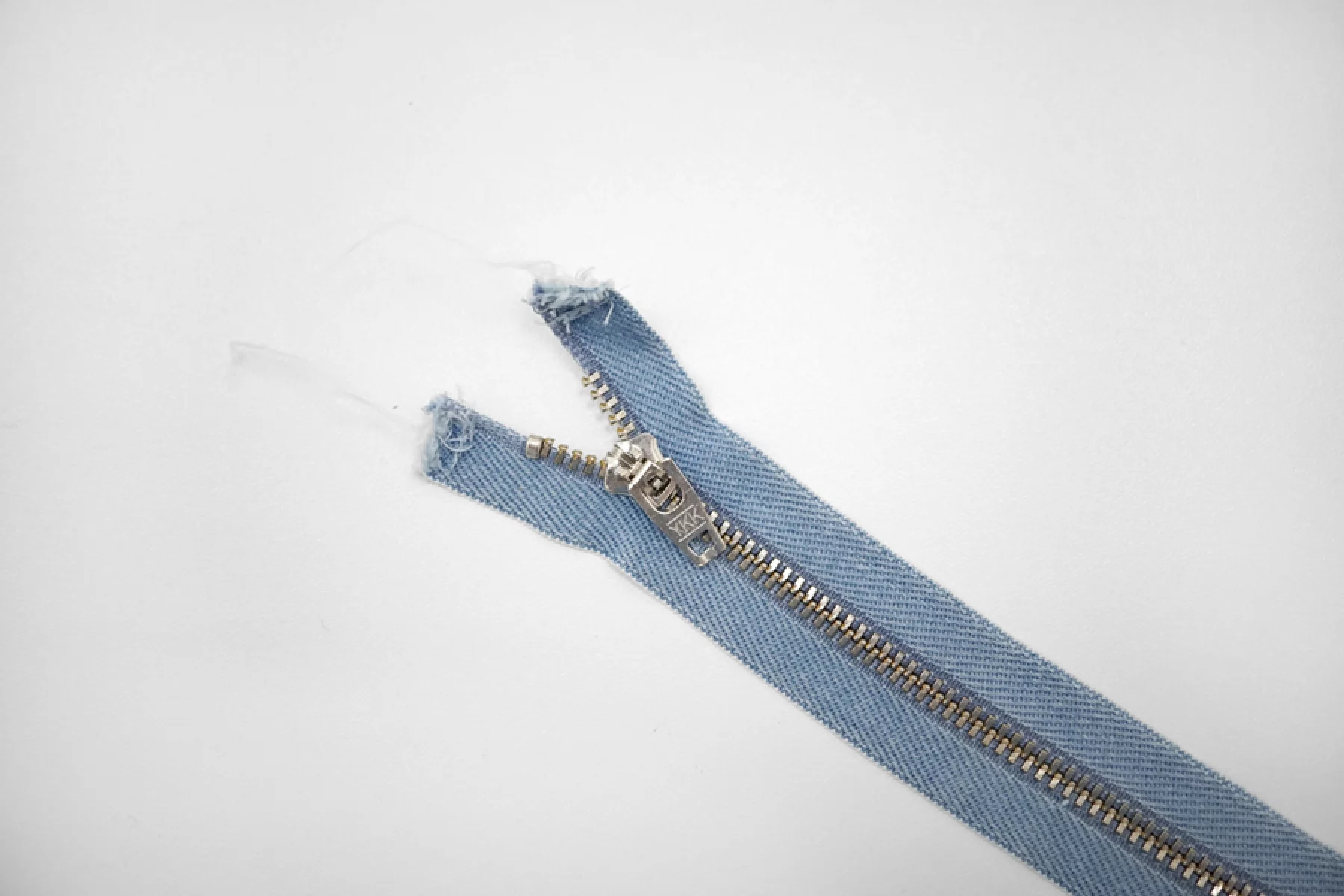 Молния от "YKK" неразъемная, однозамковая, джинсового цвета, цвет зубцов серебристый. Длина 15 см.