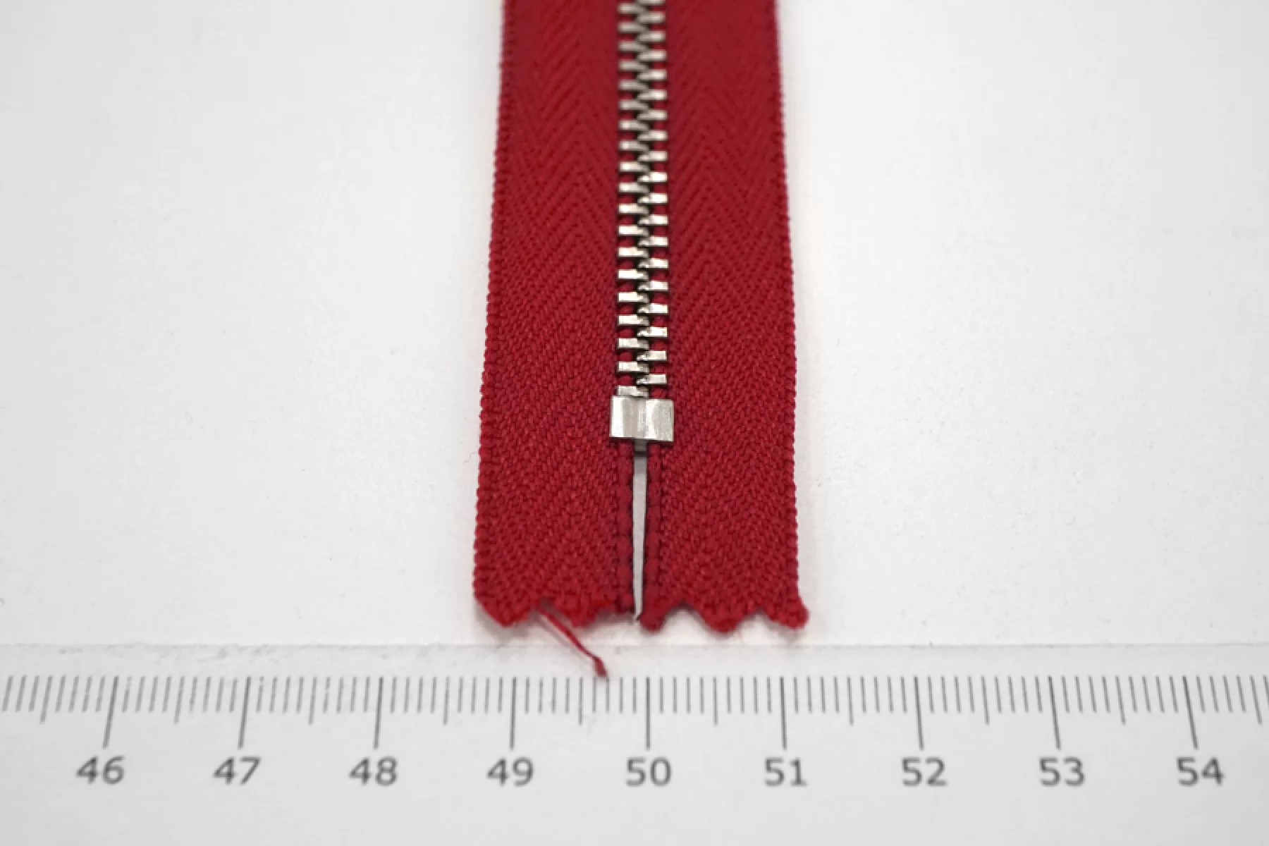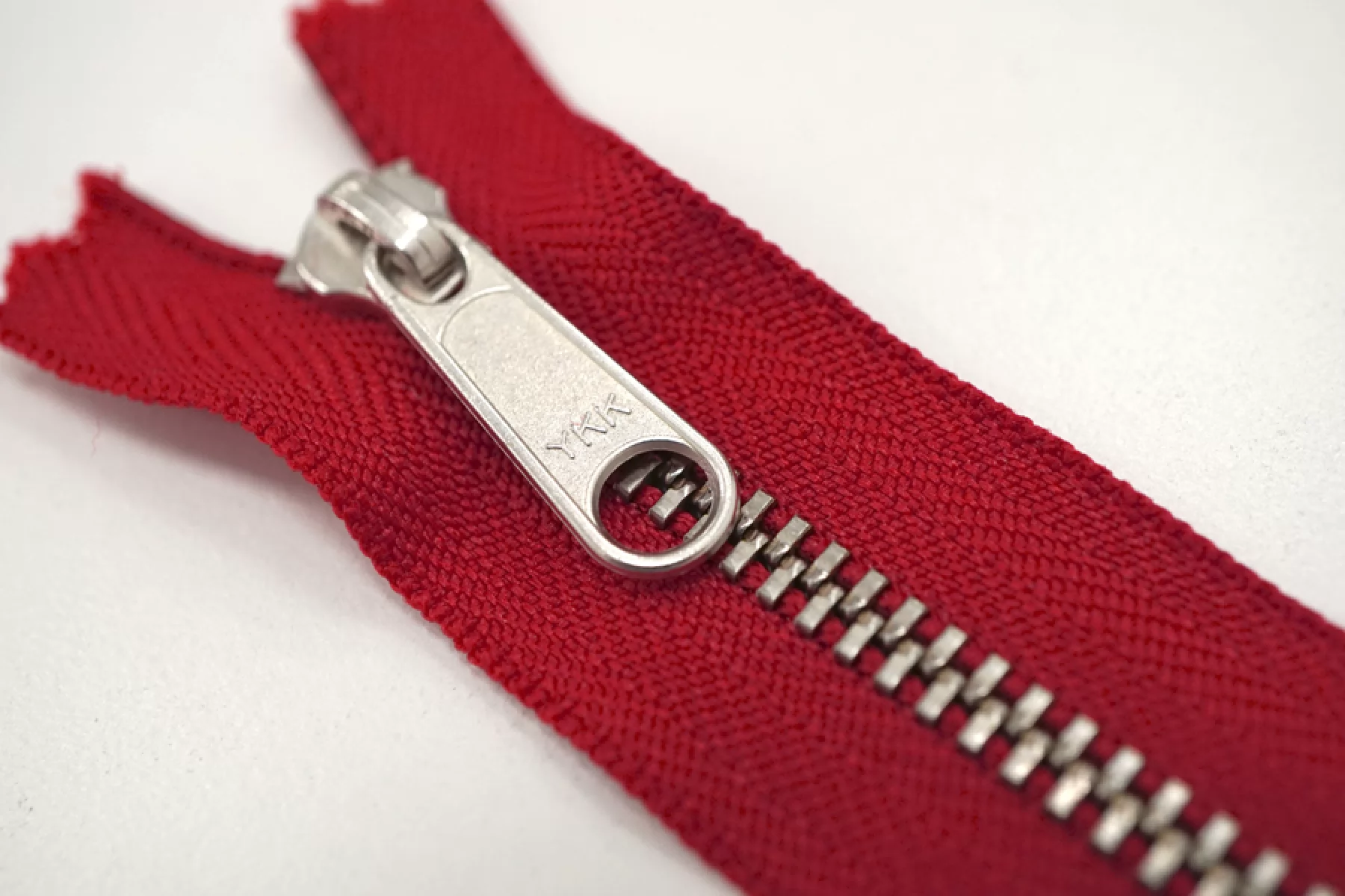 Молния от YKK неразъемная, красная, цвет зубцов серебристый. Длина 16 см.