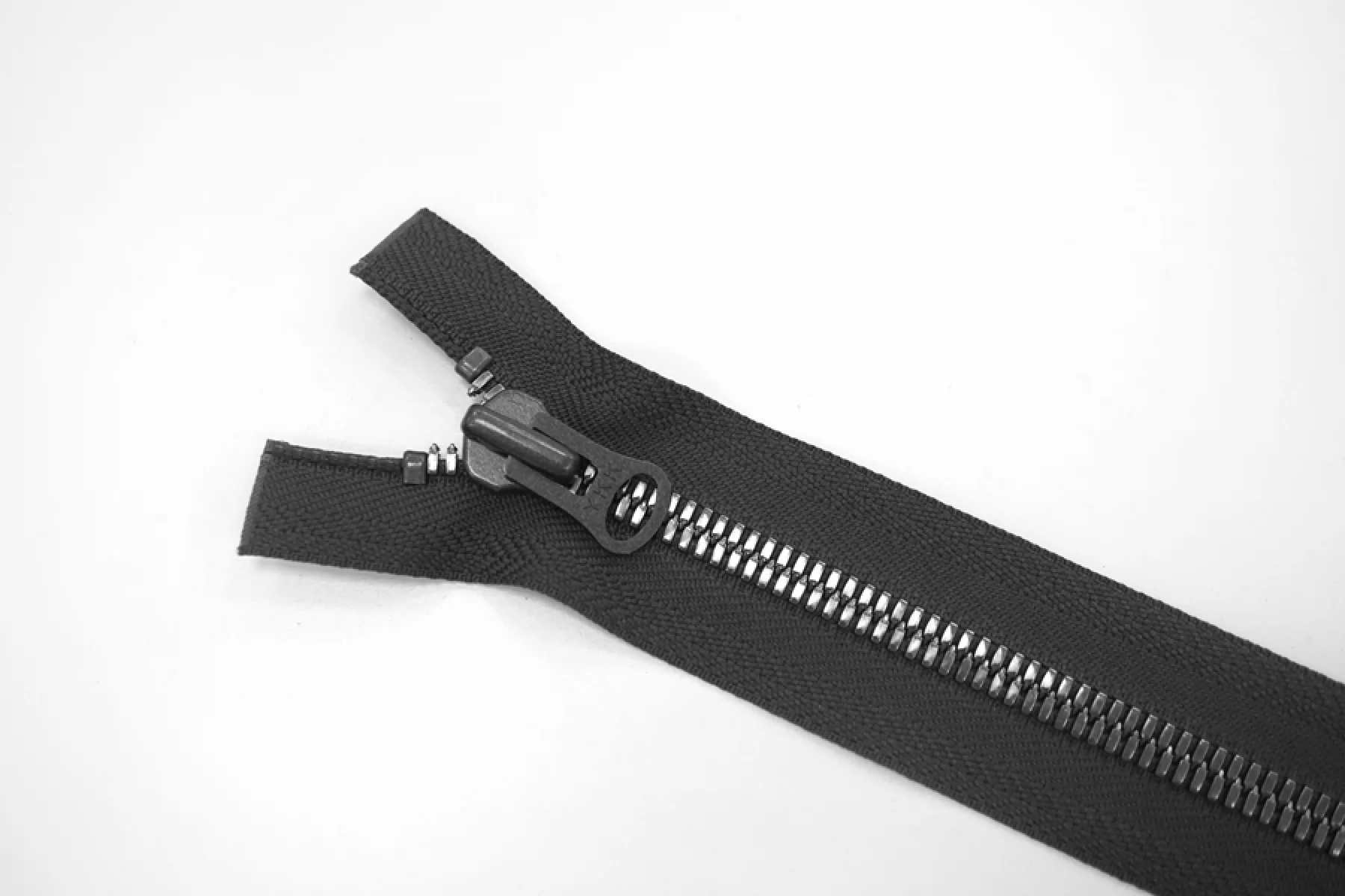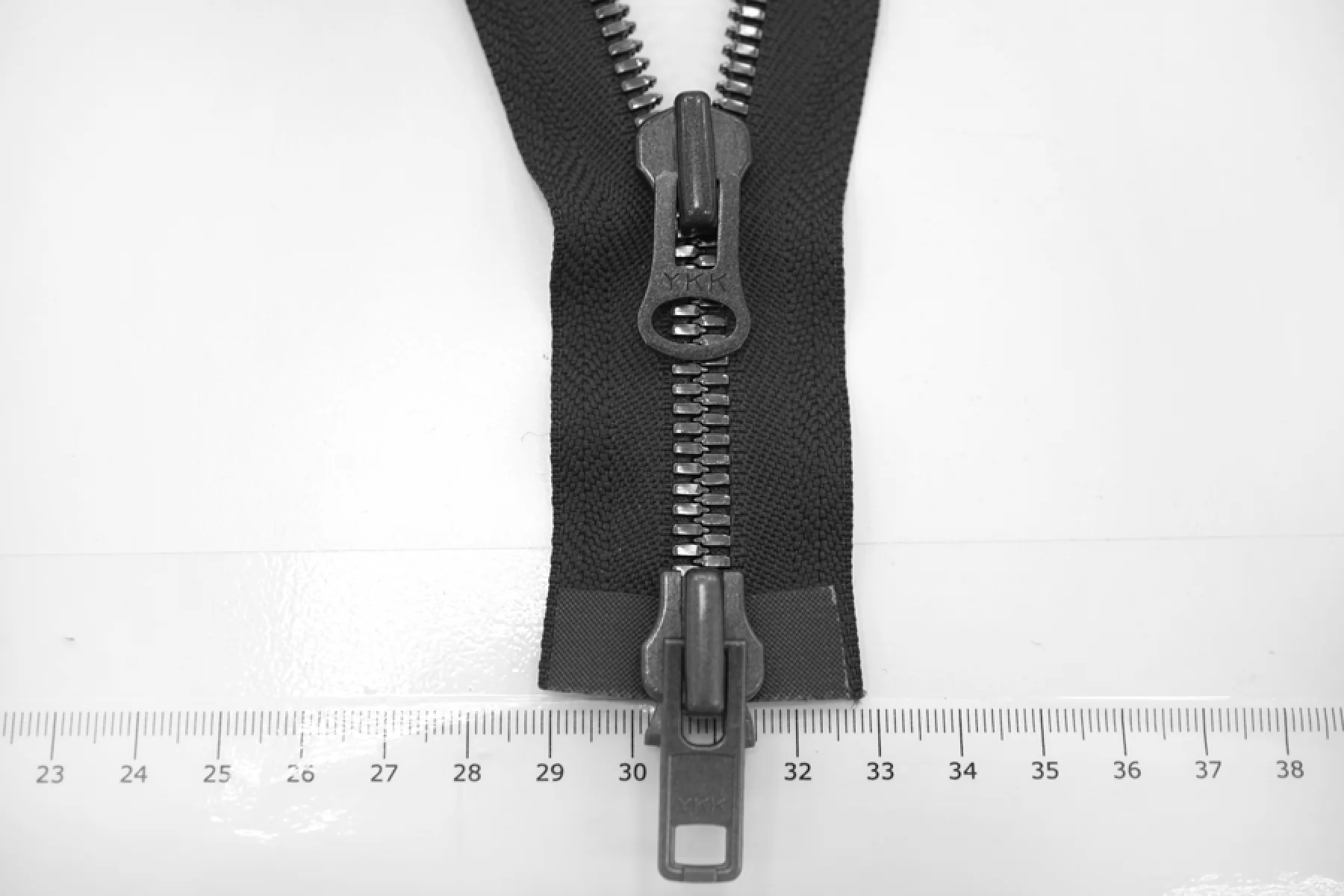 Молния от "YKK" двухзамковая, разъемная, серого цвета, цвет зубцов и пуллера - никель. Длина 46 см.