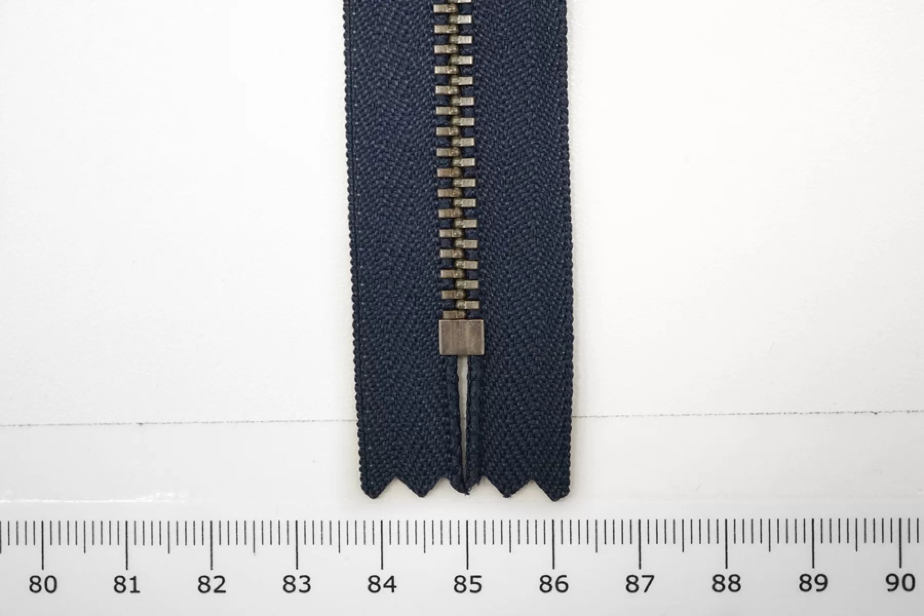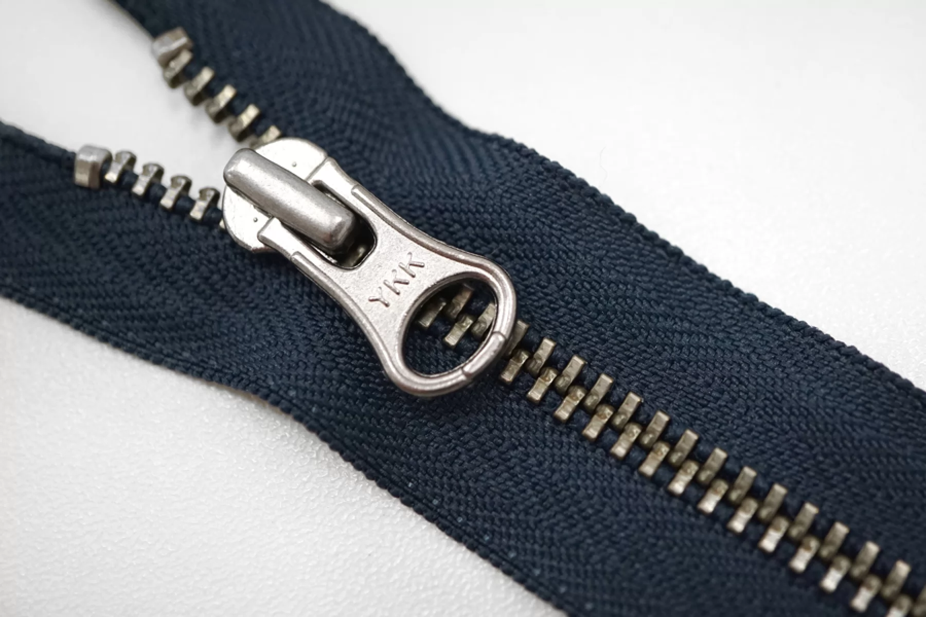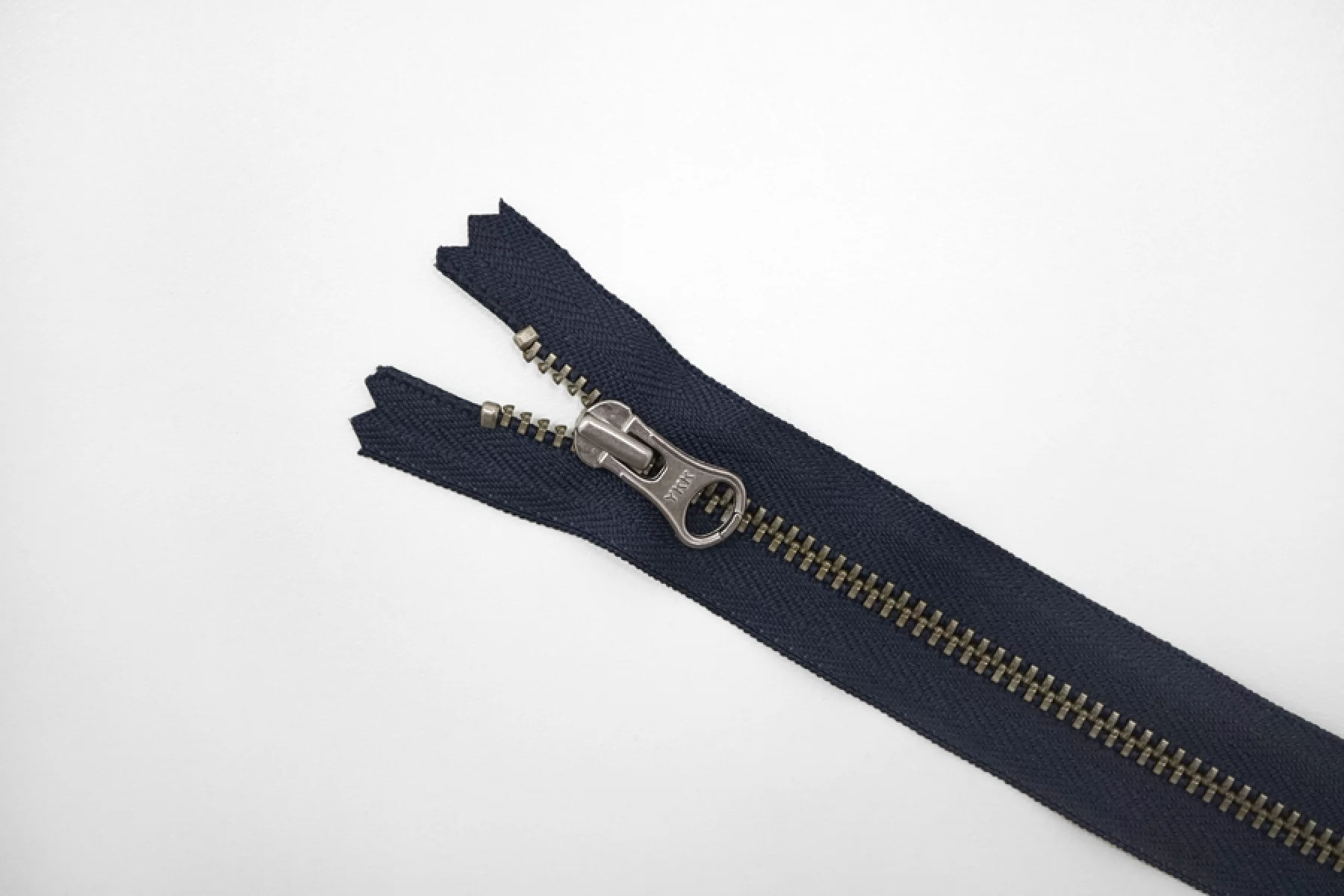 Молния металлическая от YKK неразъемная, темно-синяя, цвет зубцов никель. Длина 14 см.