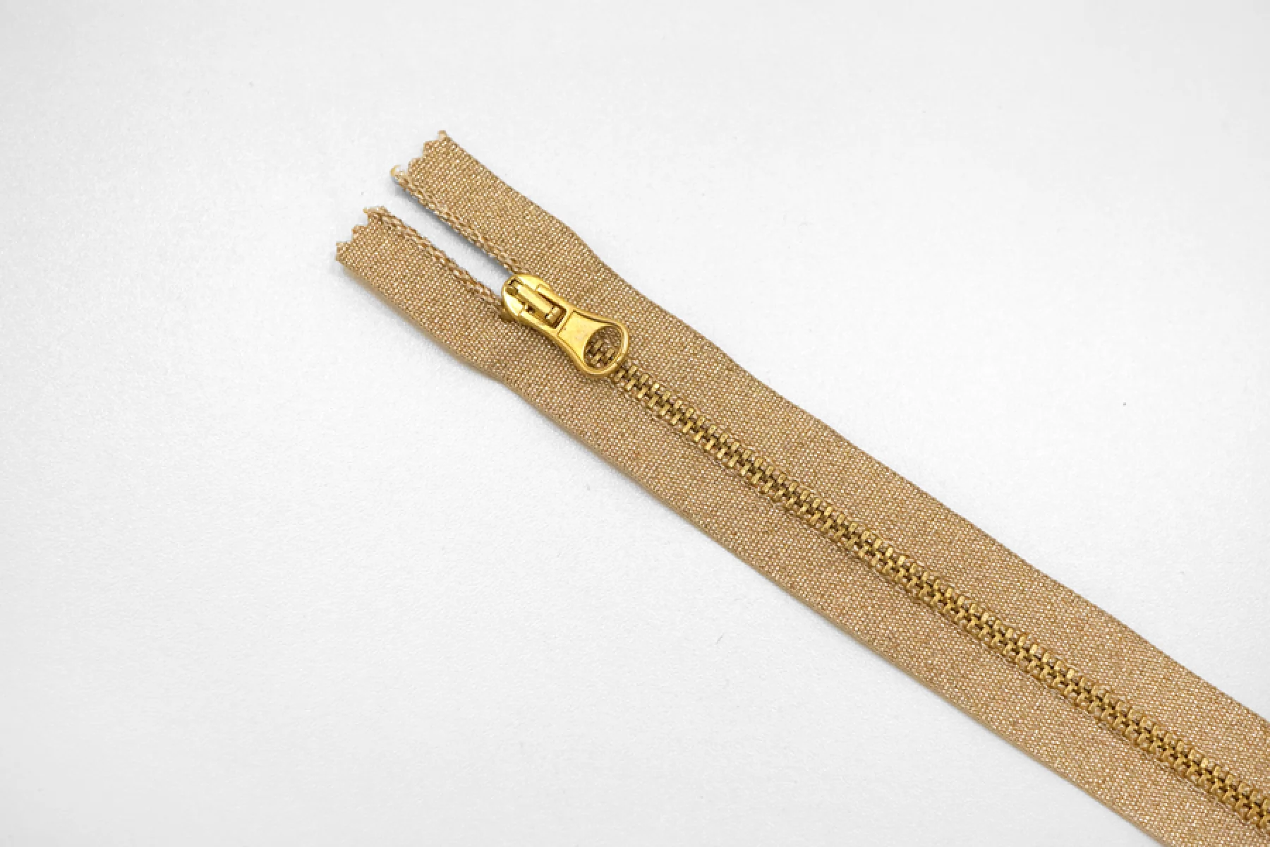 Молния золотистая тракторная от "Lampo " неразъемная, цвет зубцов золотистый . Длина 31 см.