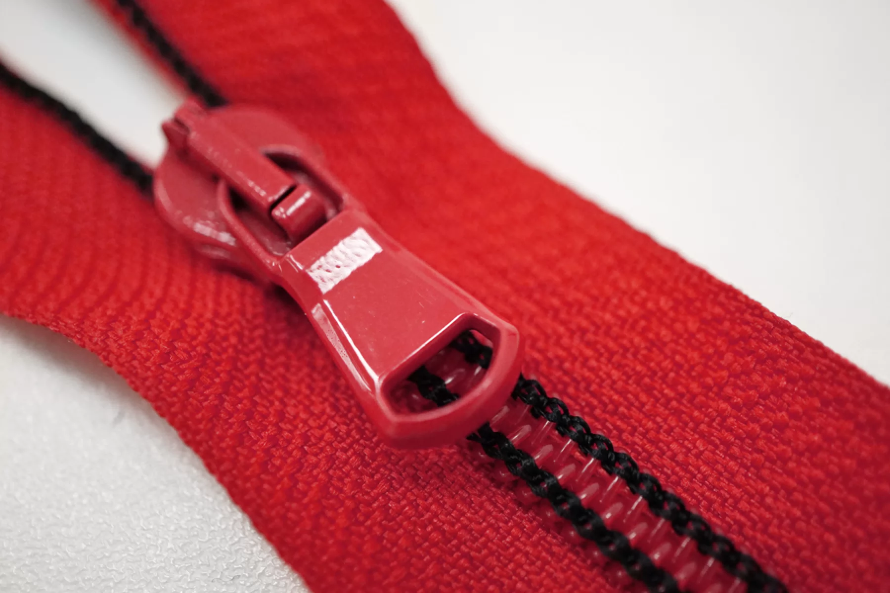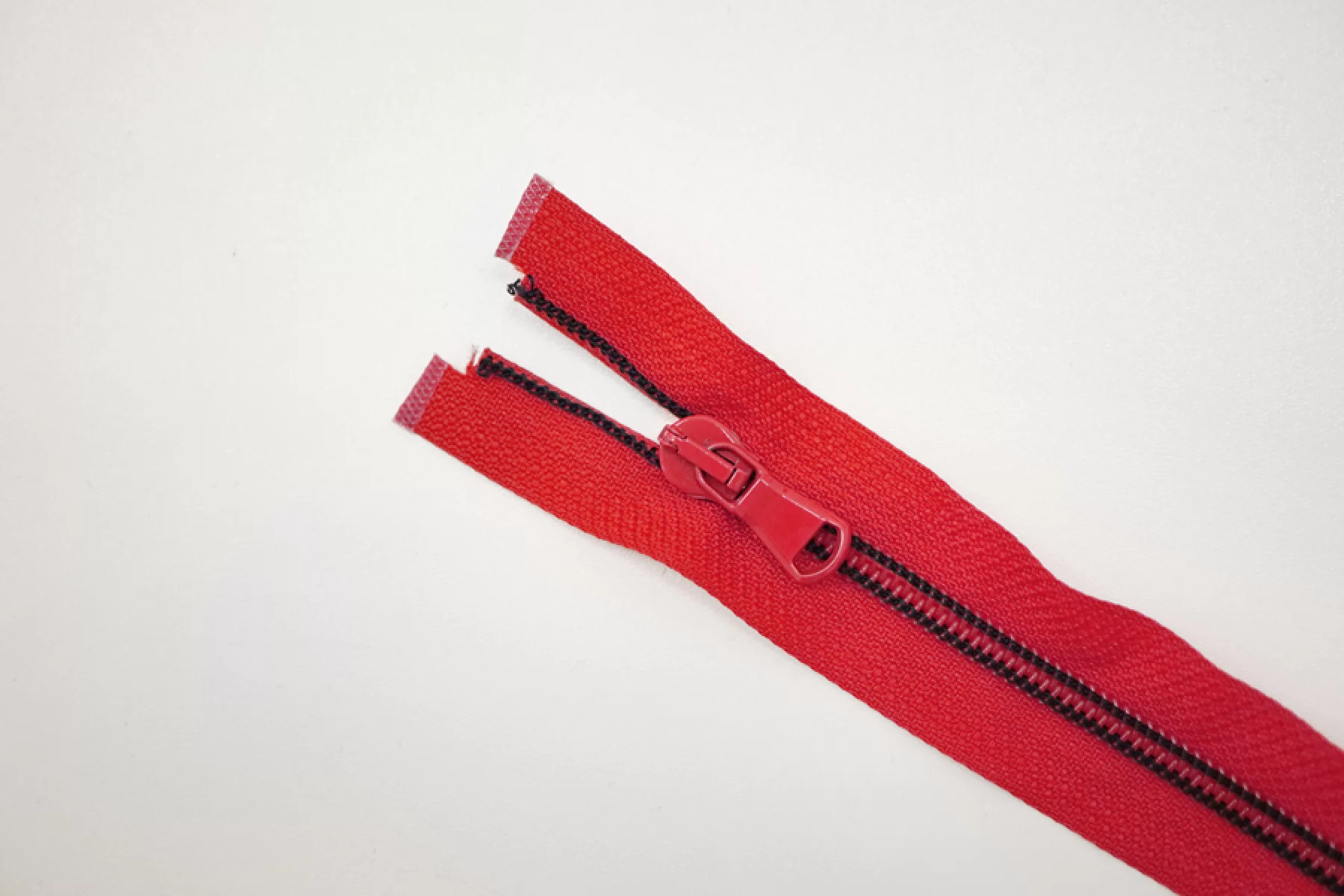 Молния спиральная разъёмная, однозамковая, красного цвета с зубцами и пуллером черно-красного цвета от Lampo. Длина 42 см.