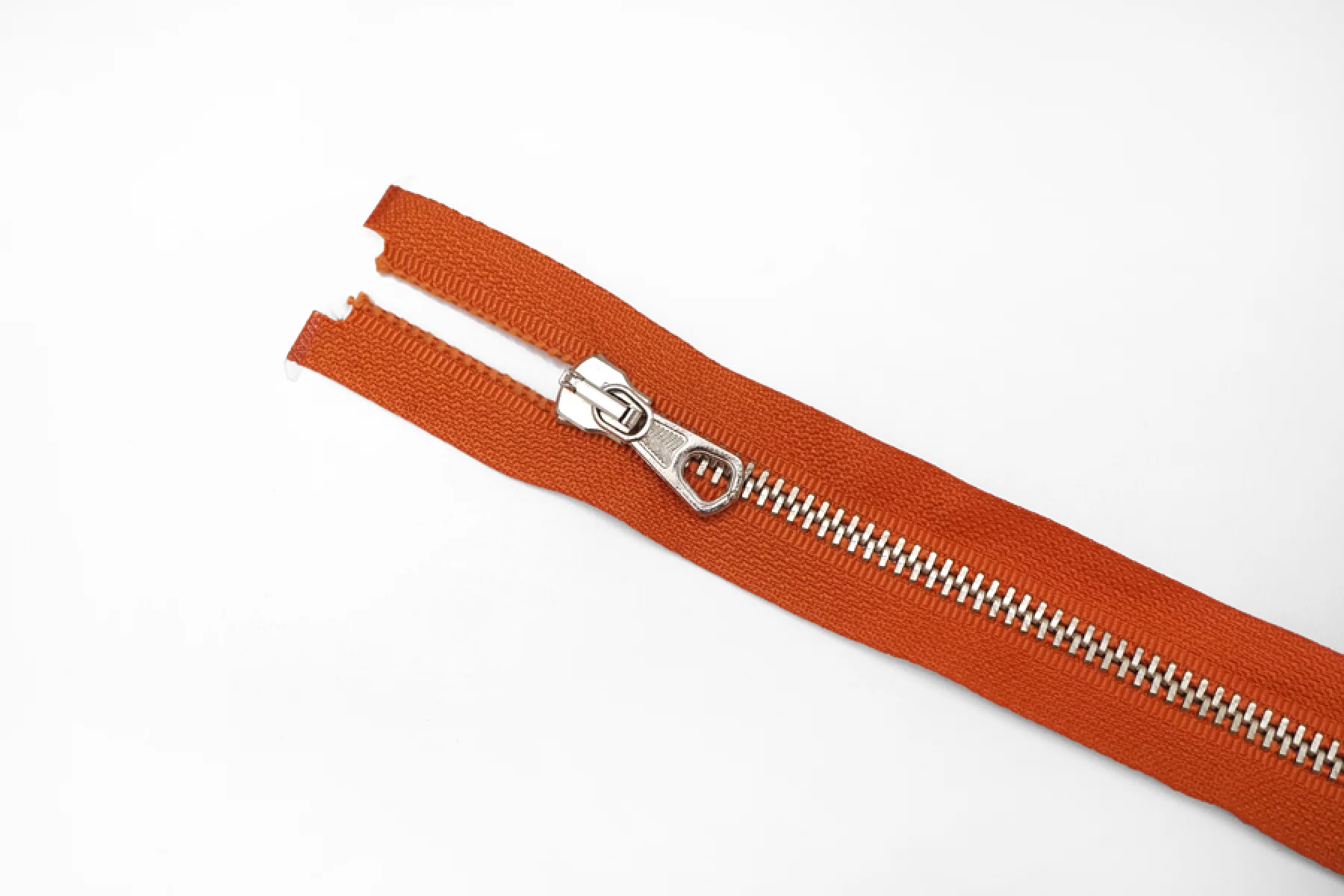 Молния от "Lampo" разъемная, оранжевого цвета , цвет зубцов золотистый цвет пуллера серебристый . Длина 51 см.