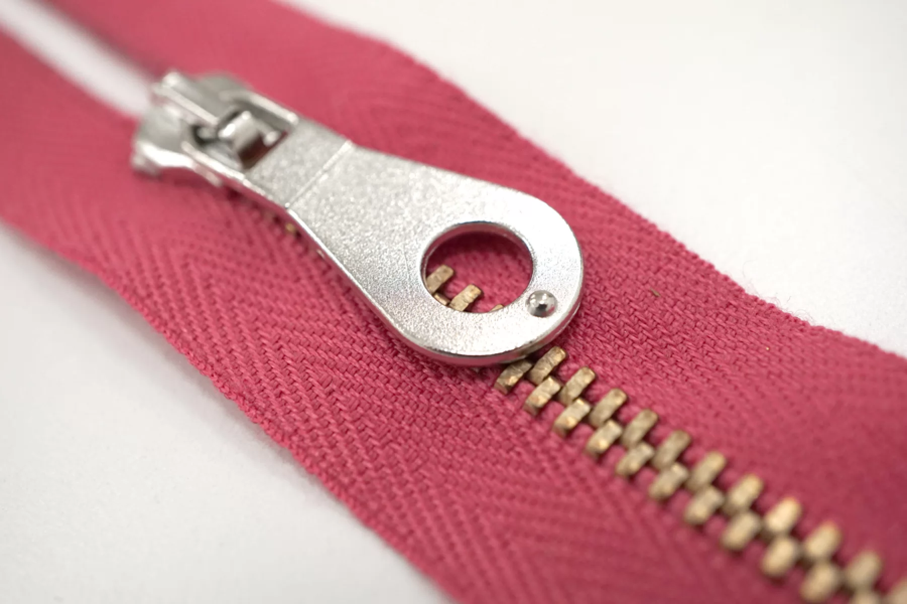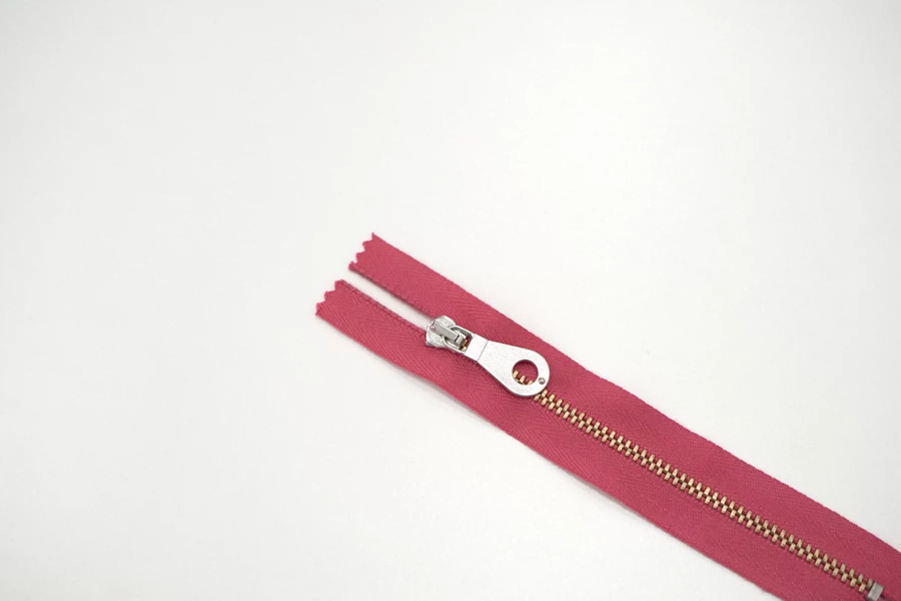 Молния от "Lampo" неразъемная, розовая, цвет зубцов - золотистый, крупный слайдер - серебристого цвета. Длина 26 см.