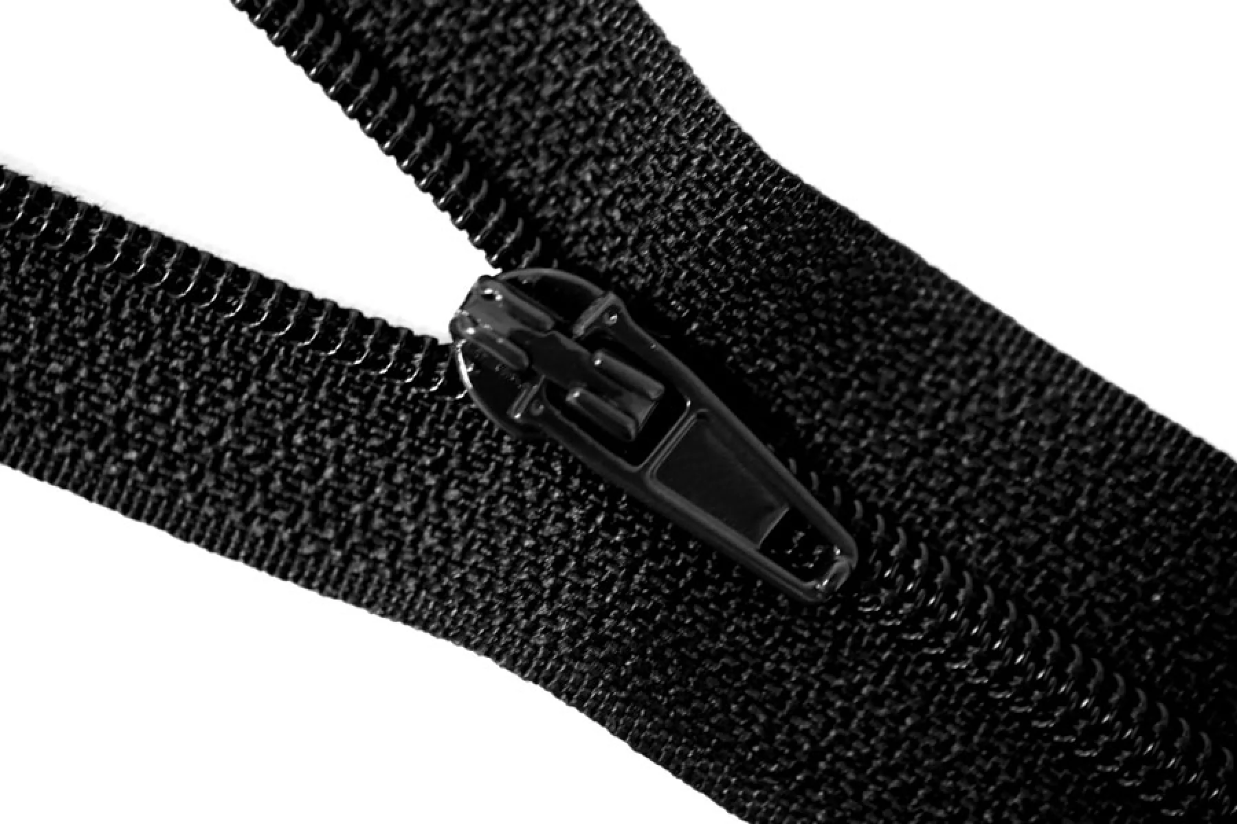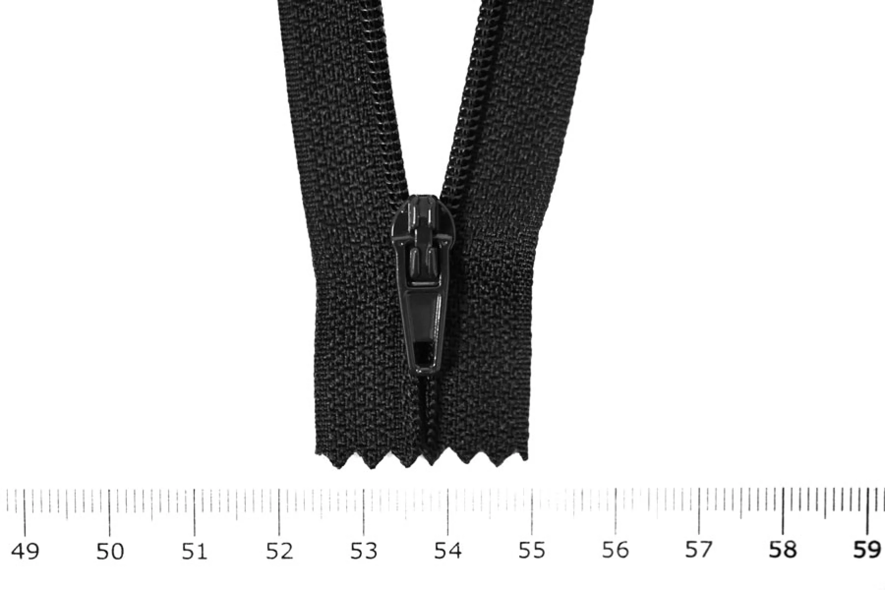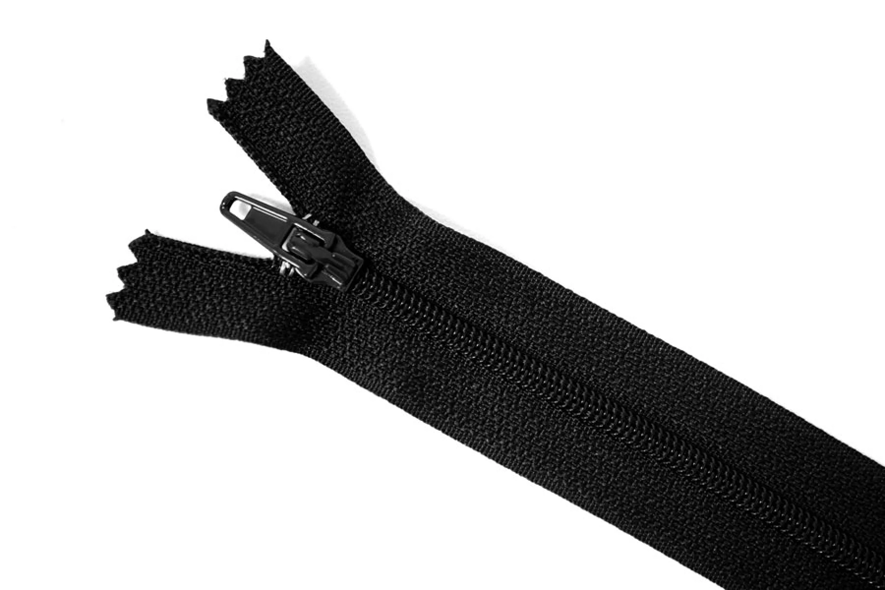 Молния неразъемная,черного цвета. Зубцы пластиковые, пуллер и слайдер -металлический в цвет молнии. Длина 20 см. Ширина 2,5 м. Ширина зубцов 4 мм.
