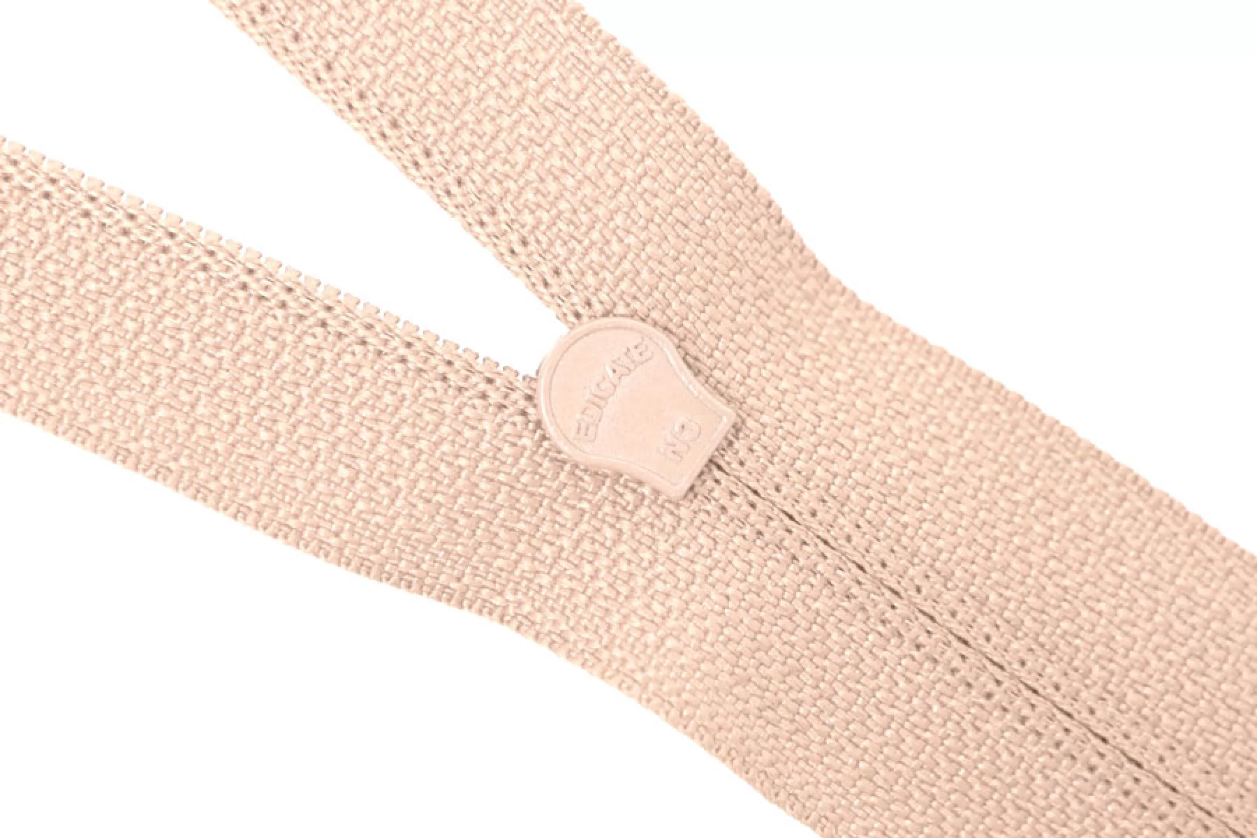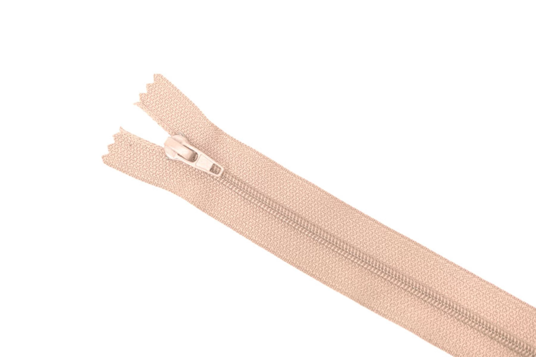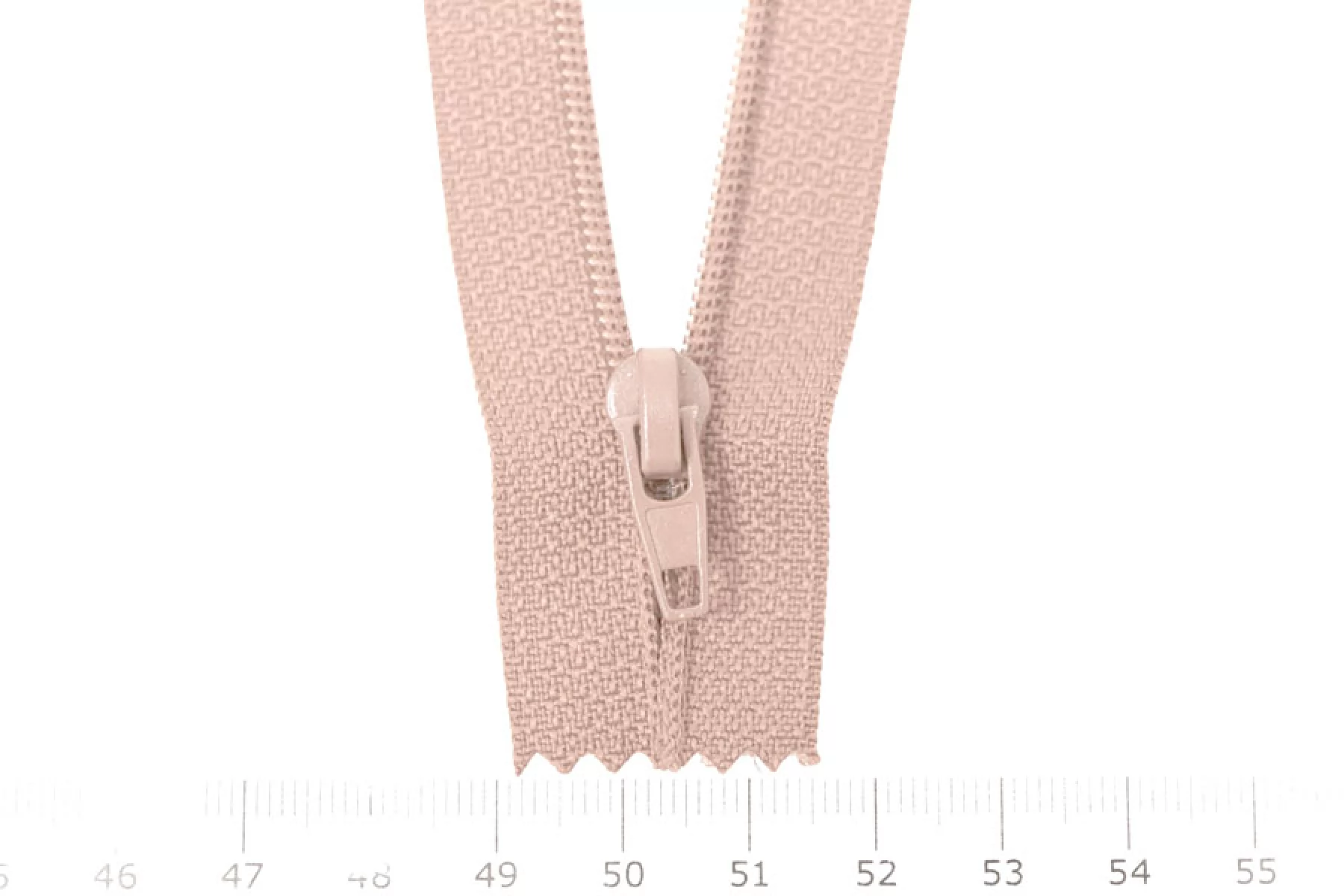 Молния от EDICATE неразъемная ,бежево-розового цвета , Зубцы пластиковые, пуллер и слайдер -металлический. Длина 16 см. Ширина 2,5 м. Ширина зубцов 4 мм.