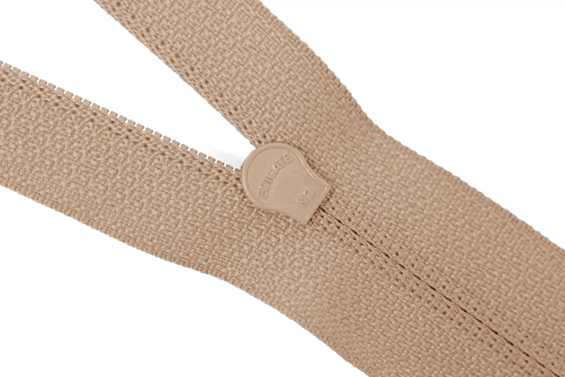 Молния от EDICATE неразъемная , бежевого цвета, Зубцы пластиковые, пуллер и слайдер -металлический. Длина 25 см. Ширина 2,5 см. Ширина зубцов 4 мм.