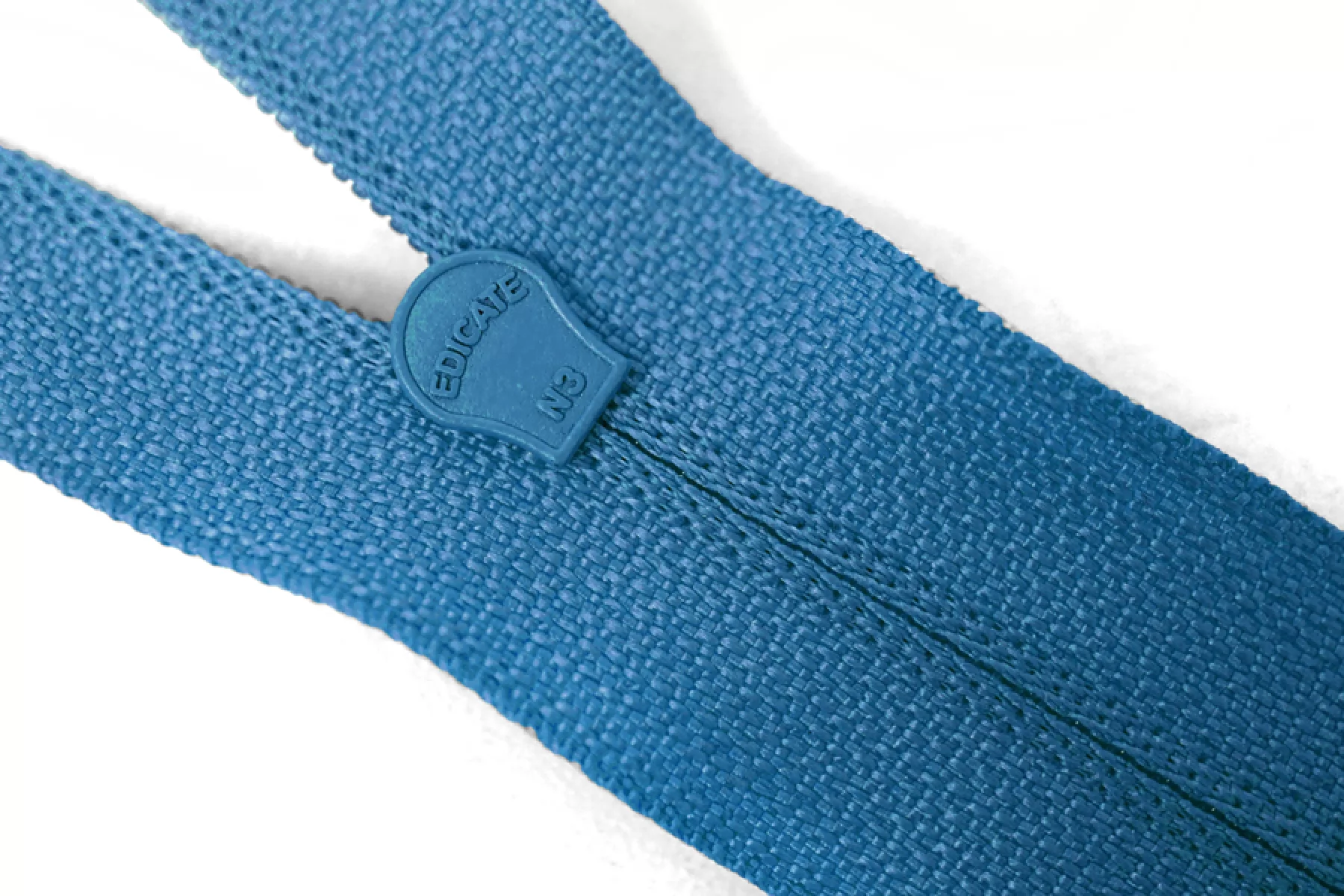 Молния от EDICATE неразъемная, в оттенке электрик, Зубцы пластиковые, пуллер и слайдер -металлический. Длина 18 см. Ширина 2,5 м. Ширина зубцов 4 мм.