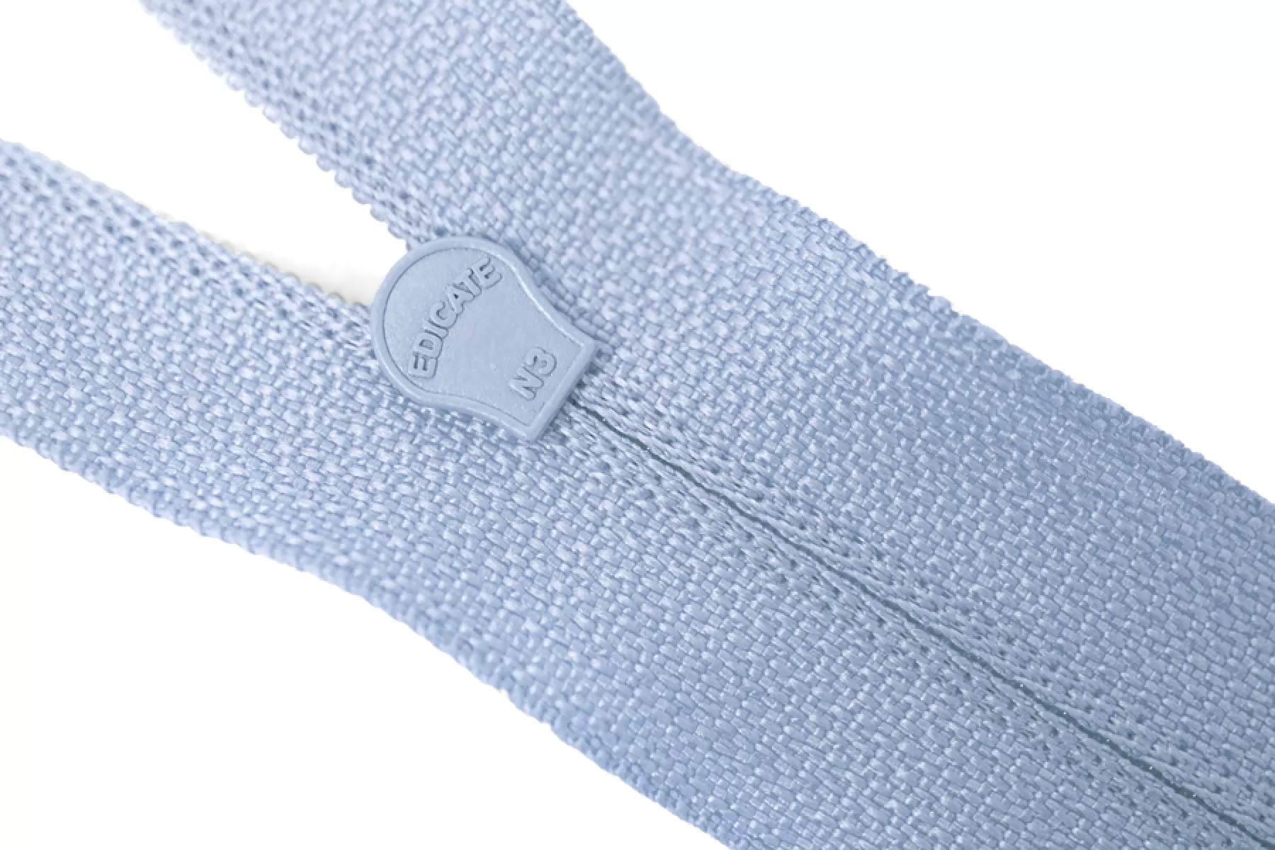 Молния от EDICATE неразъемная, голубого цвета. Зубцы пластиковые, пуллер и слайдер -металлический. Длина 16 см. Ширина 2,5 м. Ширина зубцов 4 мм.