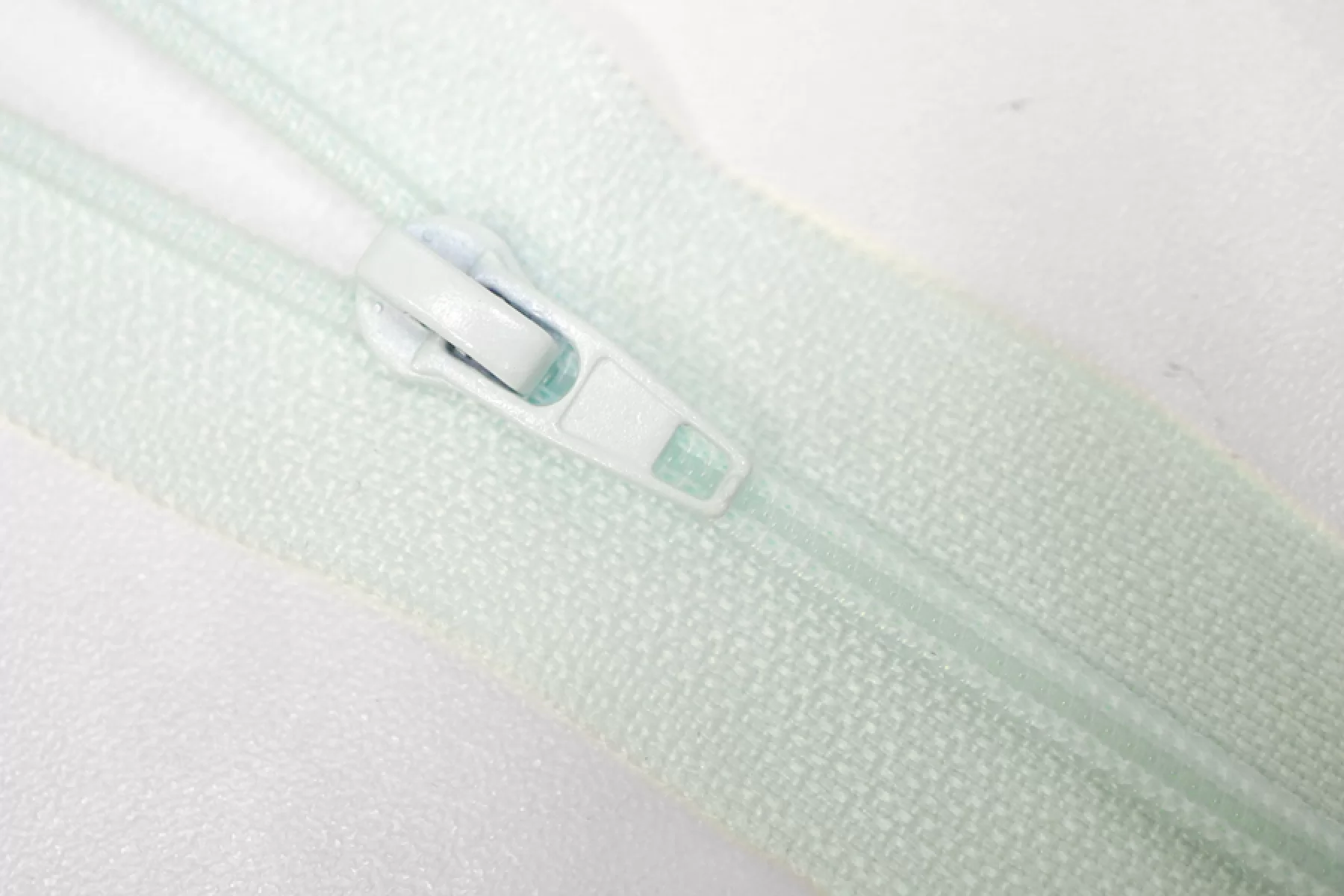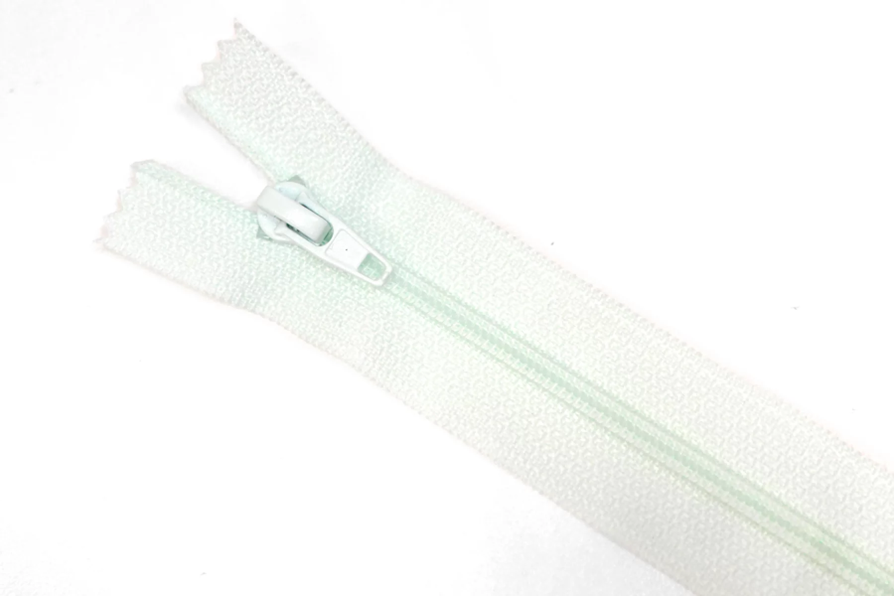 Молния от EDICATE неразъемная, холодного мятного оттенка, Зубцы пластиковые, пуллер и слайдер -металлический. Длина 16 см. Ширина 2,5 м. Ширина зубцов 4 мм.