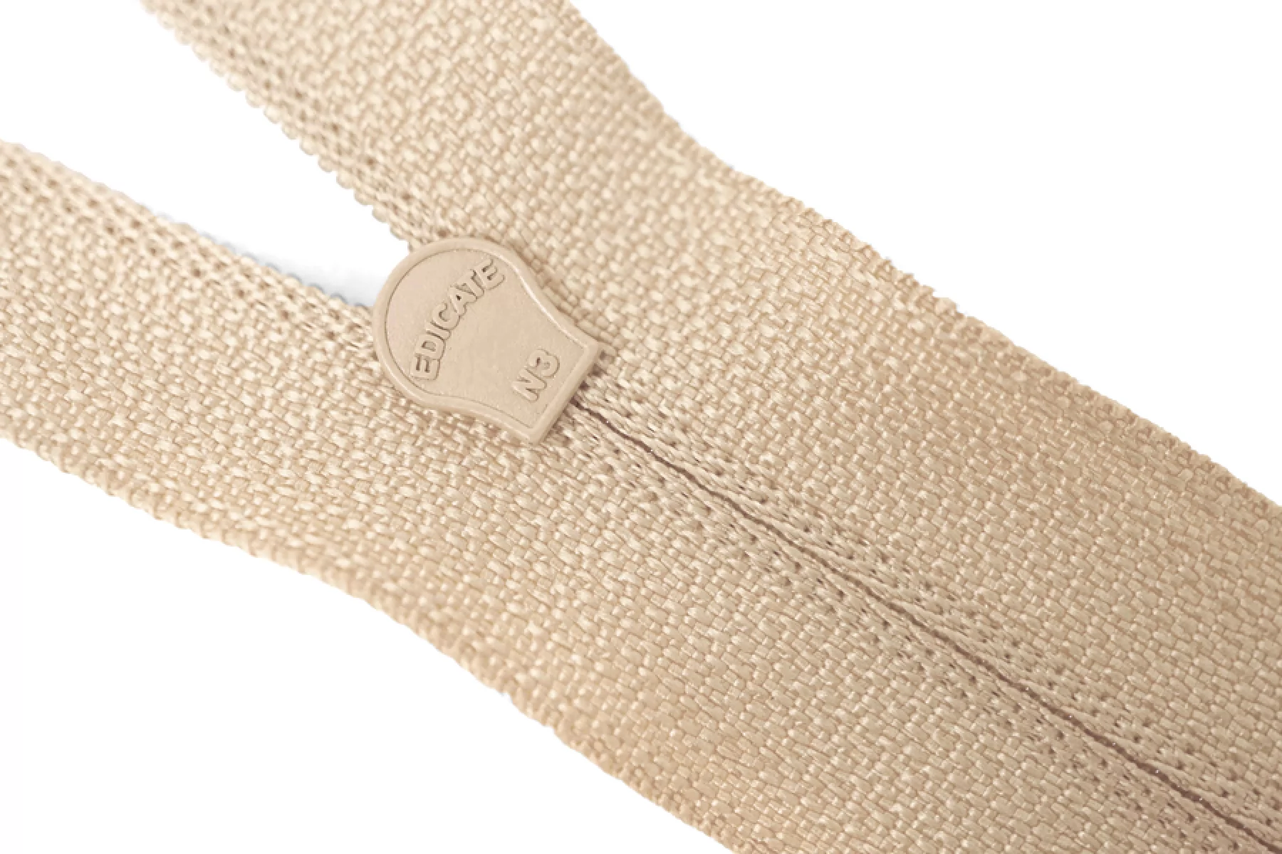 Молния от EDICATE неразъемная, бежевого оттенка. Зубцы пластиковые, пуллер и слайдер -металлический. Длина 18 см. Ширина 2,5 м. Ширина зубцов 4 мм.