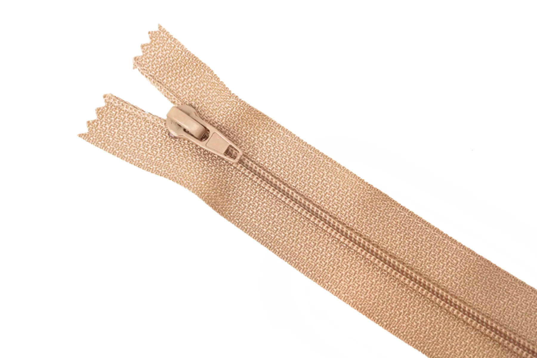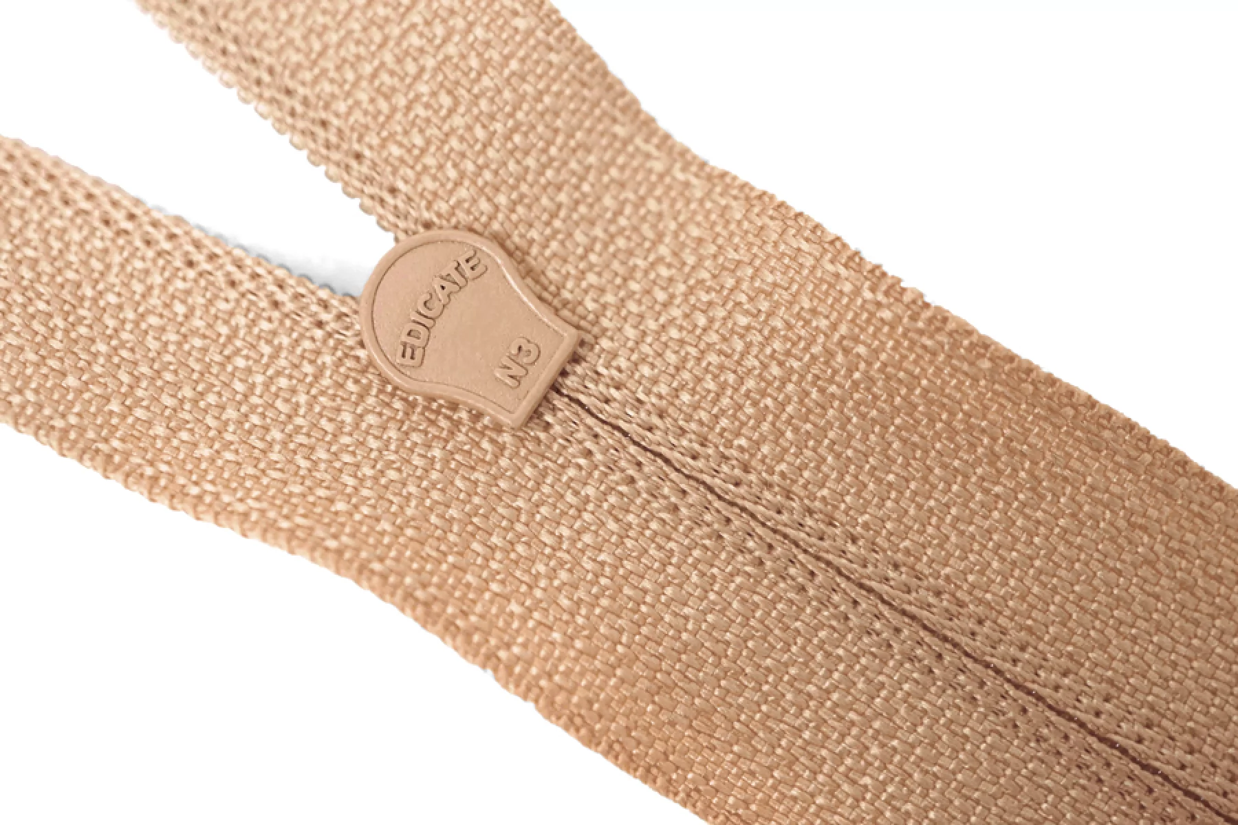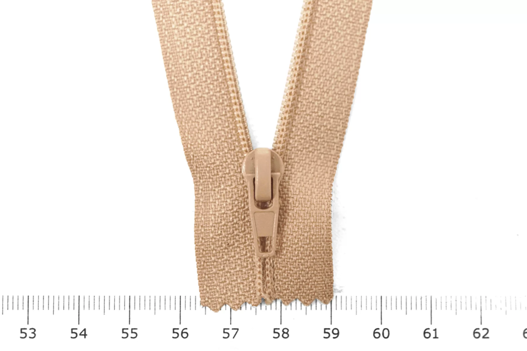 Молния от EDICATE неразъемная, оттенка кофе с молоком. Зубцы пластиковые, пуллер и слайдер -металлический. Длина 18 см. Ширина 2,5 м. Ширина зубцов 4 мм.
