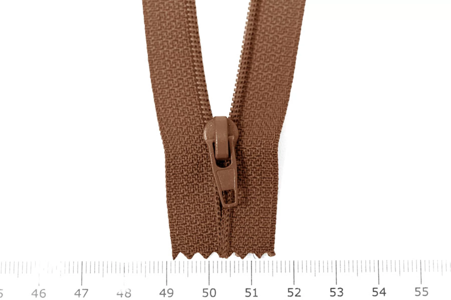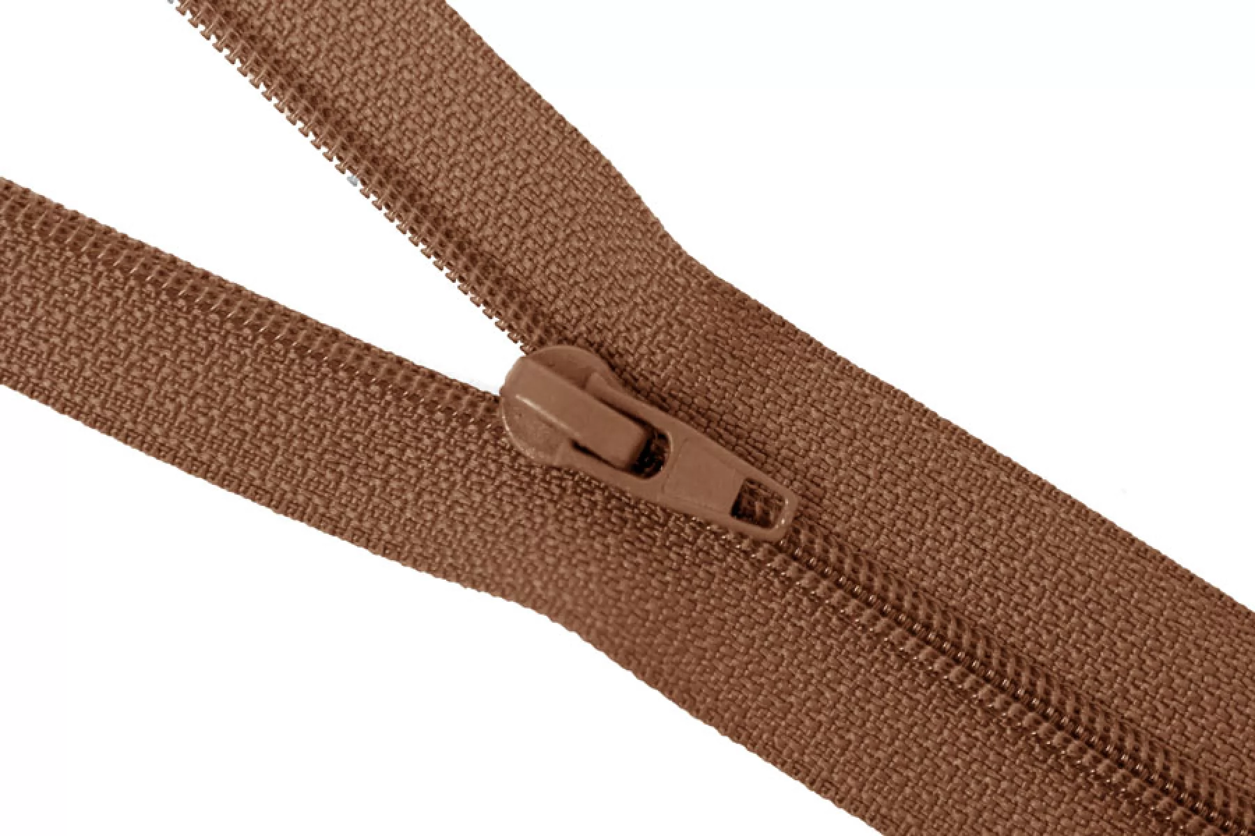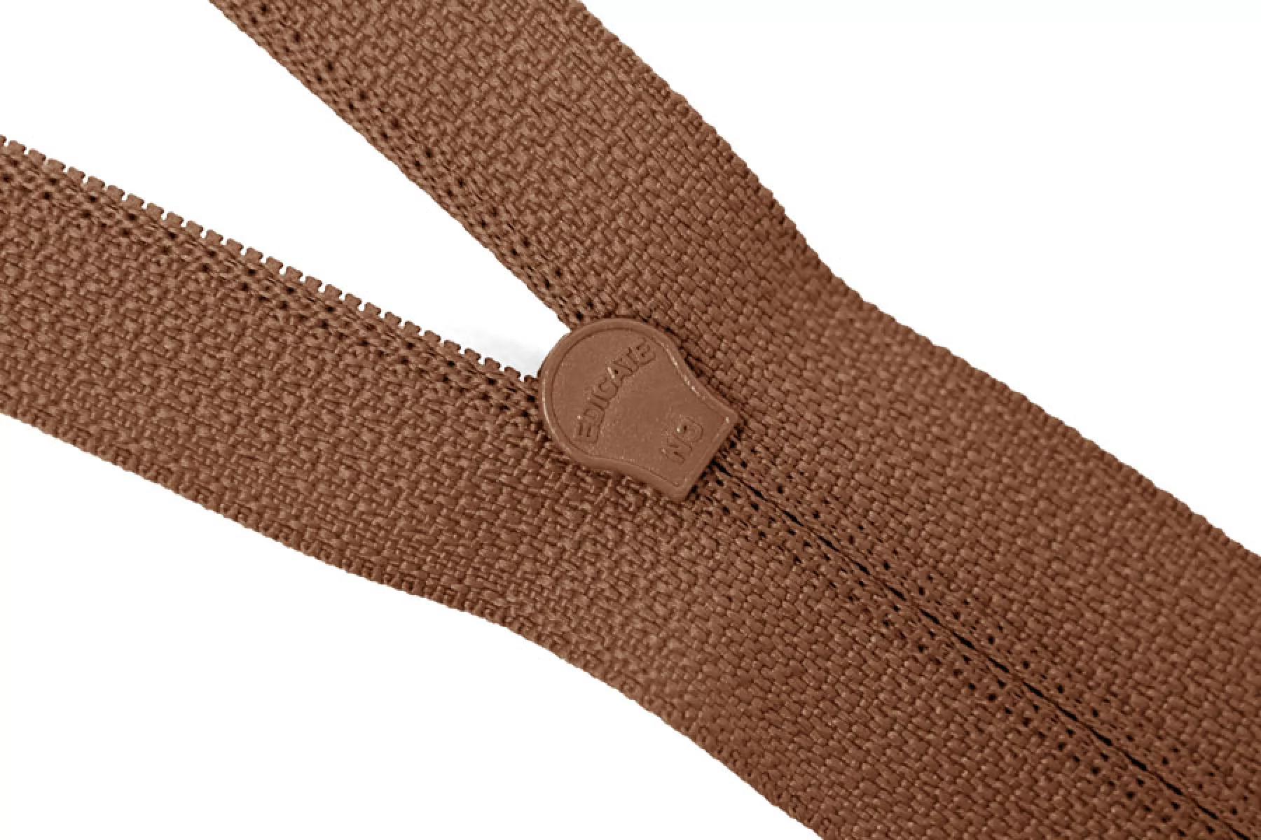 Молния от EDICATE неразъемная , коричневого цвета, Зубцы пластиковые, пуллер и слайдер -металлический. Длина 16 см. Ширина 2,5 см. Ширина зубцов 4 мм.