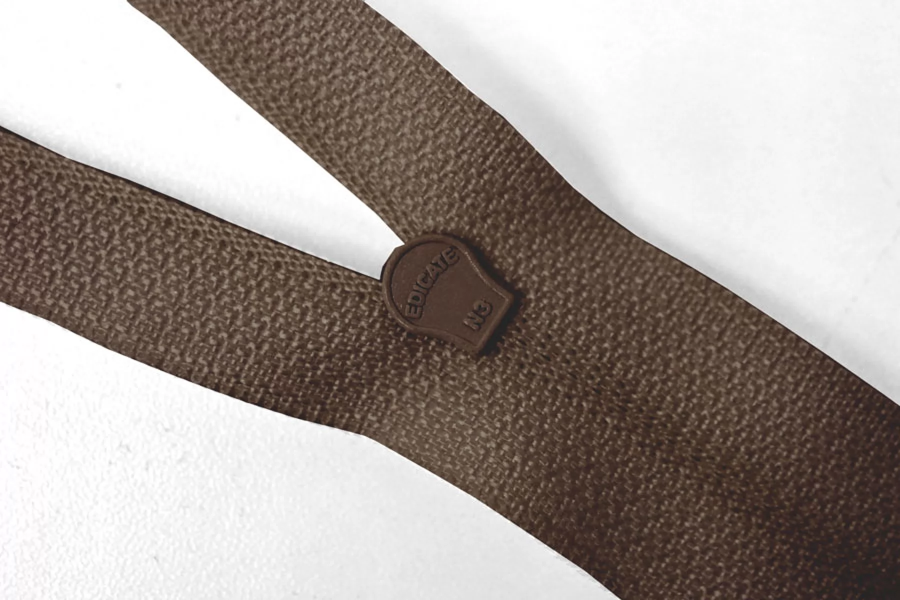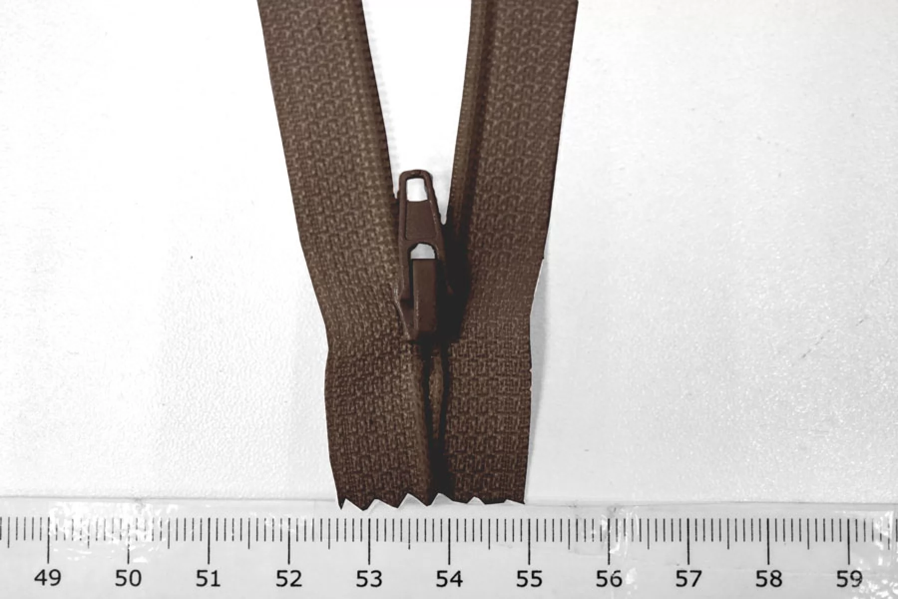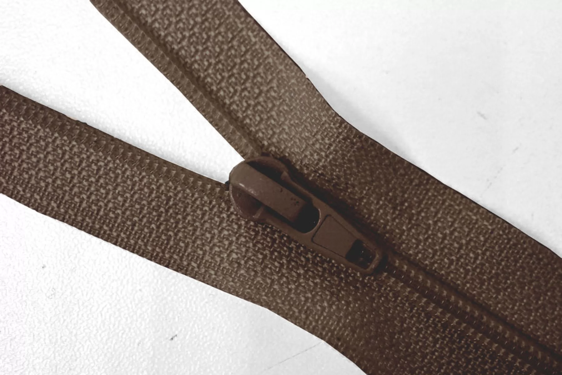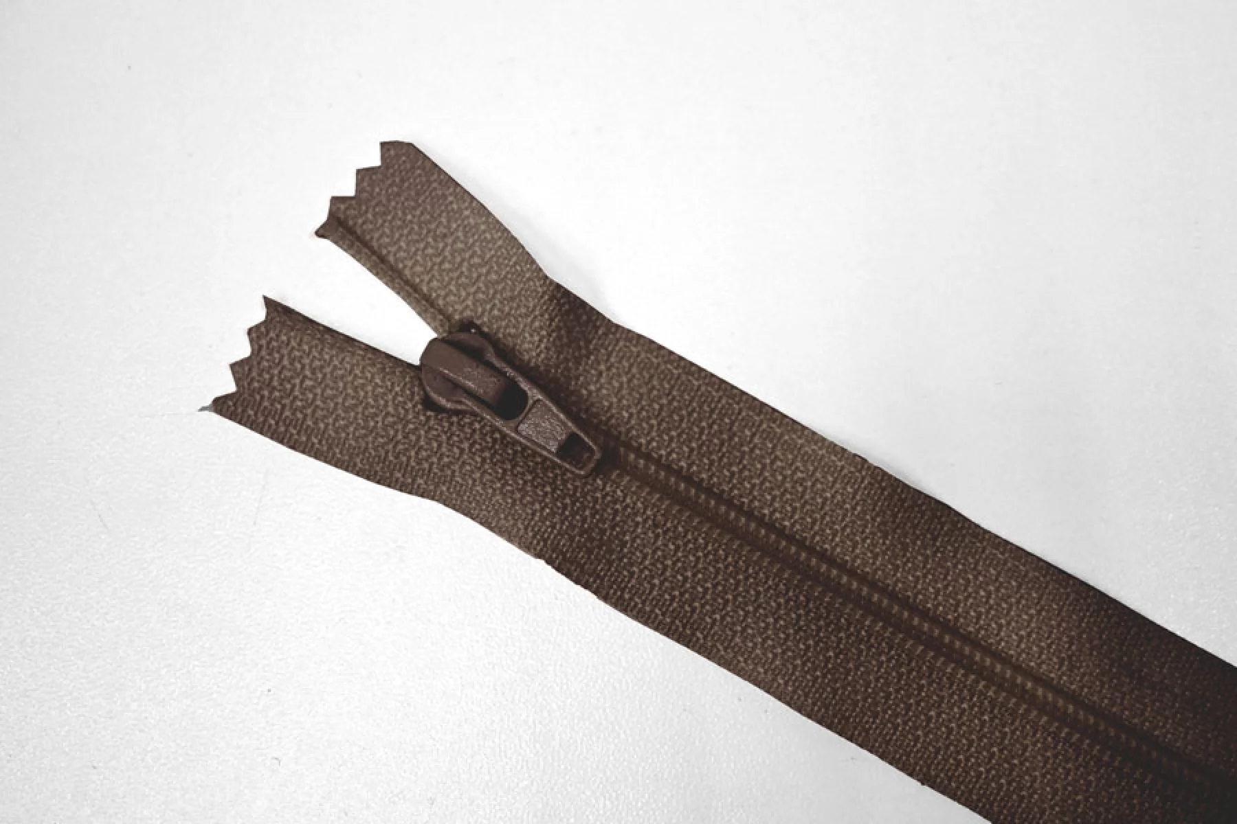 Молния от EDICATE неразъемная , коричневого цвета , Зубцы пластиковые, пуллер и слайдер -металлический. Длина 16 см. Ширина 2,5 м. Ширина зубцов 4 мм.