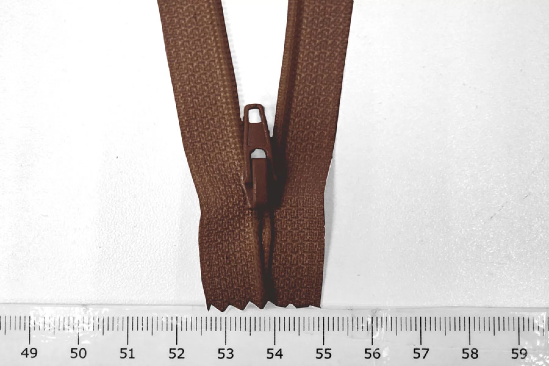 Молния от EDICATE неразъемная , коричневого цвета , Зубцы пластиковые, пуллер и слайдер -металлический. Длина 18 см. Ширина 2,5 м. Ширина зубцов 4 мм.