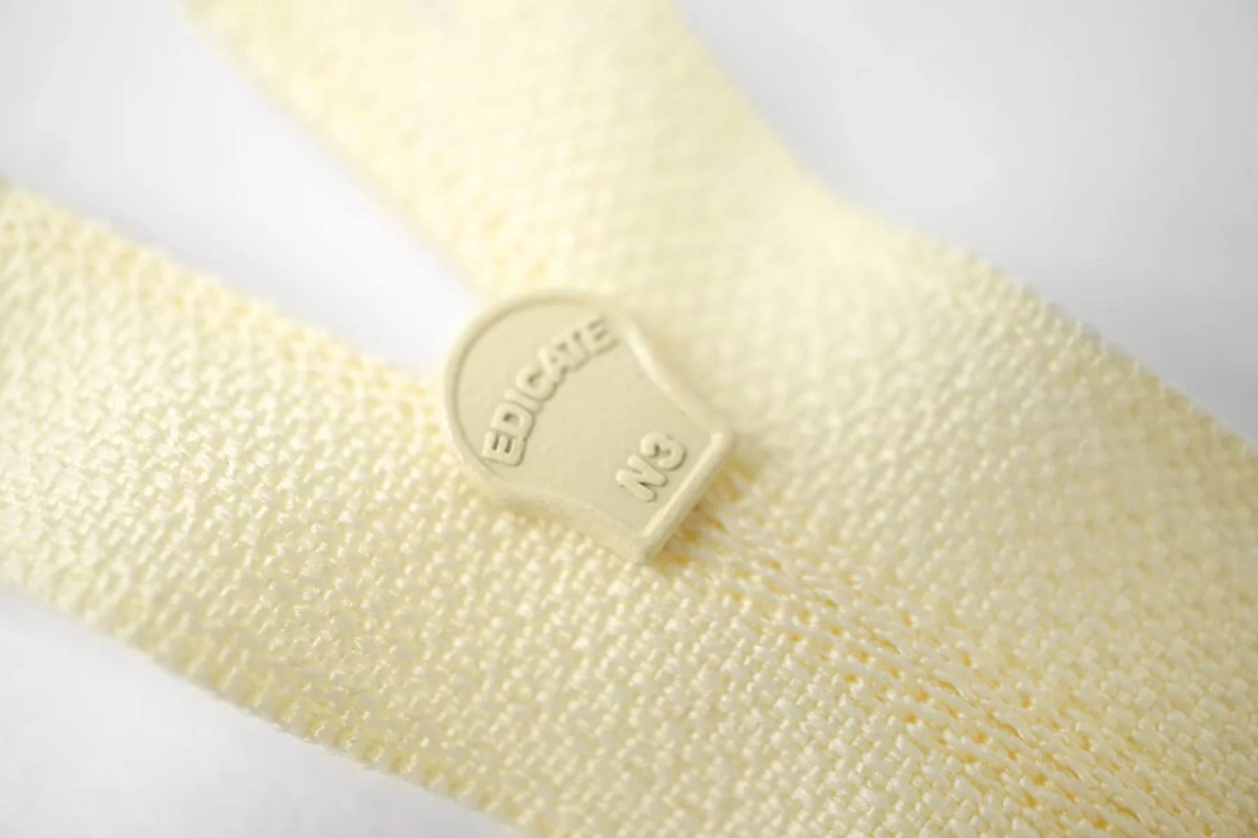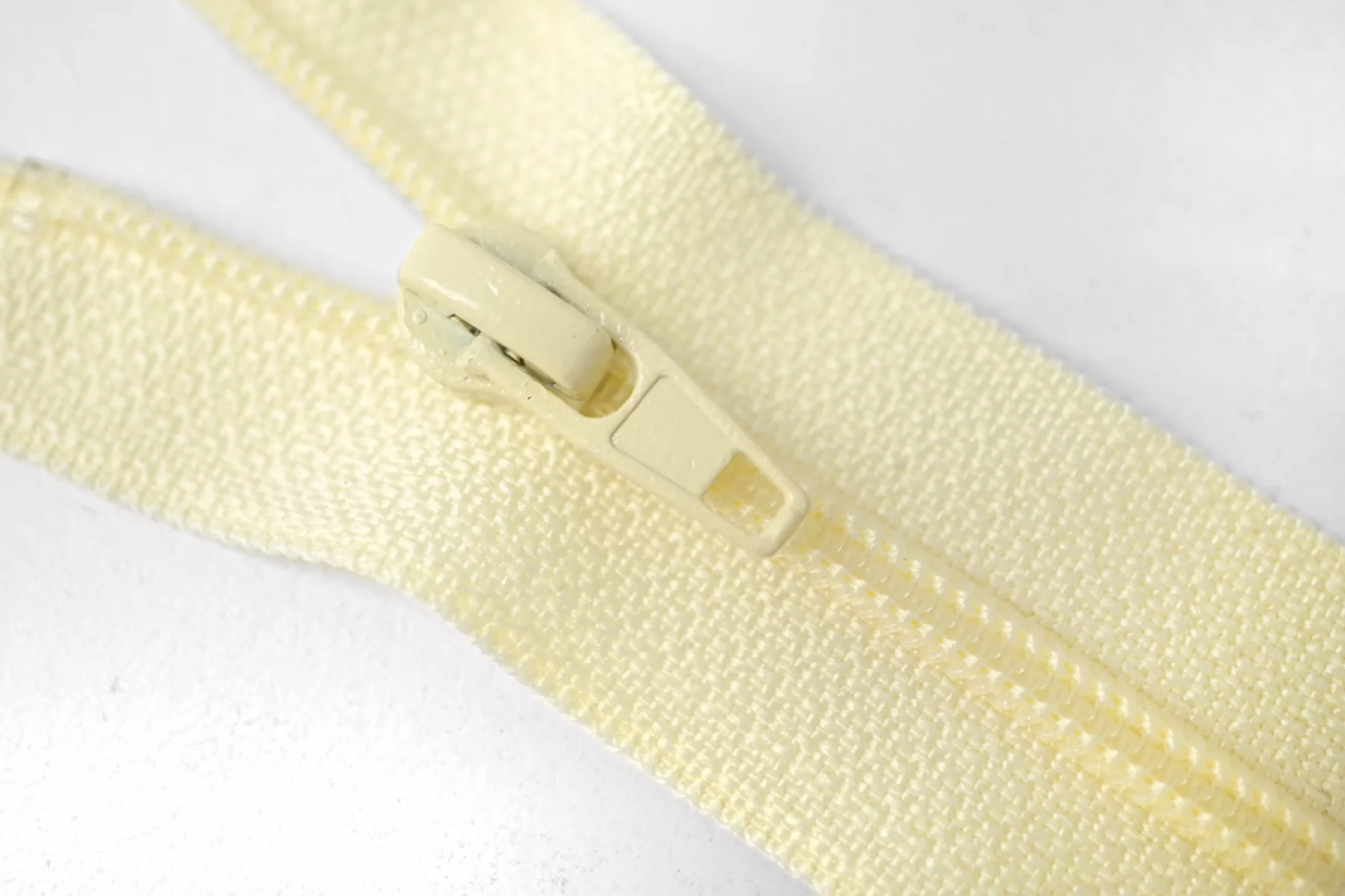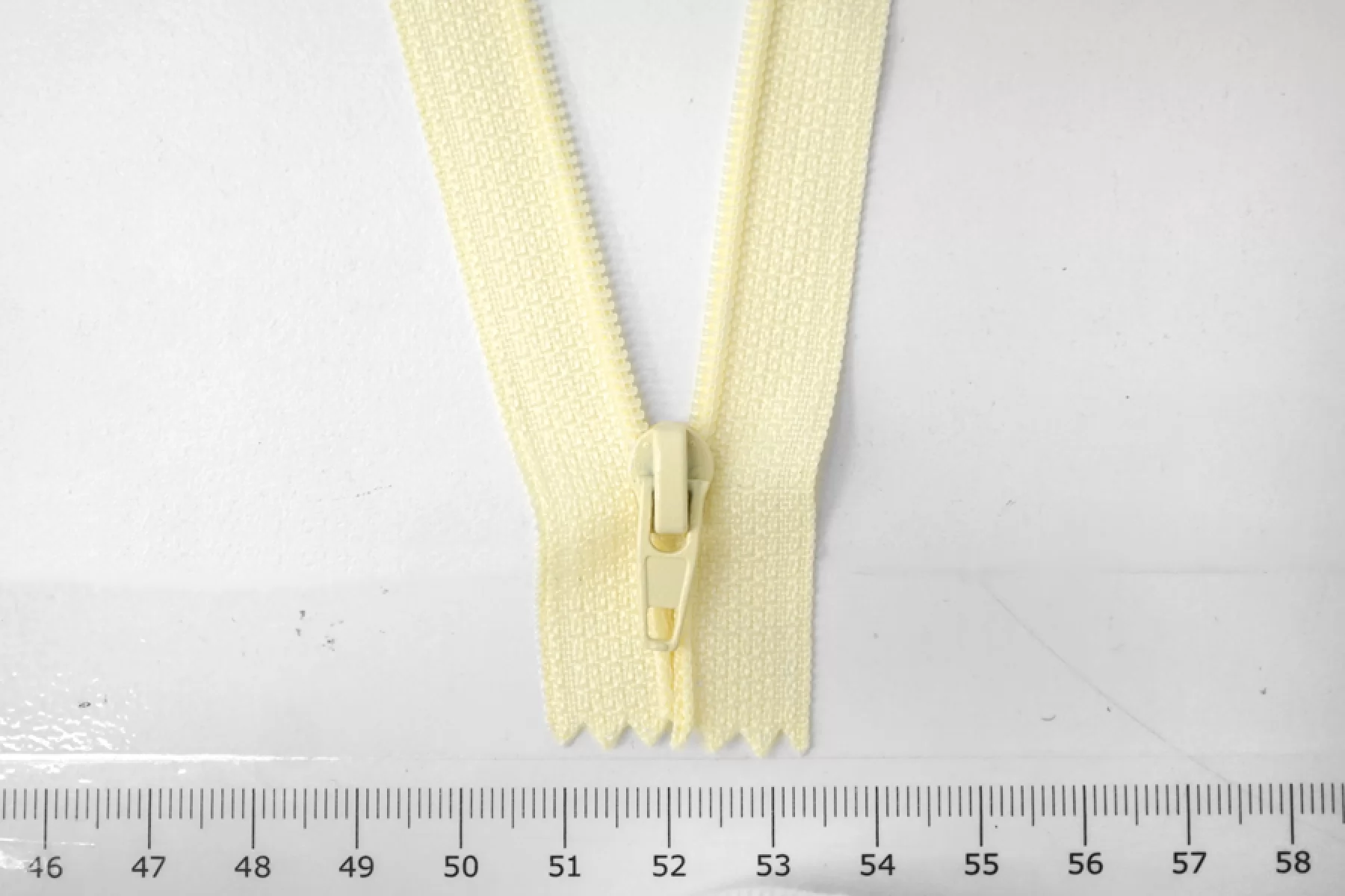 Молния от EDICATE неразъемная, нежно-желтого цвета, цвет зубцов и пуллера - нежно-желтый. Зубцы пластиковые, пуллер -металлический. Длина 16 см. Ширина 2,5 м. Ширина зубцов 4 мм.