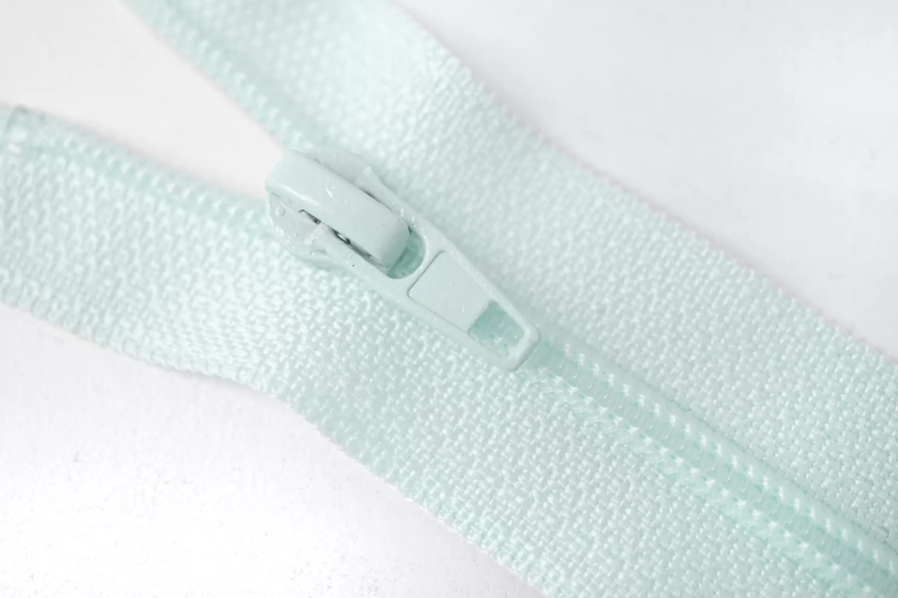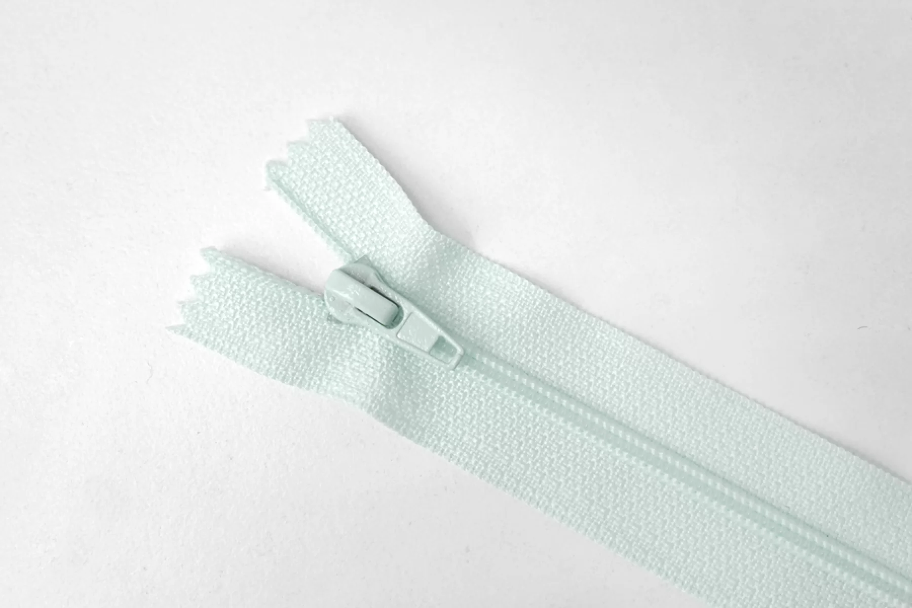 Молния от EDICATE неразъемная, нежного ментолового оттенка, цвет зубцов и пуллера - нежный ментол. Зубцы пластиковые, пуллер -металлический. Длина 16 см. Ширина 2,5 м. Ширина зубцов 4 мм.