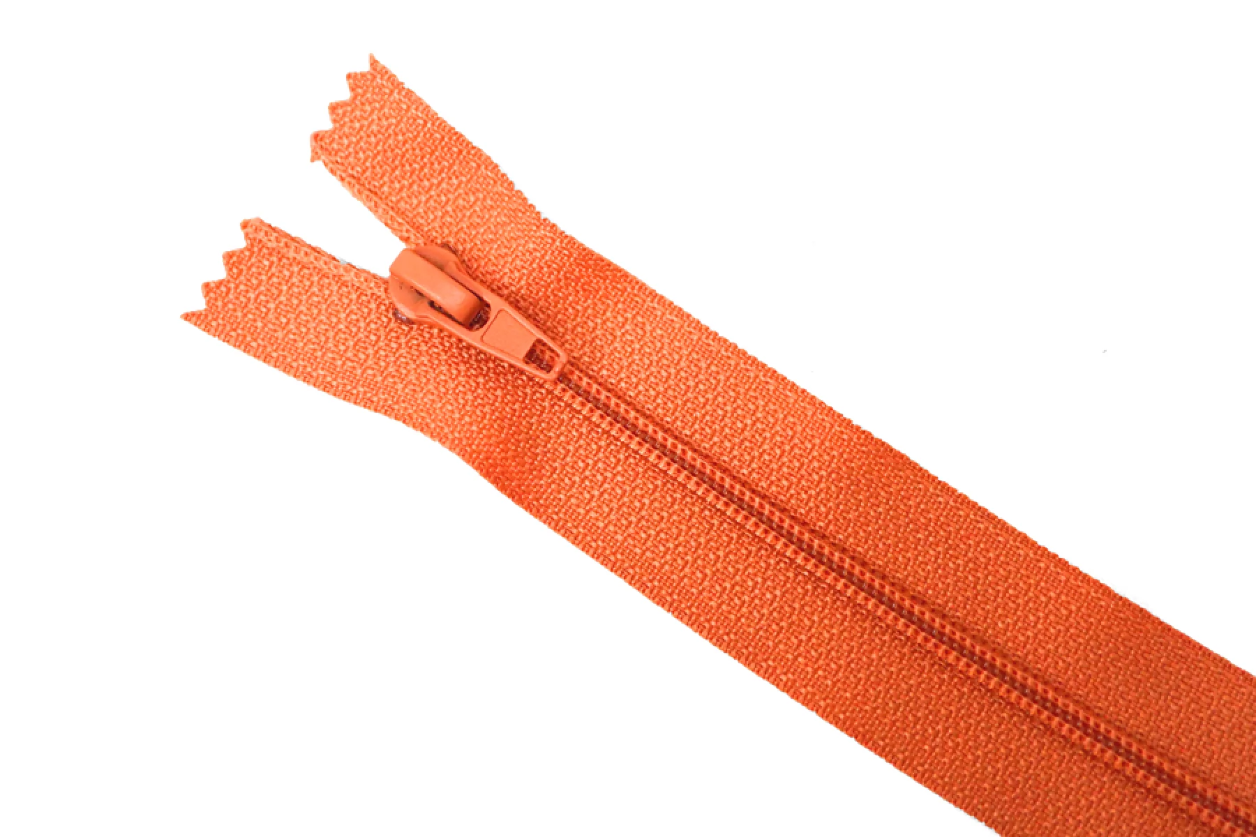 Молния от EDICATE неразъемная, оранжевого цвета. Зубцы пластиковые, пуллер и слайдер -металлический. Длина 18 см. Ширина 2,5 м. Ширина зубцов 4 мм.