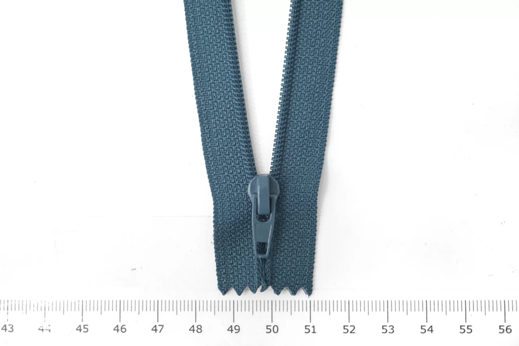 Молния от EDICATE неразъемная, в оттенке петроль, цвет зубцов и пуллера - петроль. Зубцы пластиковые, пуллер -металлический. Длина 14 см. Ширина 2,5 м. Ширина зубцов 4 мм.