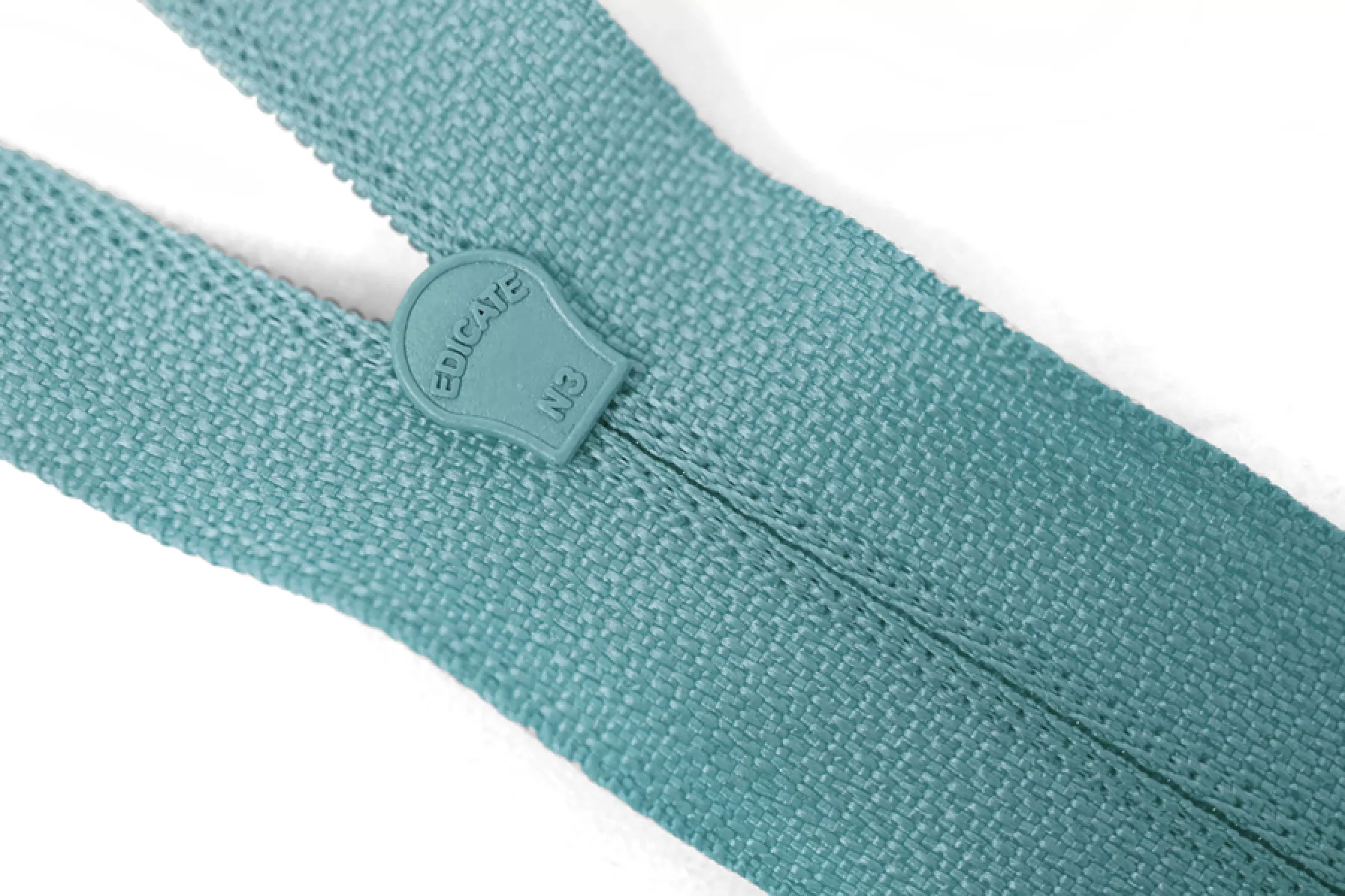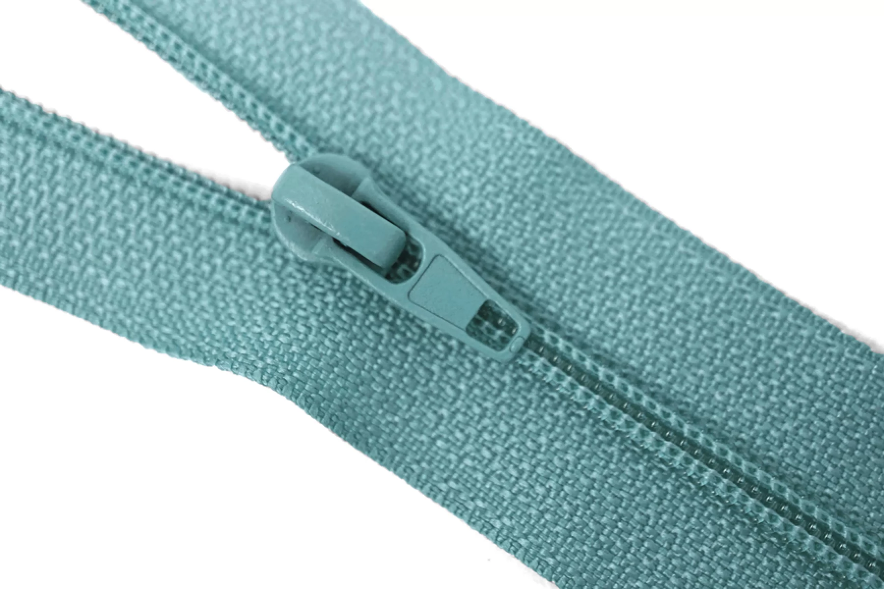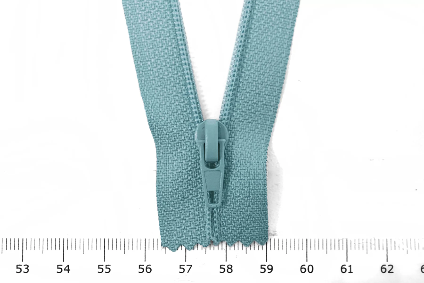 Молния от EDICATE неразъемная, припыленно-бирюзового оттенка, Зубцы пластиковые, пуллер и слайдер -металлический. Длина 18 см. Ширина 2,5 м. Ширина зубцов 4 мм.