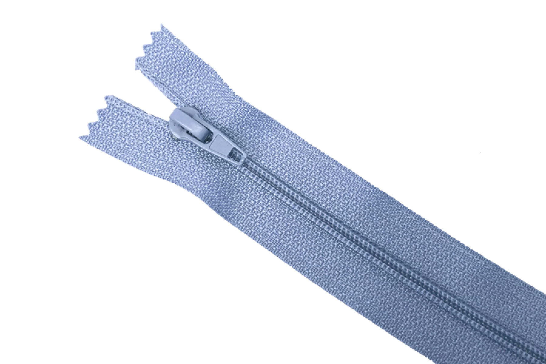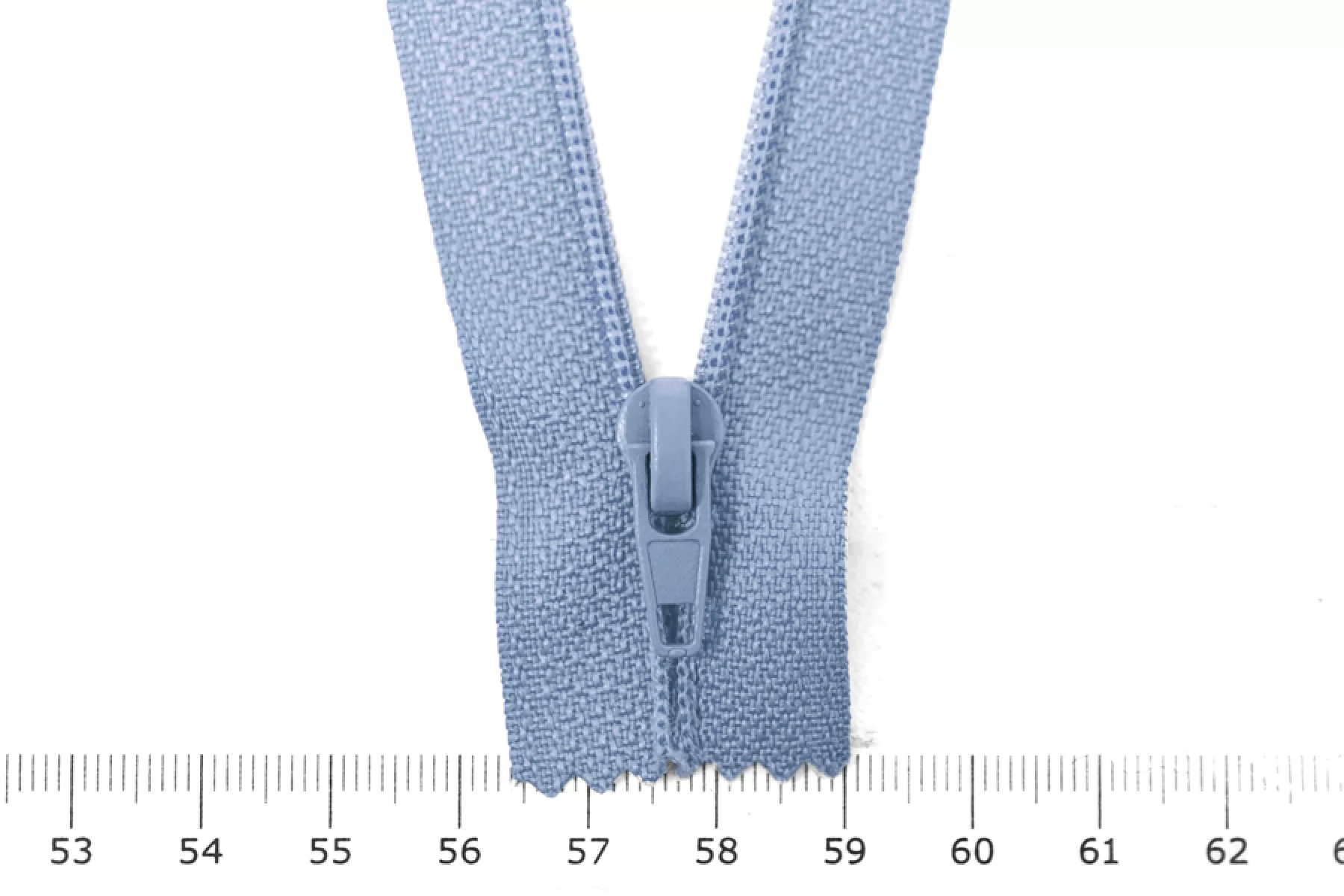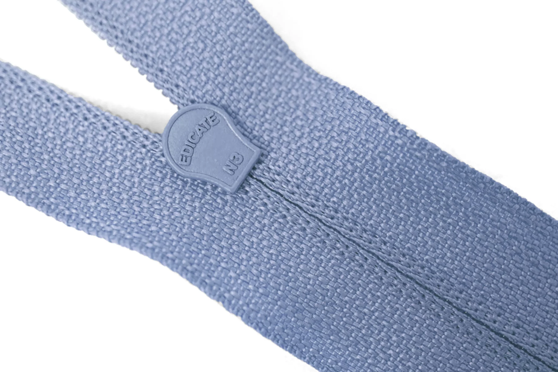 Молния от EDICATE неразъемная, в припыленно-голубом оттенке, Зубцы пластиковые, пуллер и слайдер -металлический. Длина 18 см. Ширина 2,5 м. Ширина зубцов 4 мм.