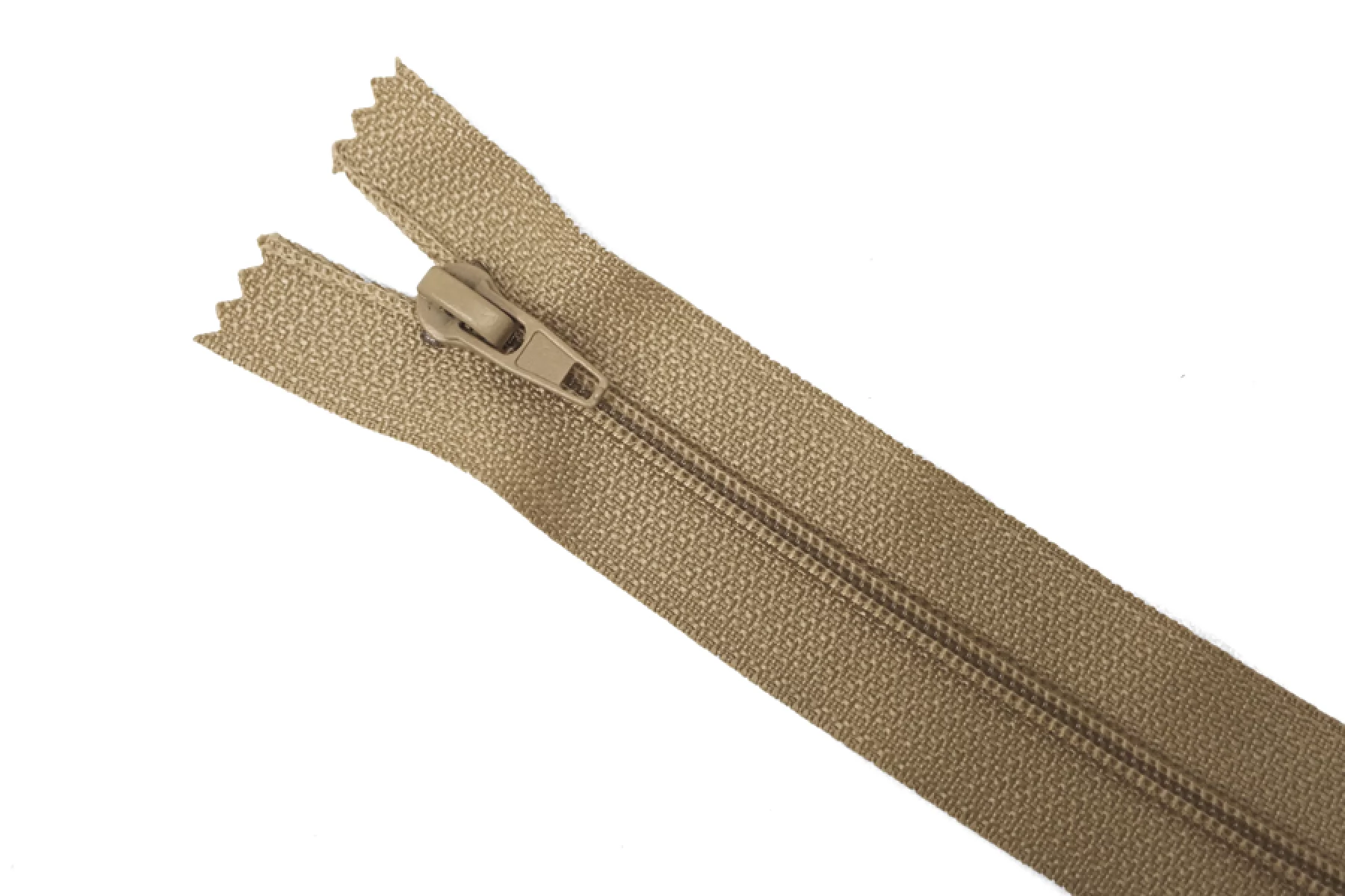 Молния от EDICATE неразъемная, припыленно-коричневого оттенка. Зубцы пластиковые, пуллер и слайдер -металлический. Длина 16 см. Ширина 2,5 м. Ширина зубцов 4 мм.