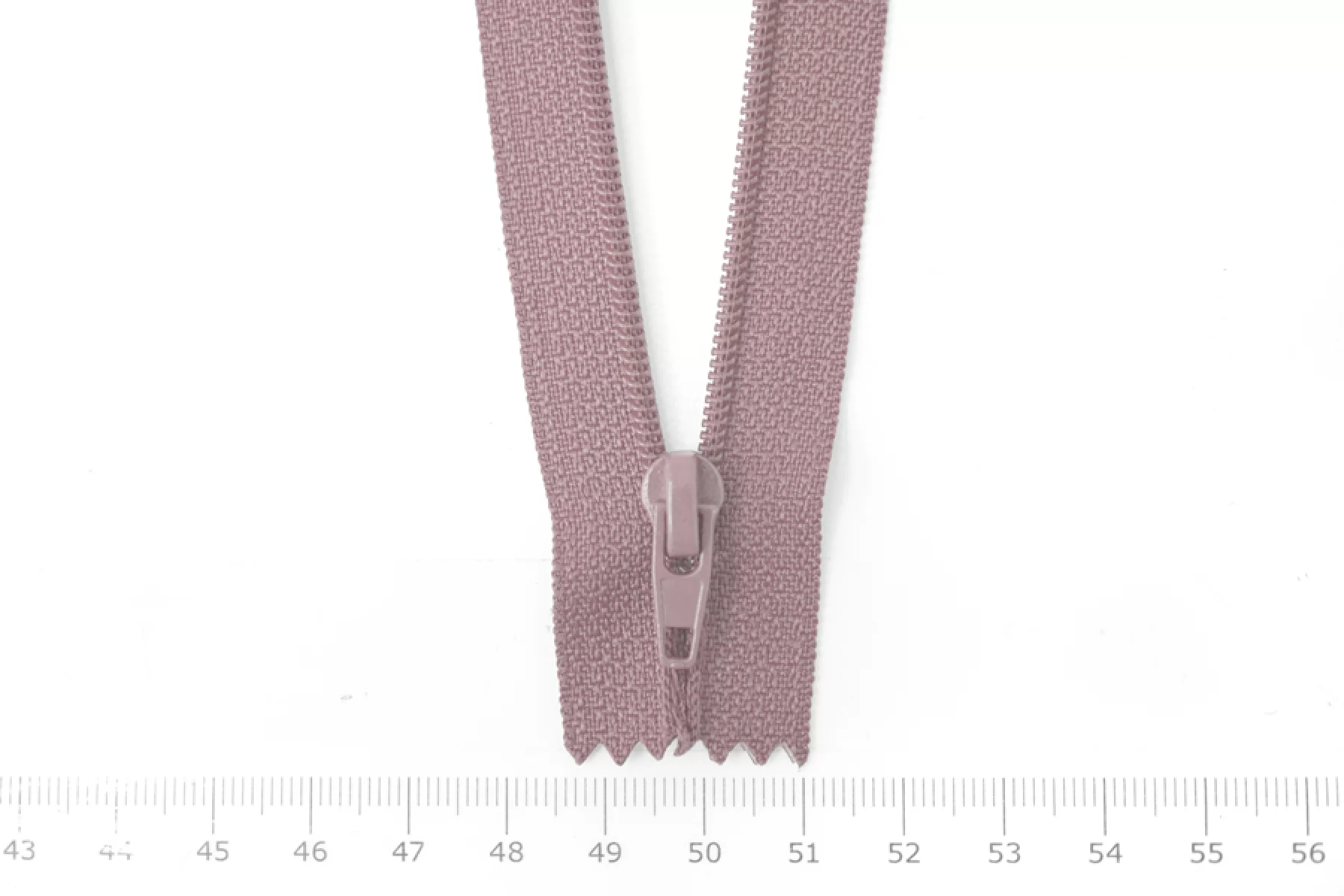 Молния от EDICATE неразъемная, в оттенке пыльной розы, цвет зубцов и пуллера пыльно-розовый. Зубцы пластиковые, пуллер -металлический. Длина 16 см. Ширина 2,5 м. Ширина зубцов 4 мм.