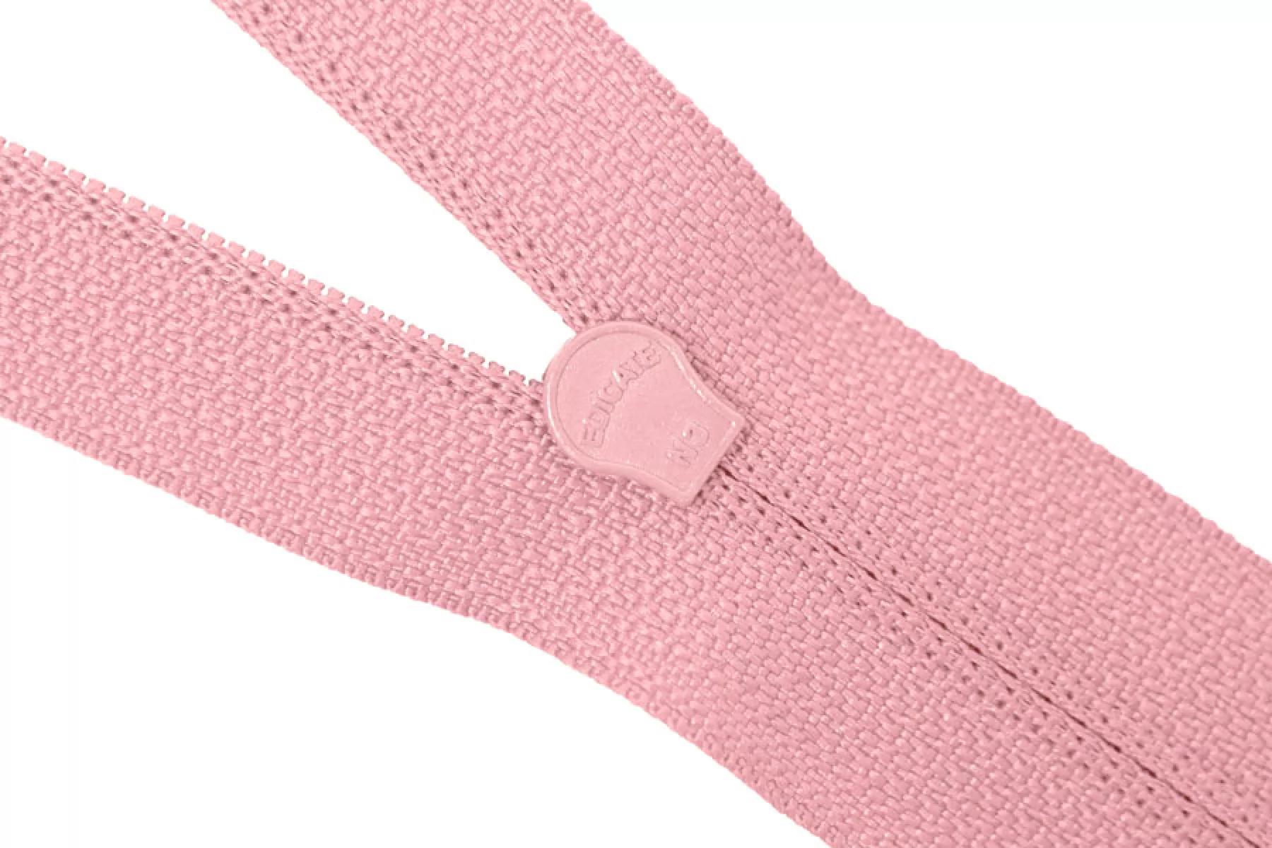 Молния от EDICATE неразъемная ,розового цвета , Зубцы пластиковые, пуллер и слайдер -металлический. Длина 16 см. Ширина 2,5 м. Ширина зубцов 4 мм.