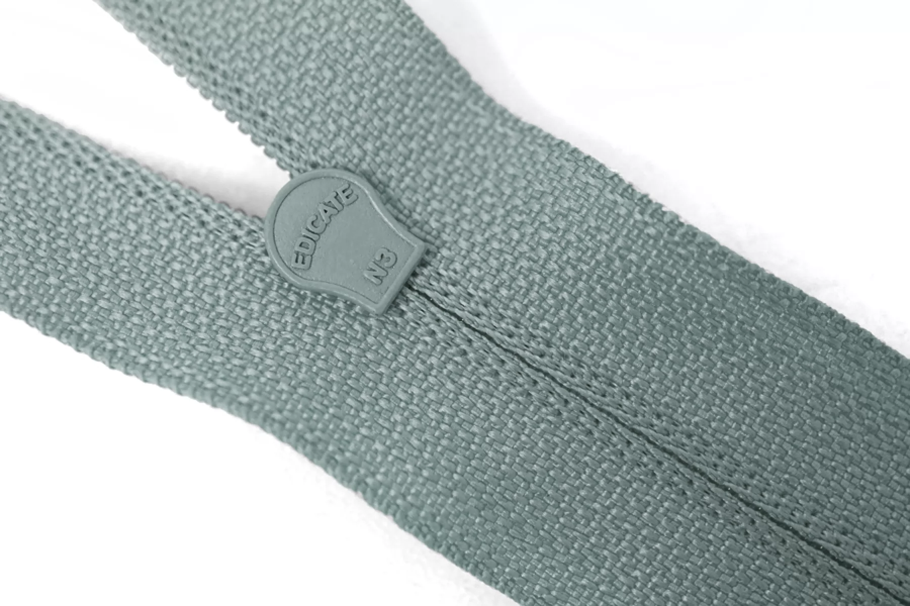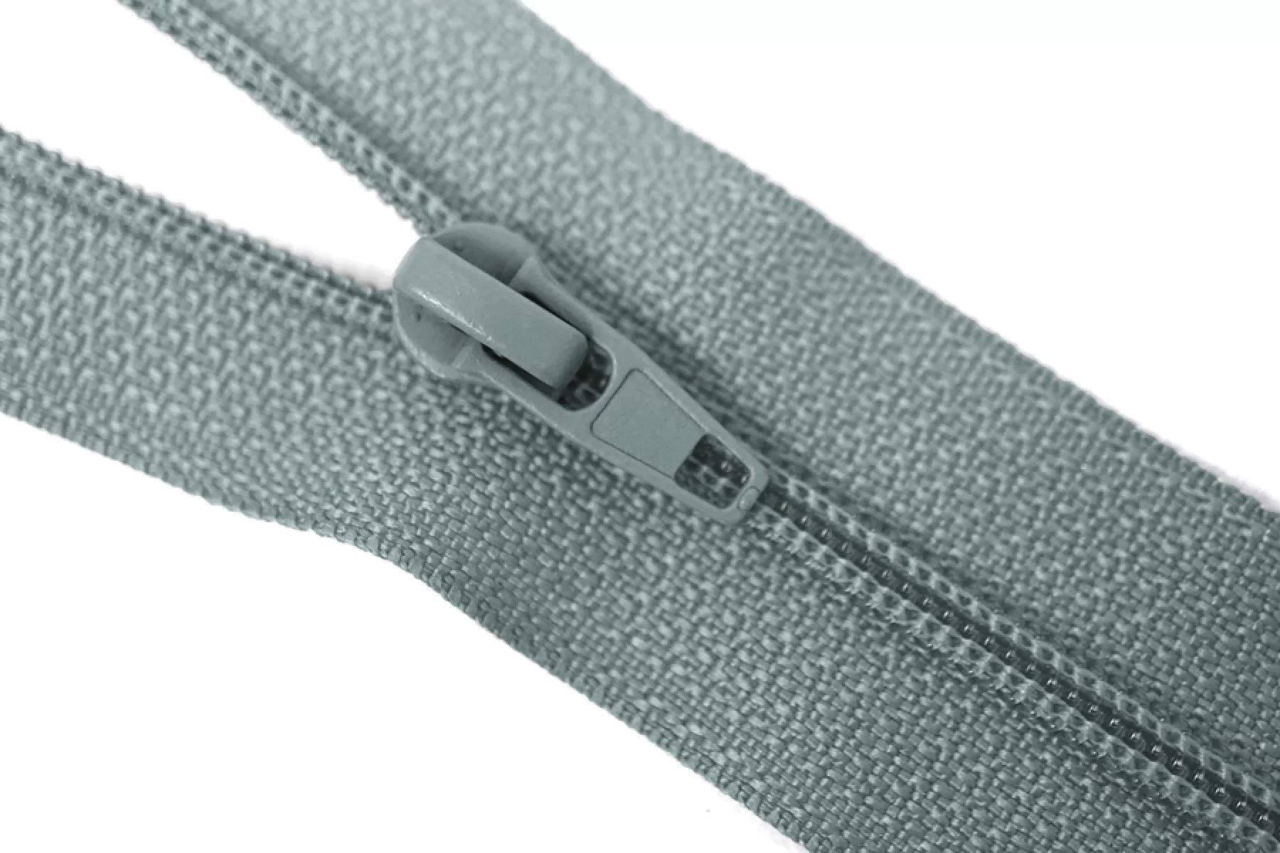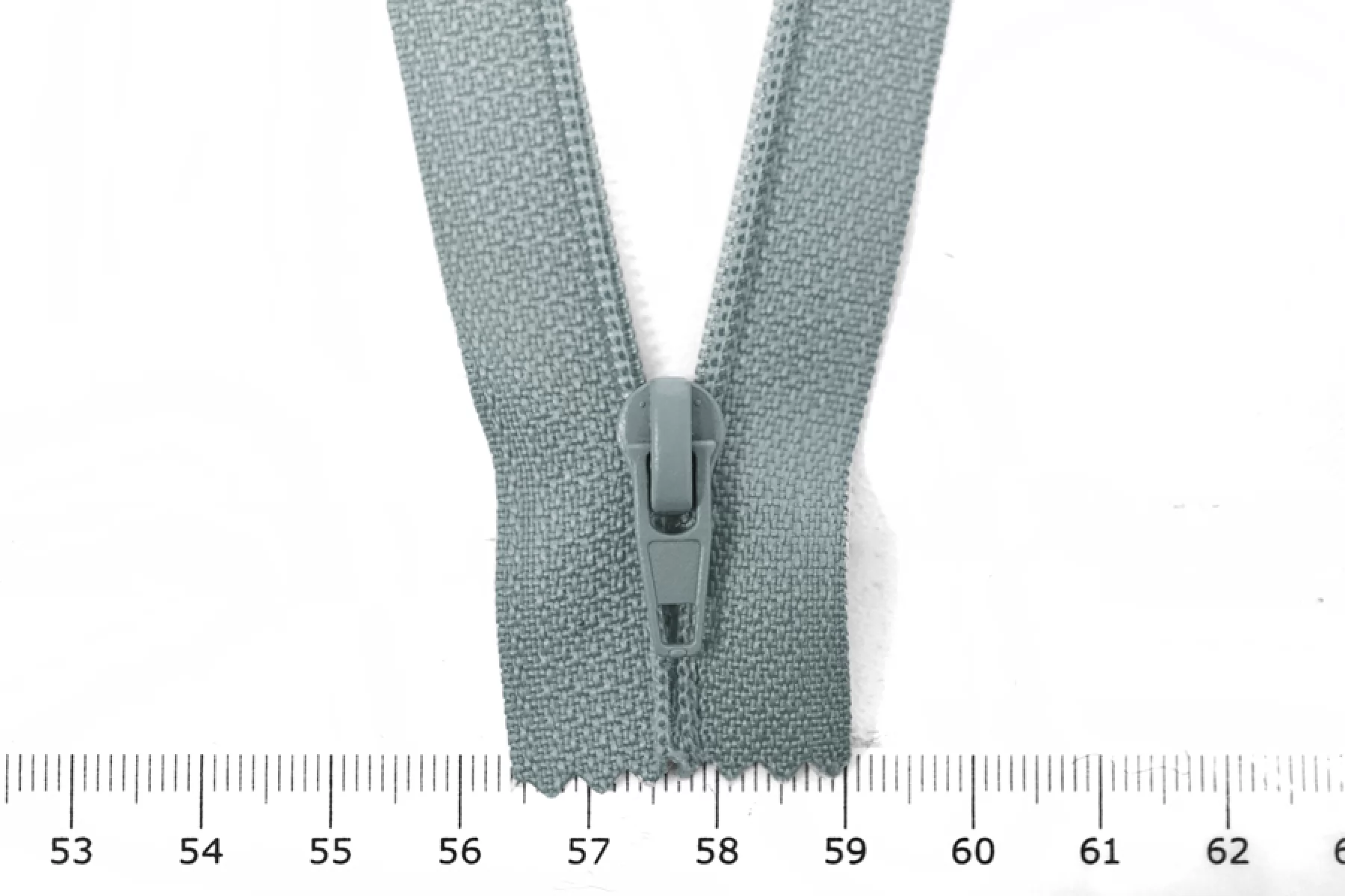 Молния от EDICATE неразъемная, серо-бирюзового цвета, Зубцы пластиковые, пуллер и слайдер -металлический. Длина 14 см. Ширина 2,5 м. Ширина зубцов 4 мм.