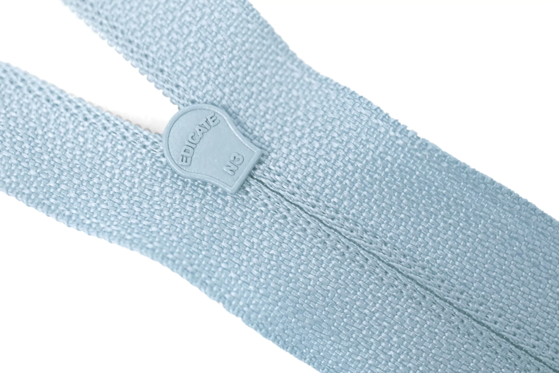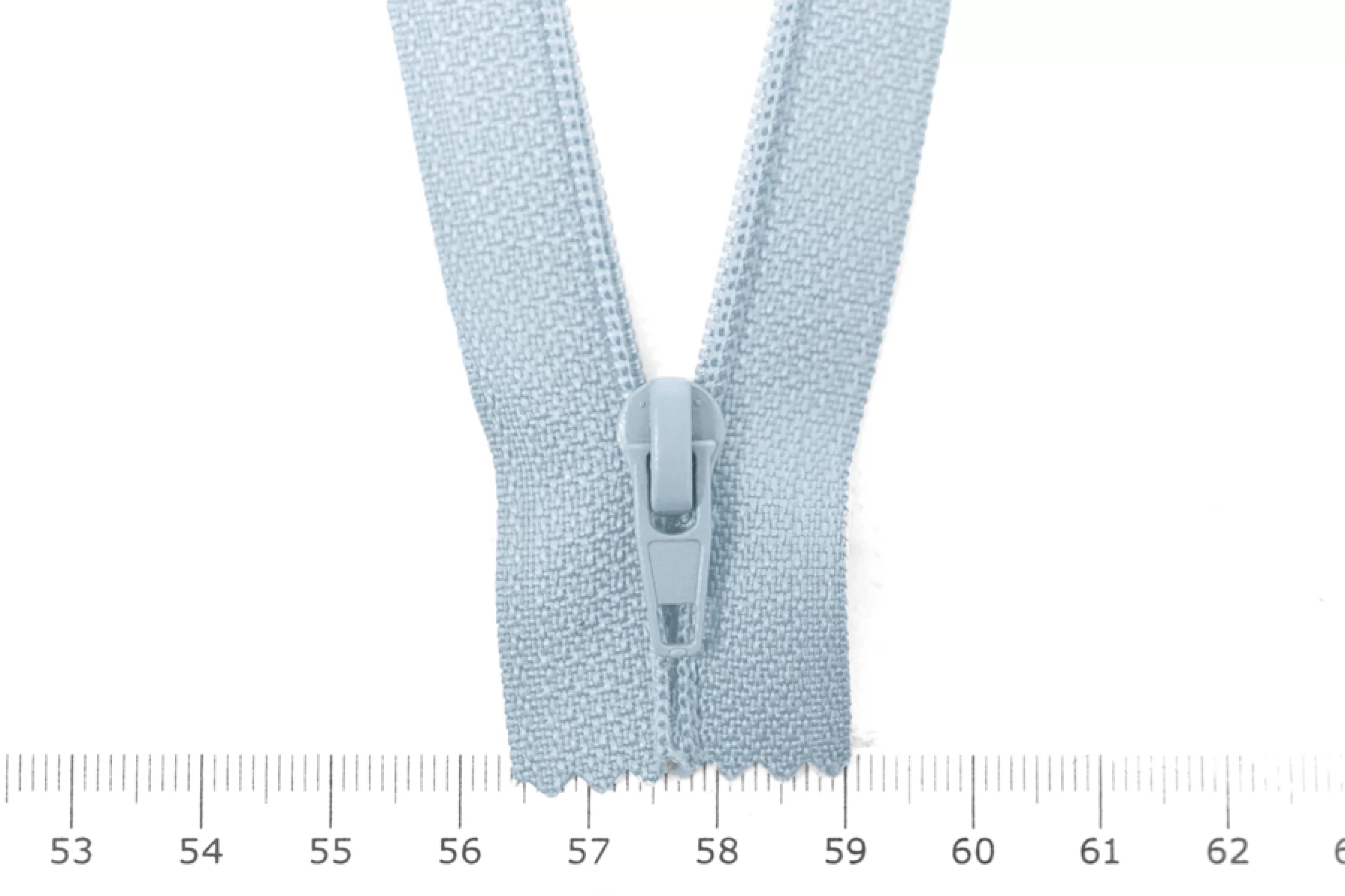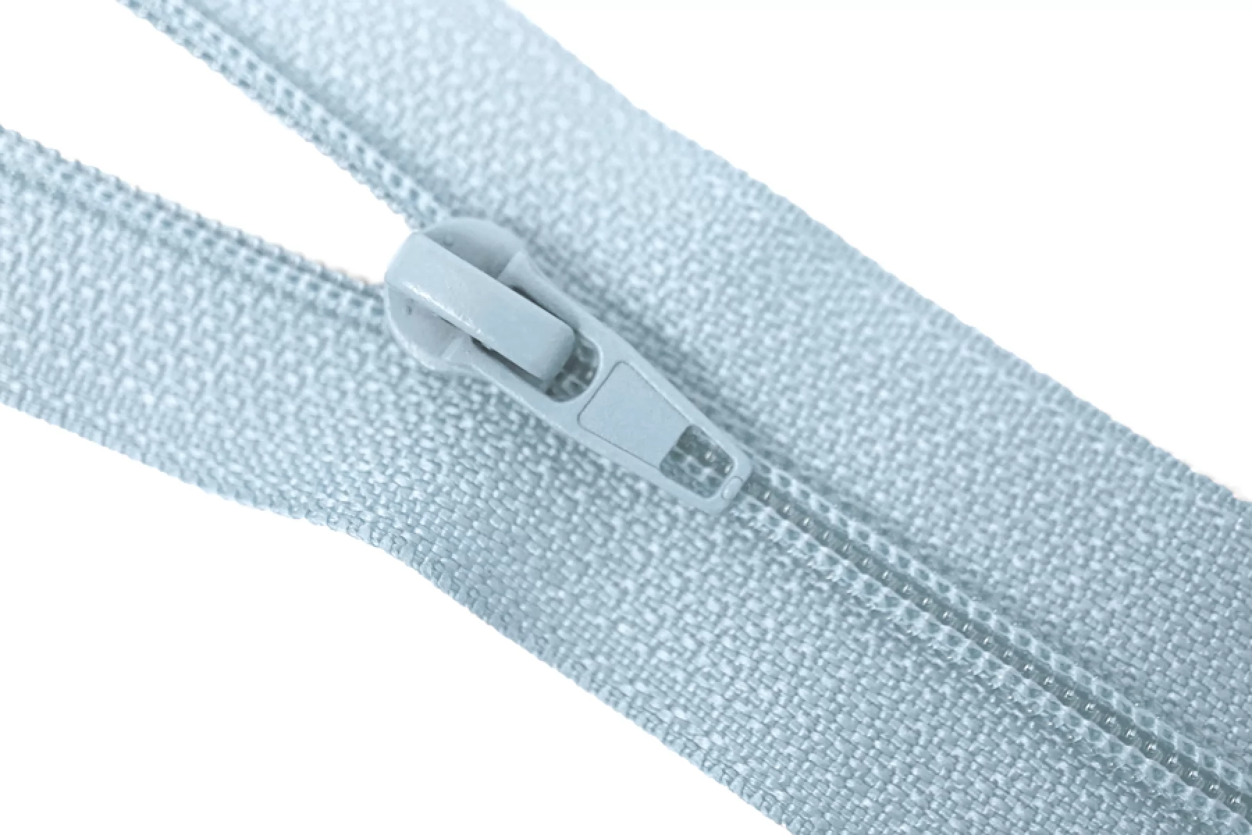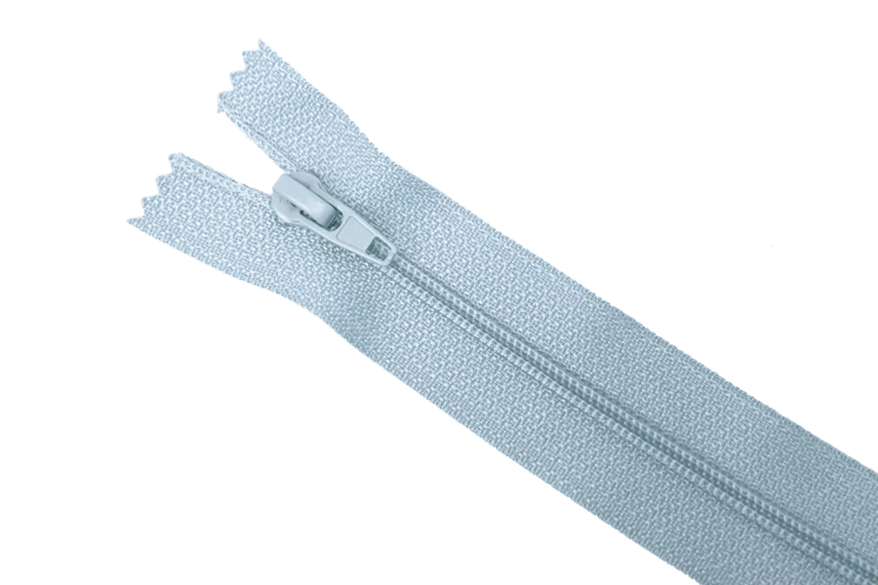 Молния от EDICATE неразъемная, серо-голубого оттенка. Зубцы пластиковые, пуллер и слайдер -металлический. Длина 20 см. Ширина 2,5 м. Ширина зубцов 4 мм.