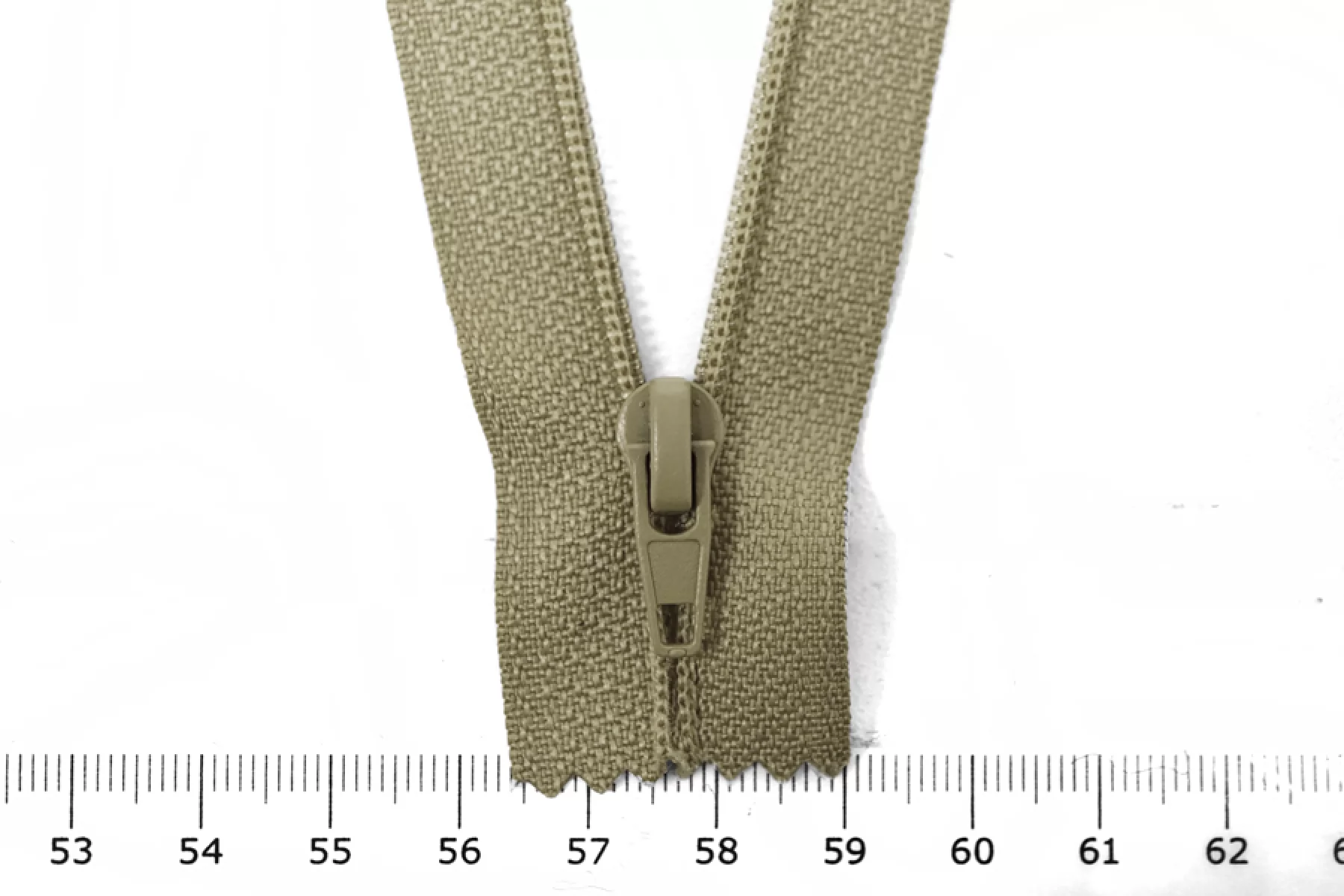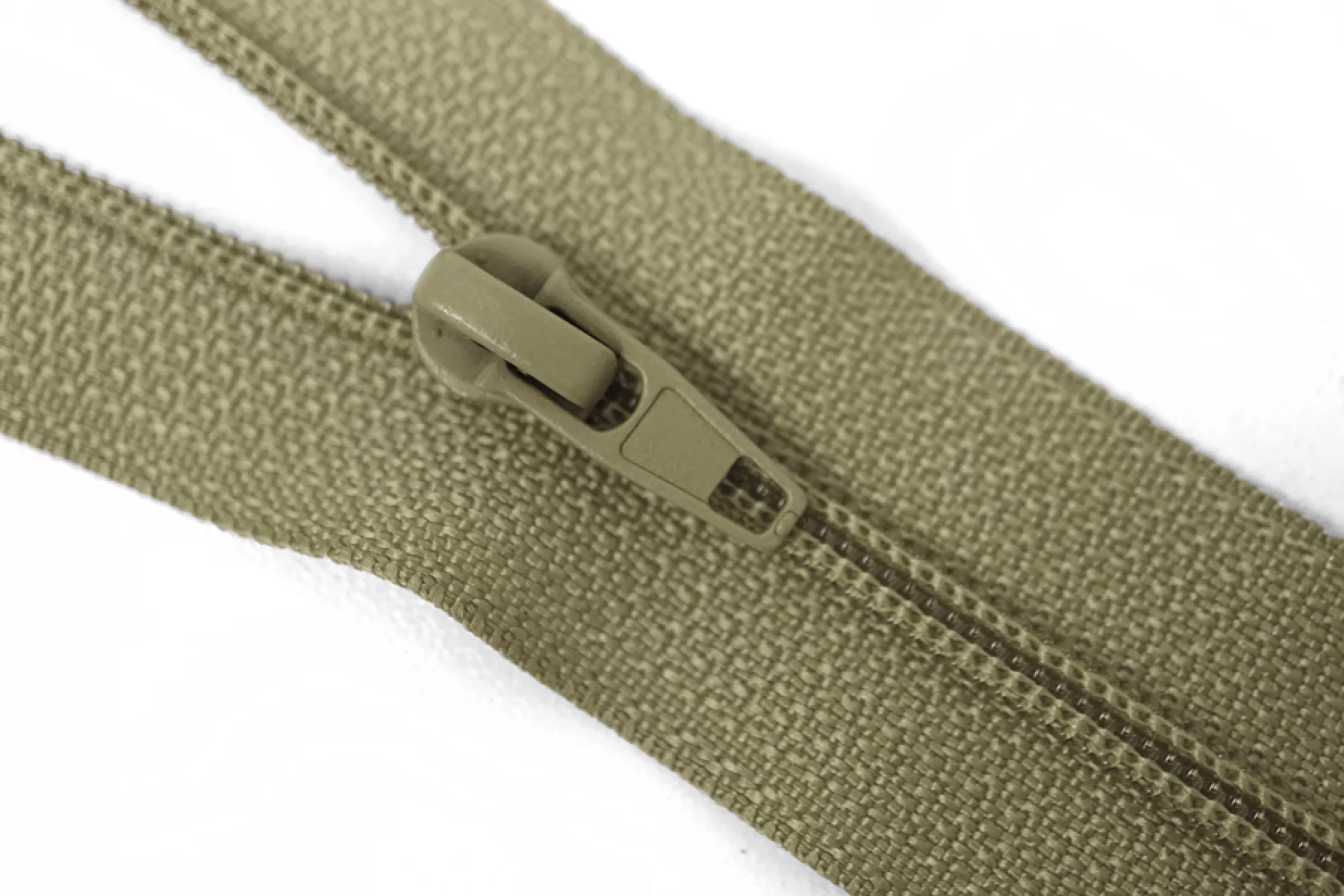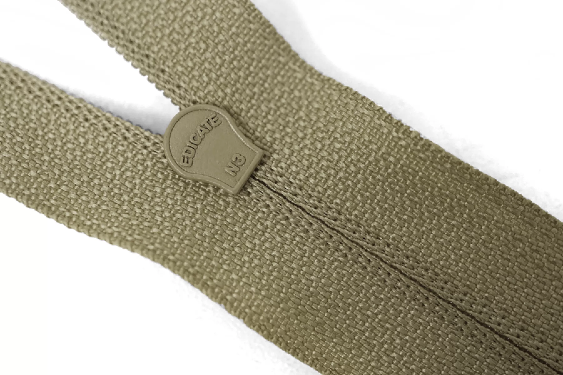Молния от EDICATE неразъемная, серо-зеленого оттенка, Зубцы пластиковые, пуллер и слайдер -металлический. Длина 18 см. Ширина 2,5 м. Ширина зубцов 4 мм.