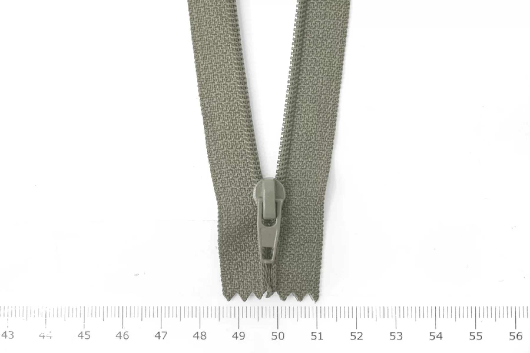 Молния от EDICATE неразъемная, серо-зеленого цвета, цвет зубцов и пуллера - серо-зеленый. Зубцы пластиковые, пуллер -металлический. Длина 14 см. Ширина 2,5 м. Ширина зубцов 4 мм.