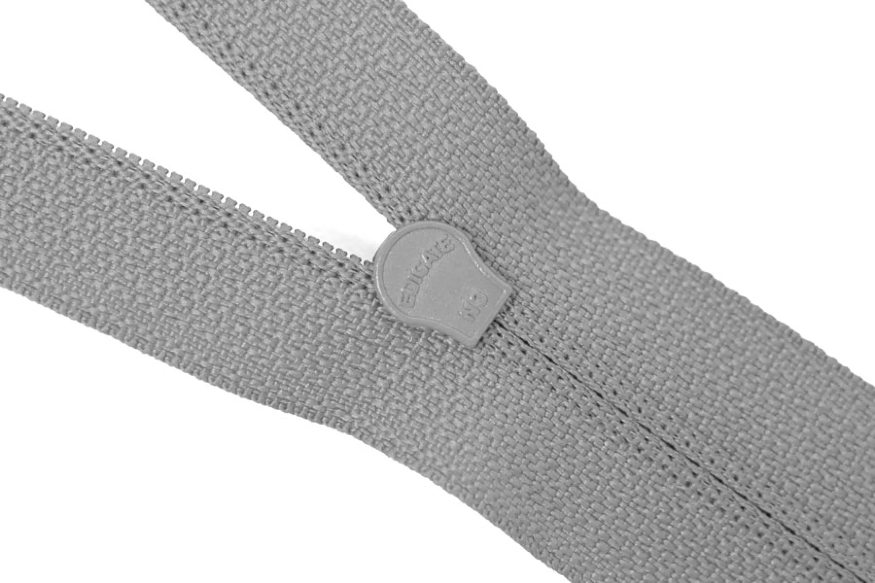 Молния от EDICATE неразъемная , серого цвета, Зубцы пластиковые, пуллер и слайдер -металлический. Длина 20 см. Ширина 2,5 м. Ширина зубцов 4 мм.