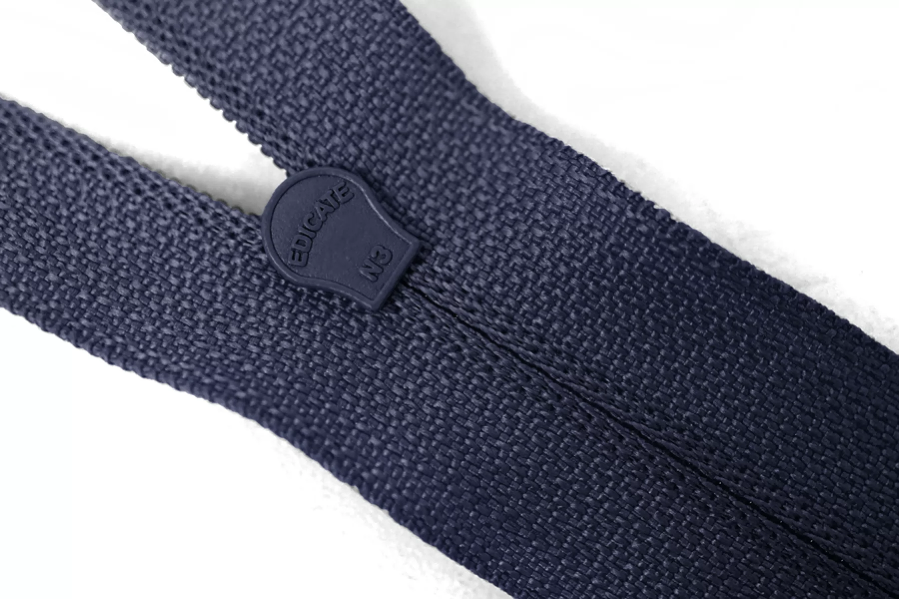 Молния от EDICATE неразъемная, синего цвета, Зубцы пластиковые, пуллер и слайдер -металлический. Длина 18 см. Ширина 2,5 м. Ширина зубцов 4 мм.