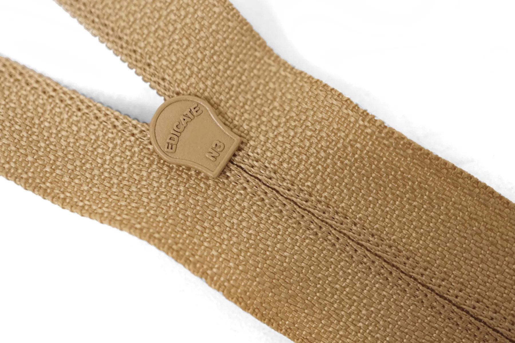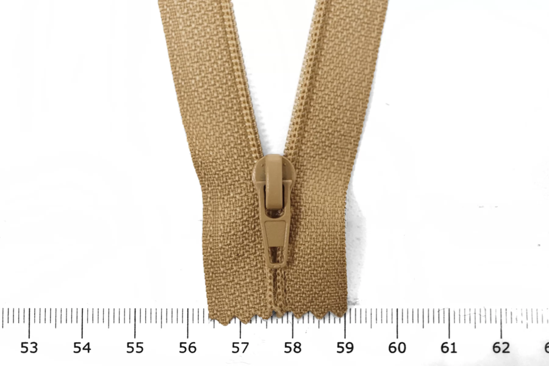 Молния от EDICATE неразъемная, светло-коричневого оттенка. Зубцы пластиковые, пуллер и слайдер -металлический. Длина 16 см. Ширина 2,5 м. Ширина зубцов 4 мм.