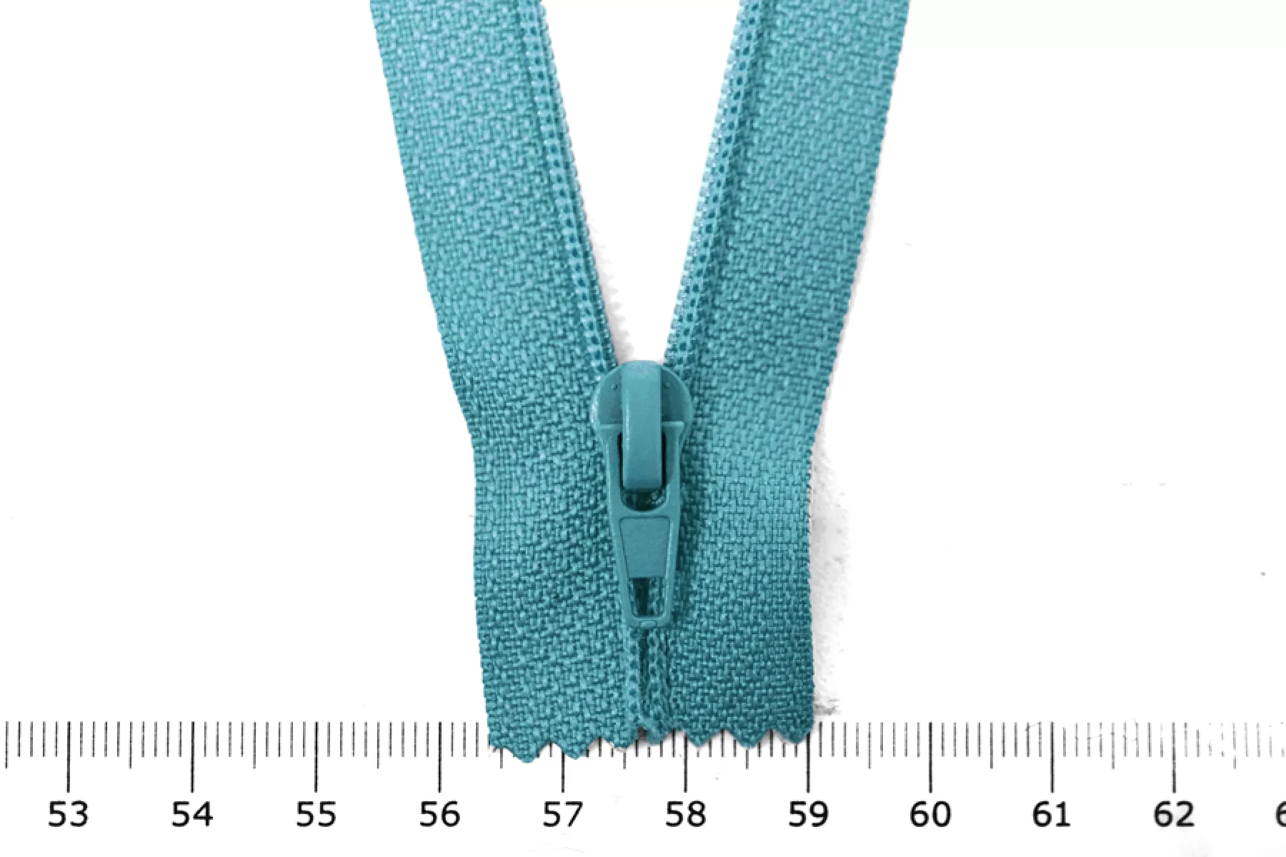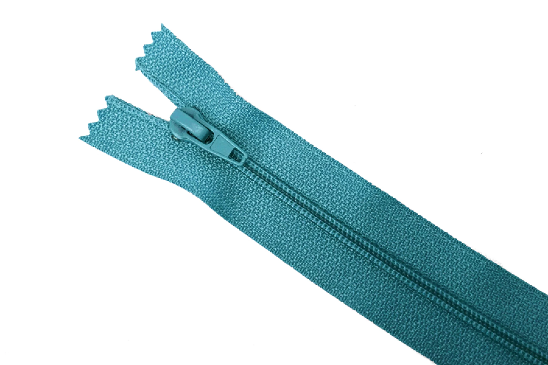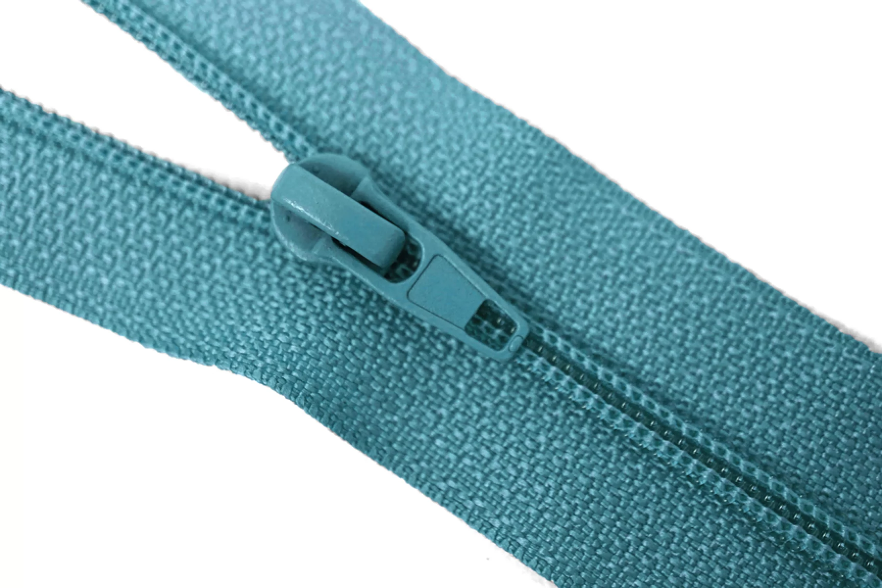 Молния от EDICATE неразъемная, темно-бирюзового оттенка, Зубцы пластиковые, пуллер и слайдер -металлический. Длина 18 см. Ширина 2,5 м. Ширина зубцов 4 мм.